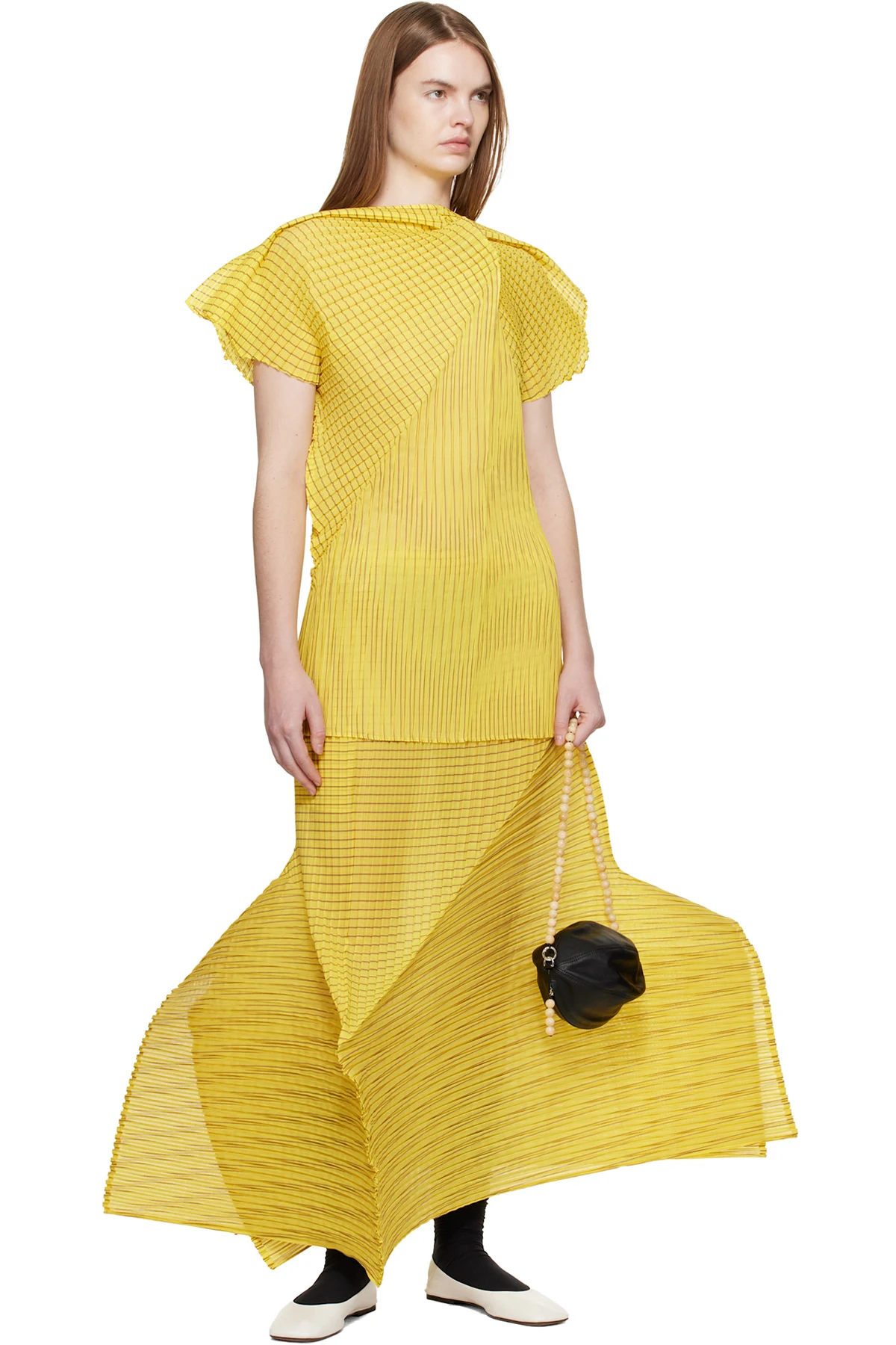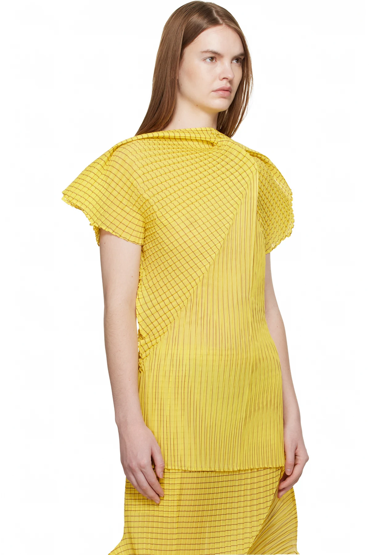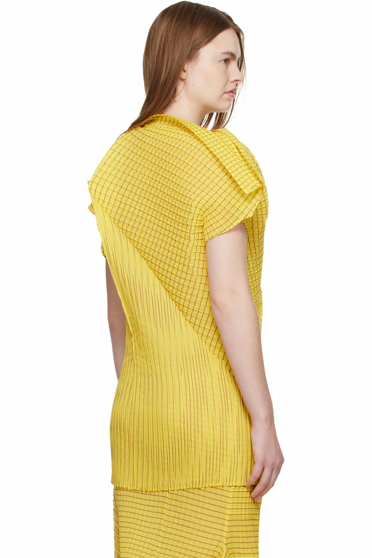 Issey Miyake Yellow Generic Stripes Machine Pleats Blouse