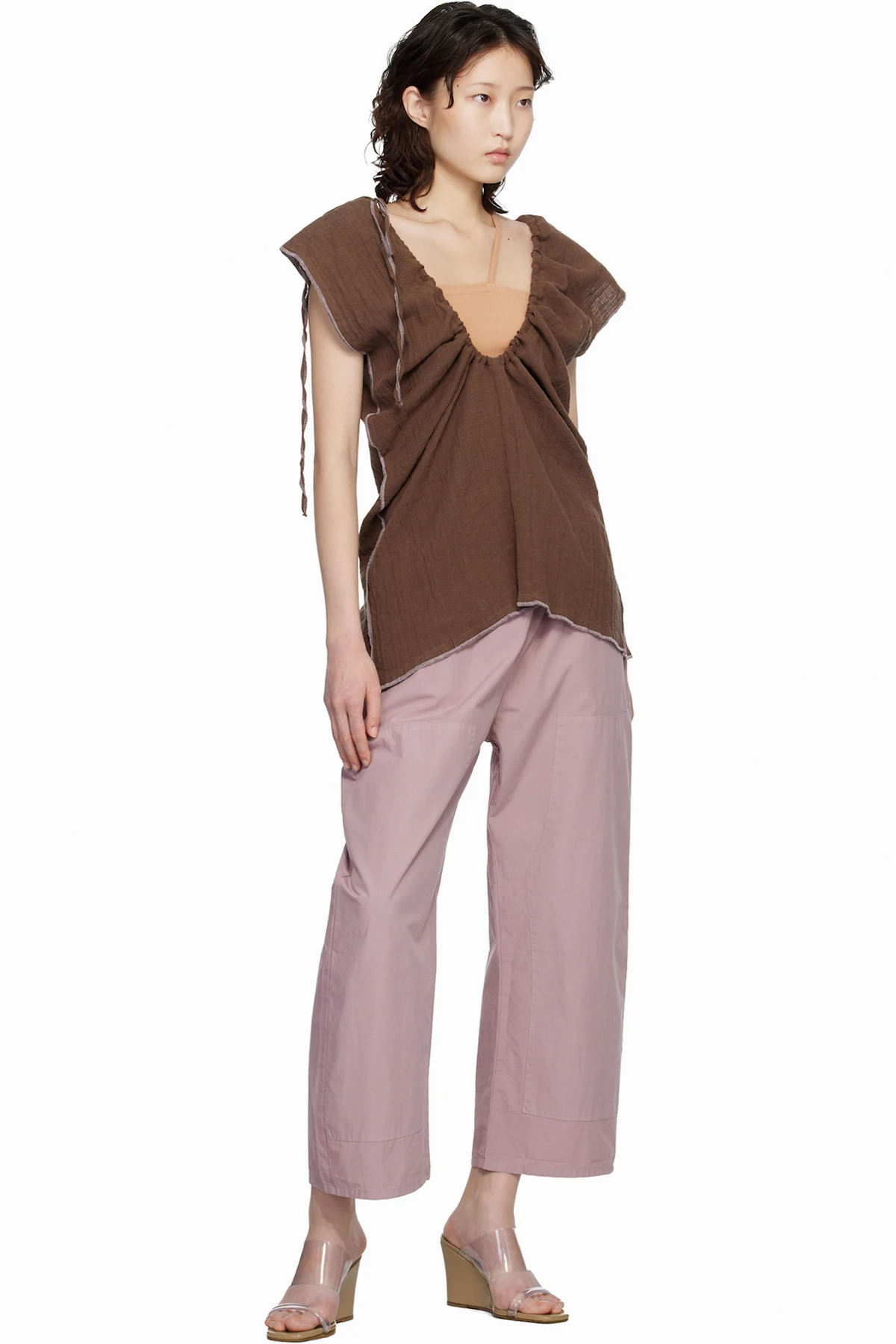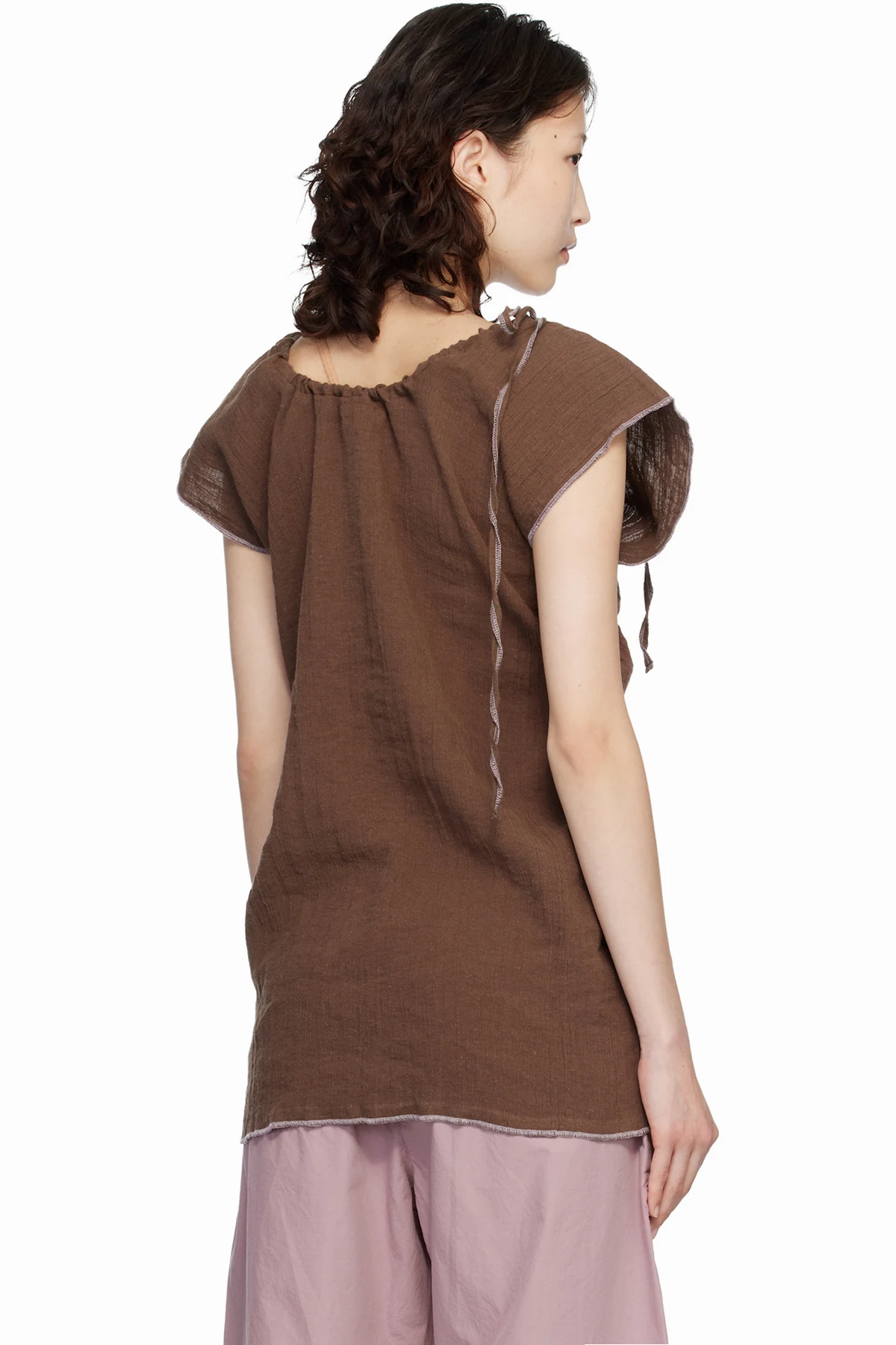 Baserange Brown Crinkle Linen Max Blouse