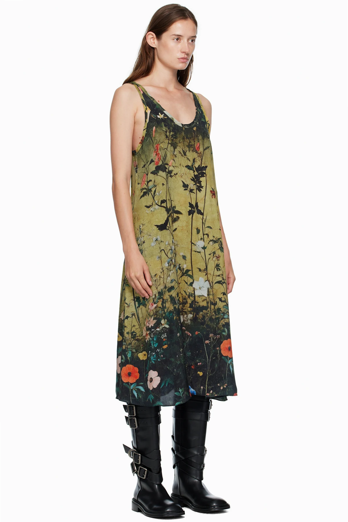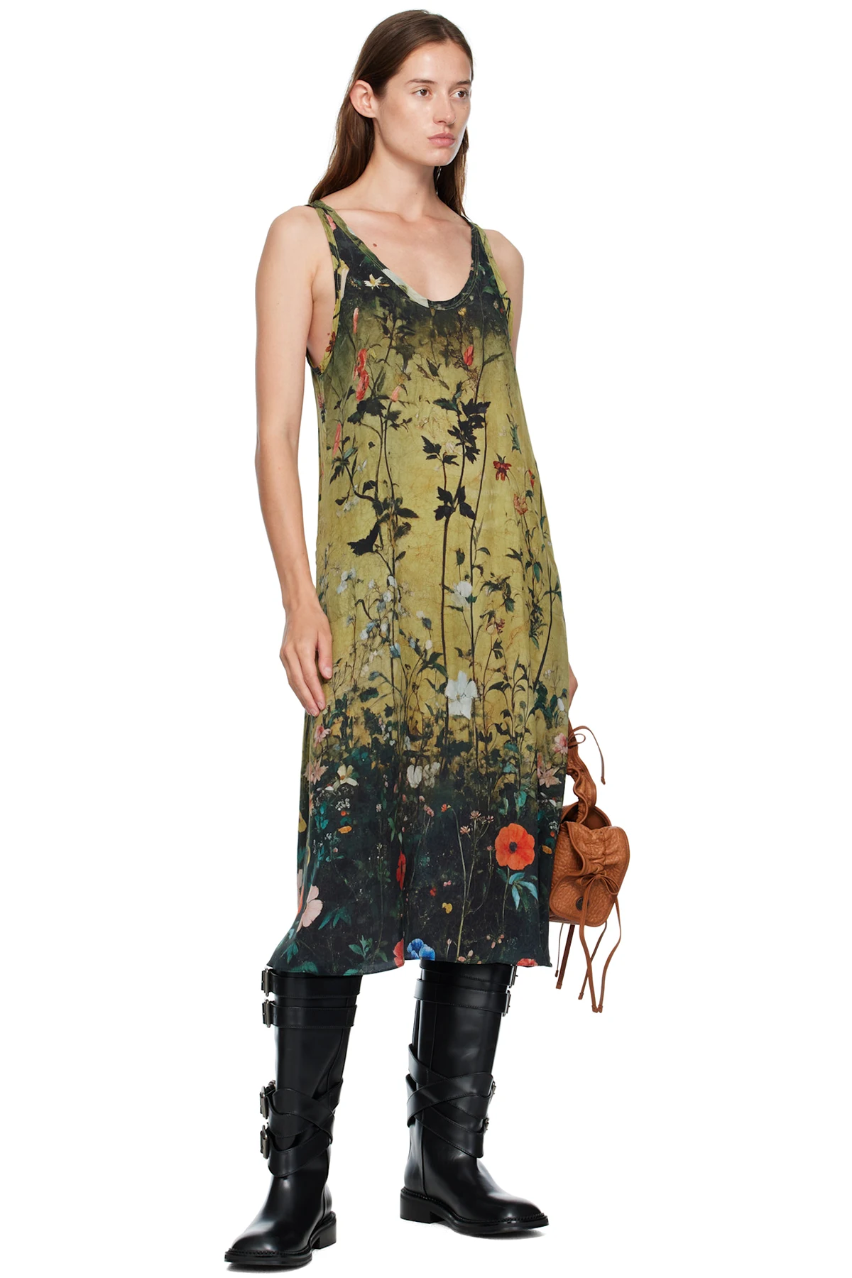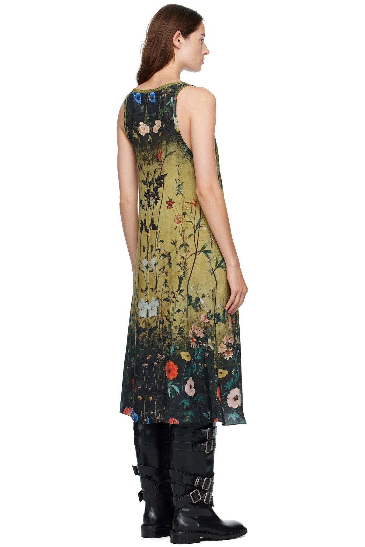 R13 Yellow & Black Tank Midi Dress
