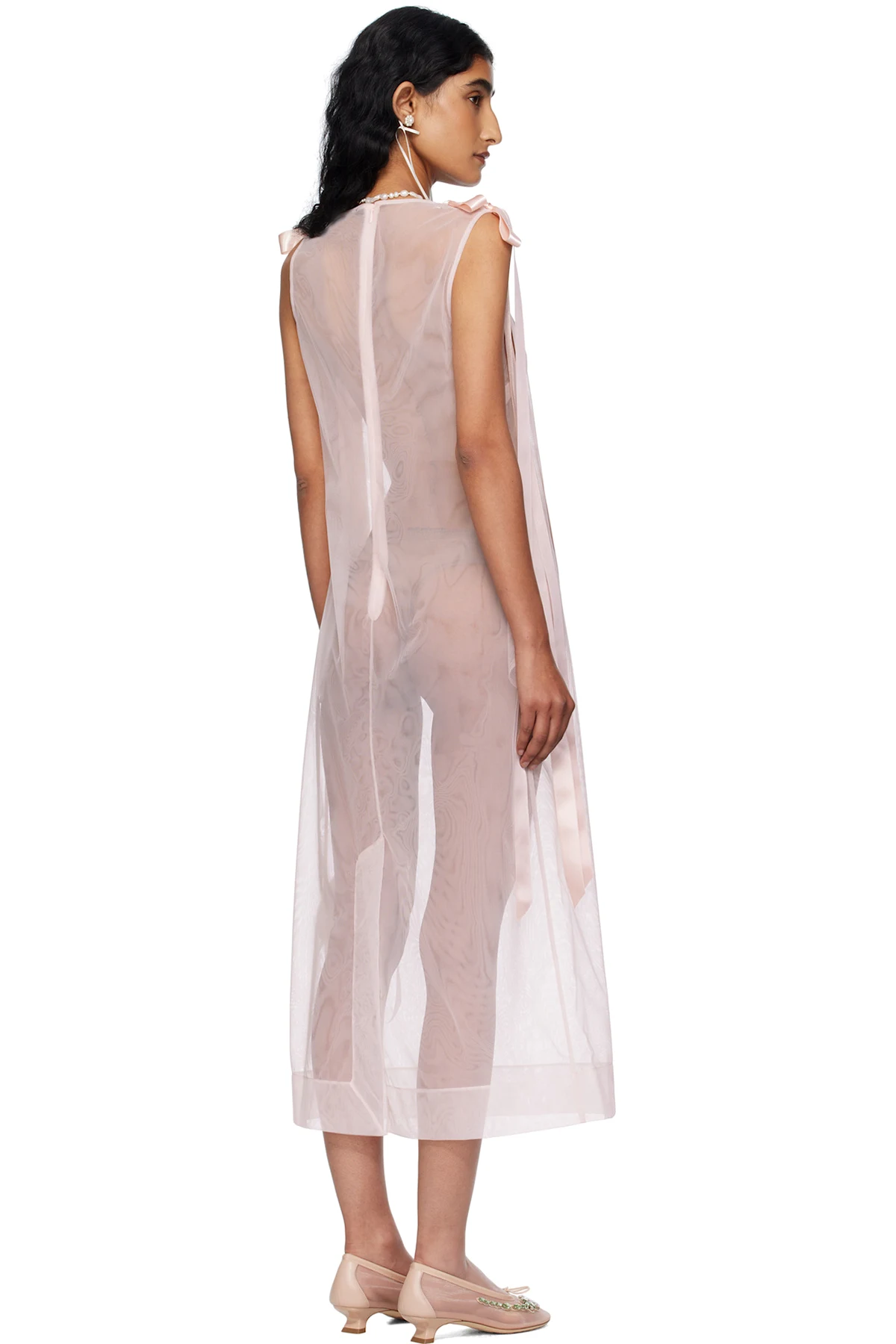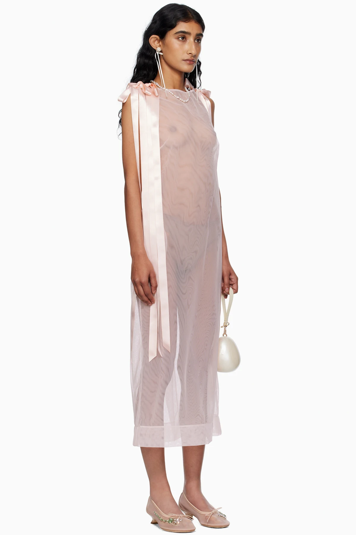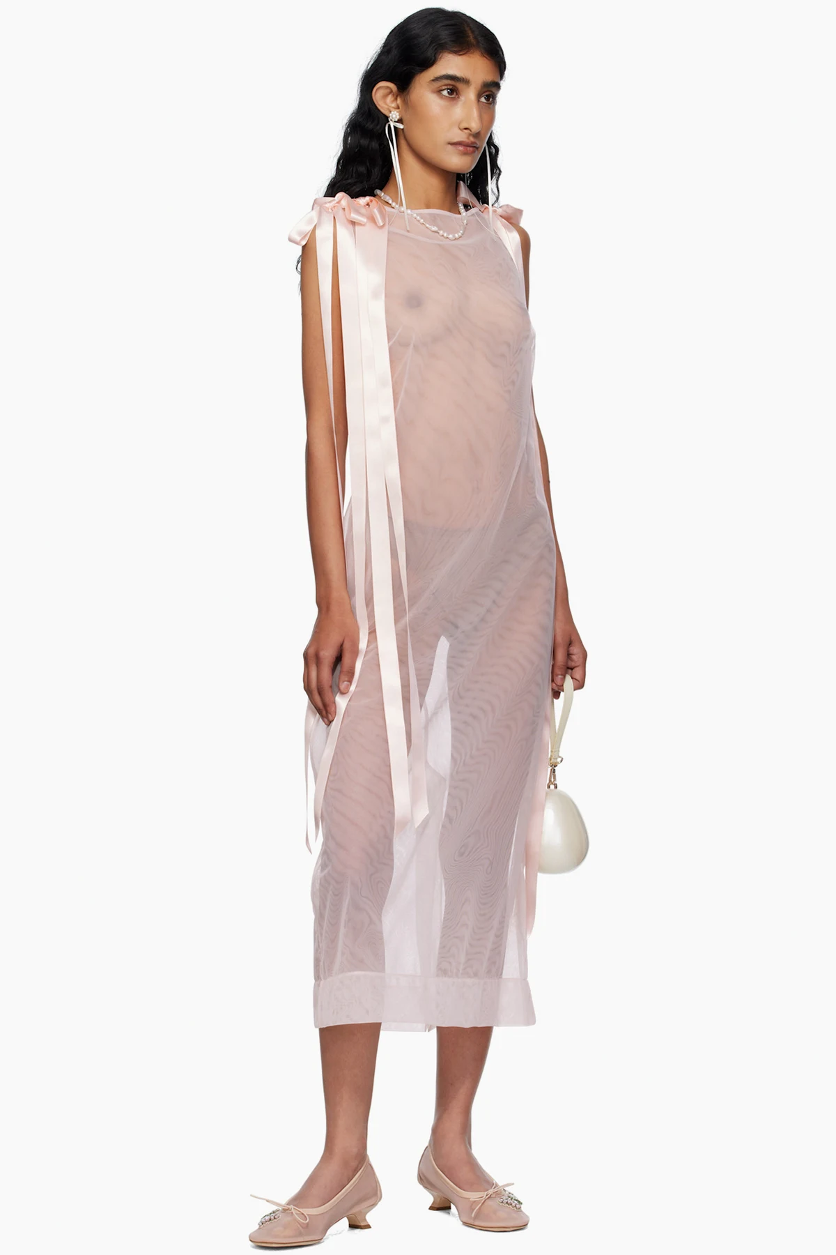 Simone Rocha Pink Sheer Bow Ribbon Tail Midi Dress