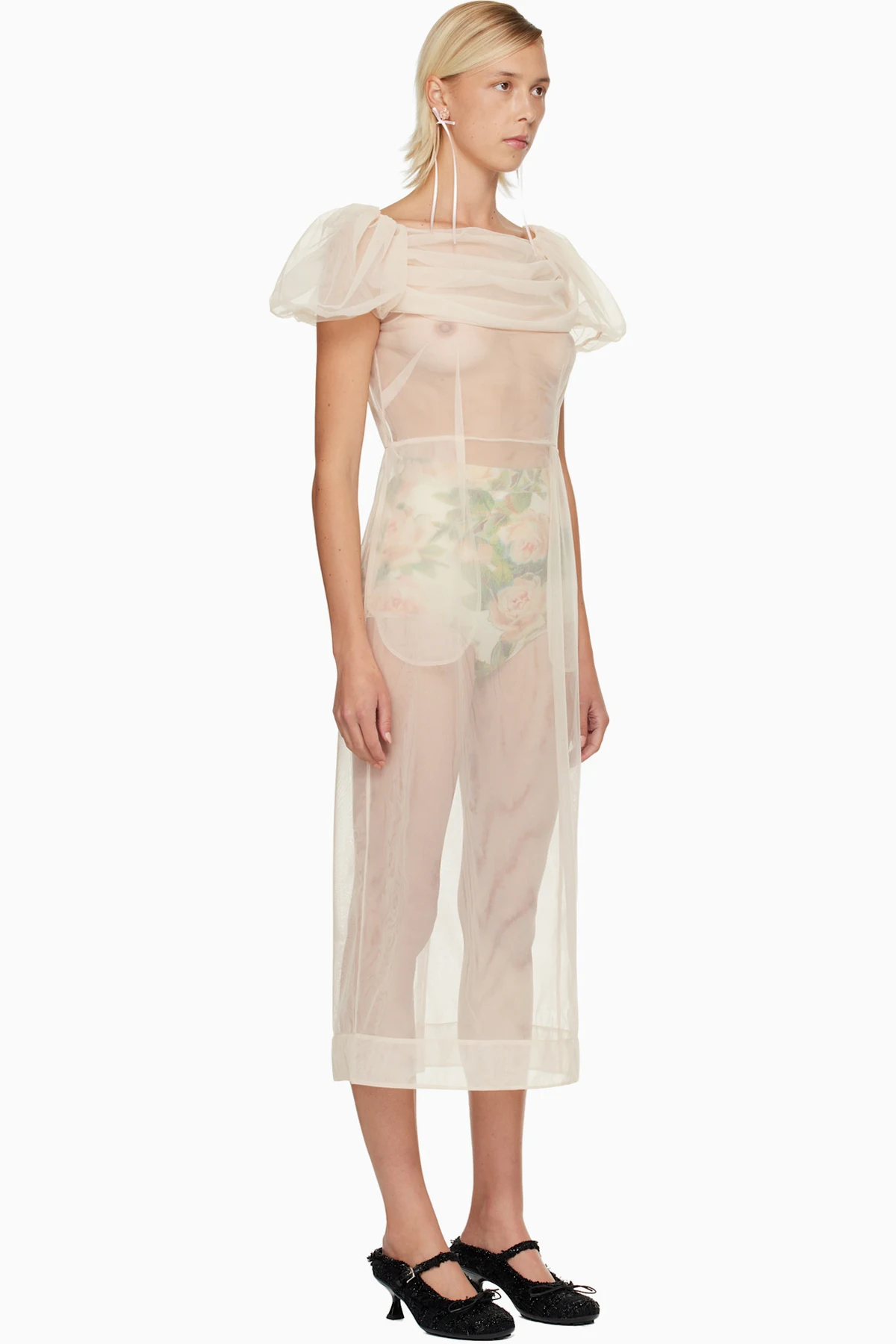Sheer nylon tulle midi dress.