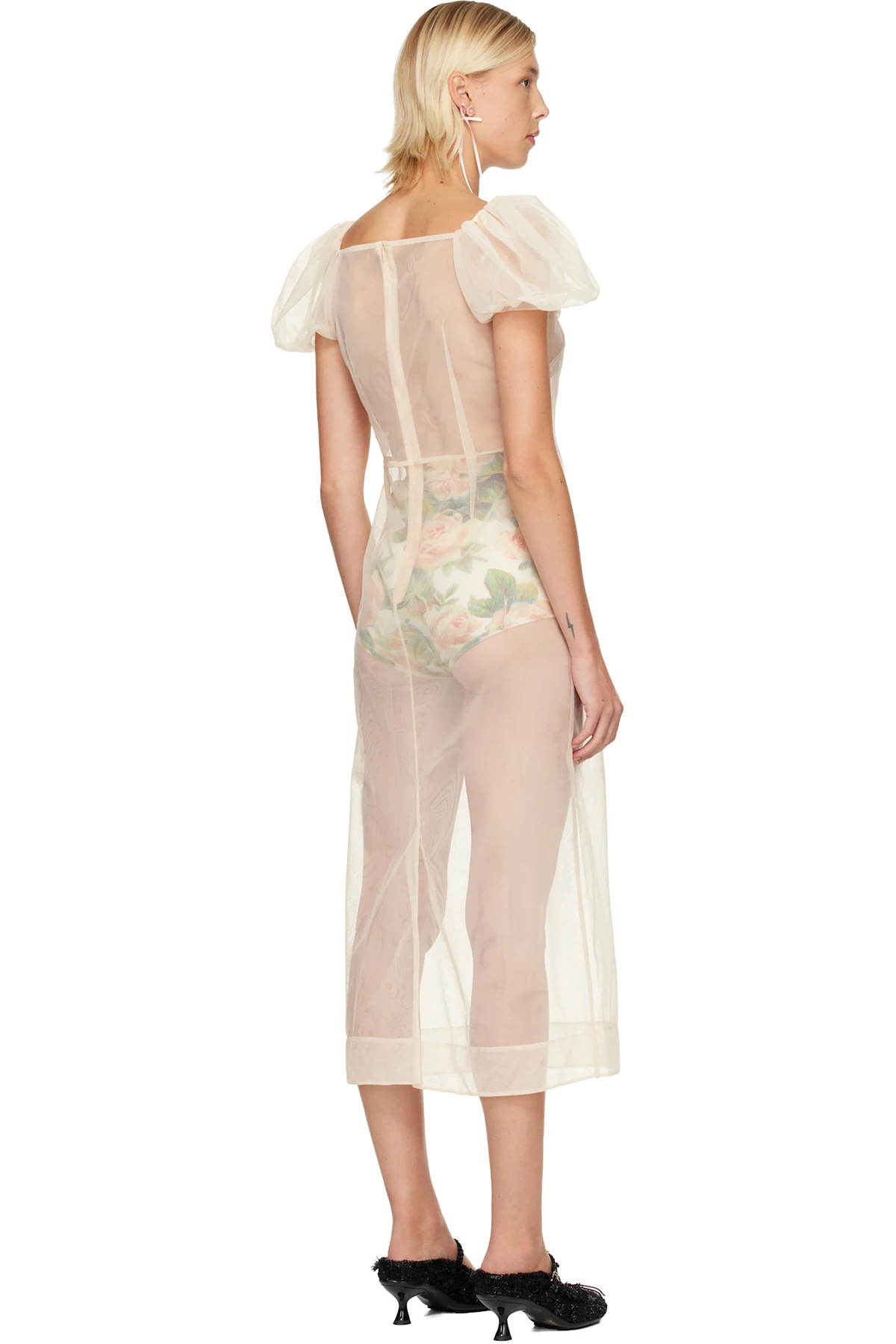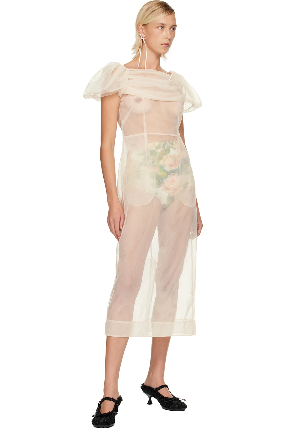 Simone Rocha Beige Sheer Sculpted Gathered Bust Midi Dress