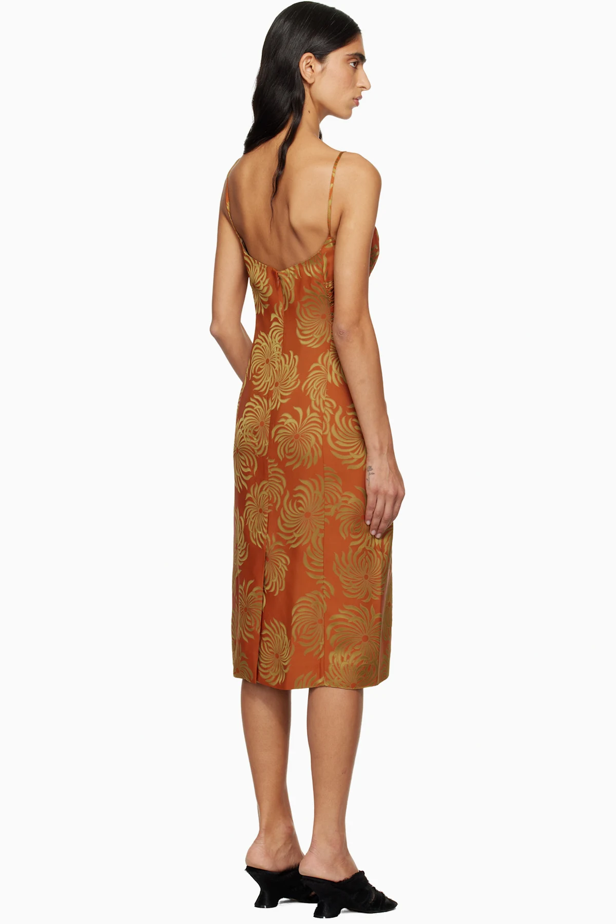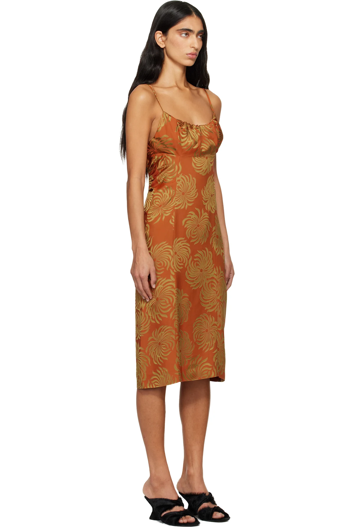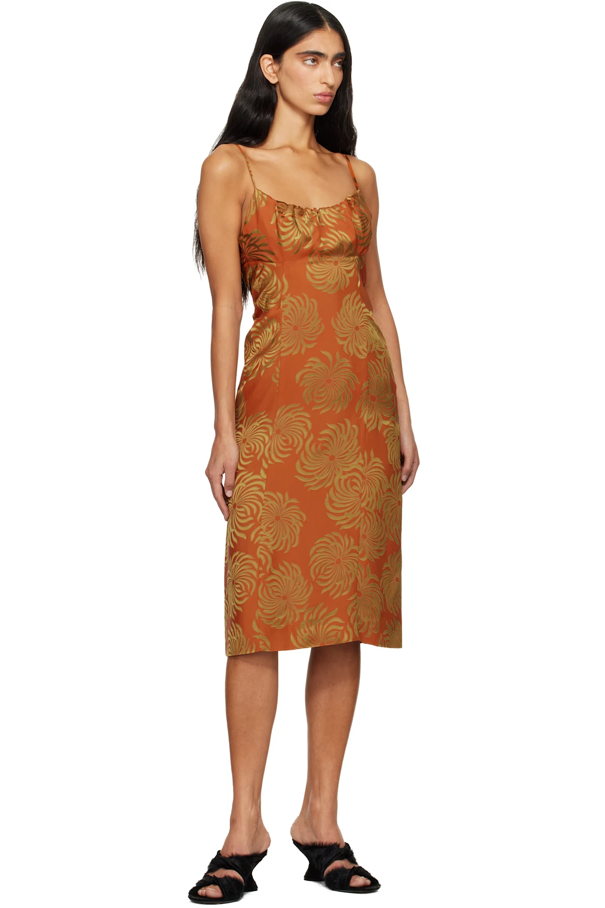 Dries Van Noten Orange Jacquard Slip Midi Dress