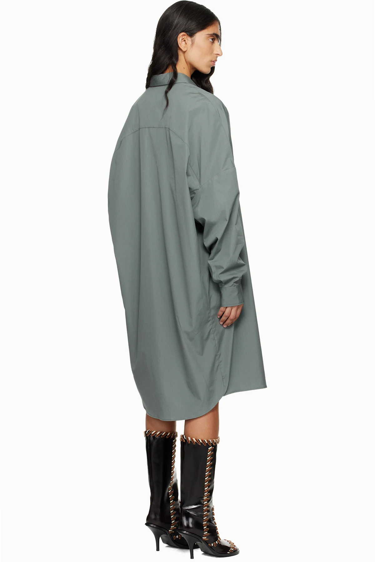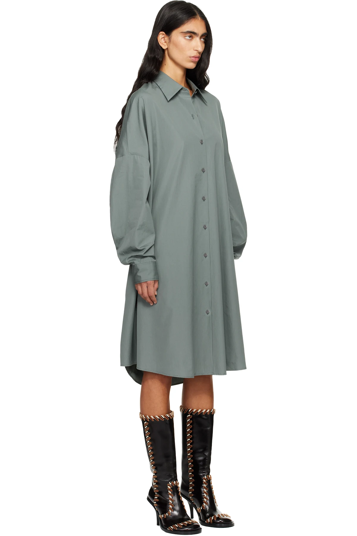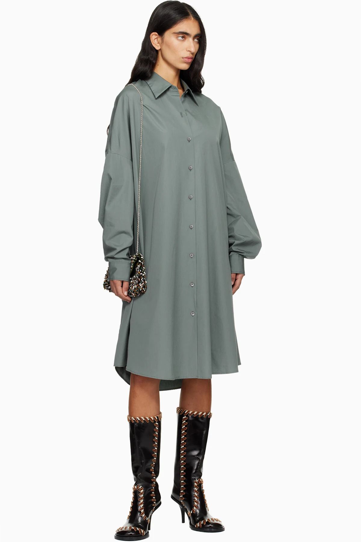 Dries Van Noten Green Cotton Shirt Midi Dress