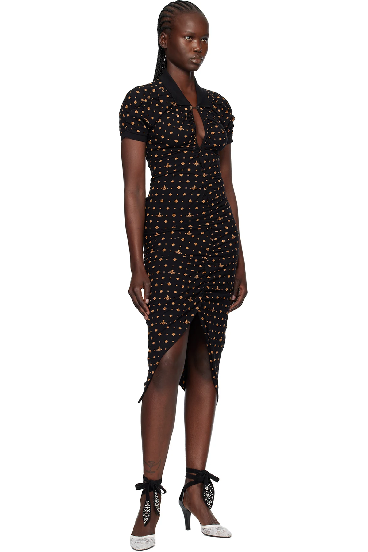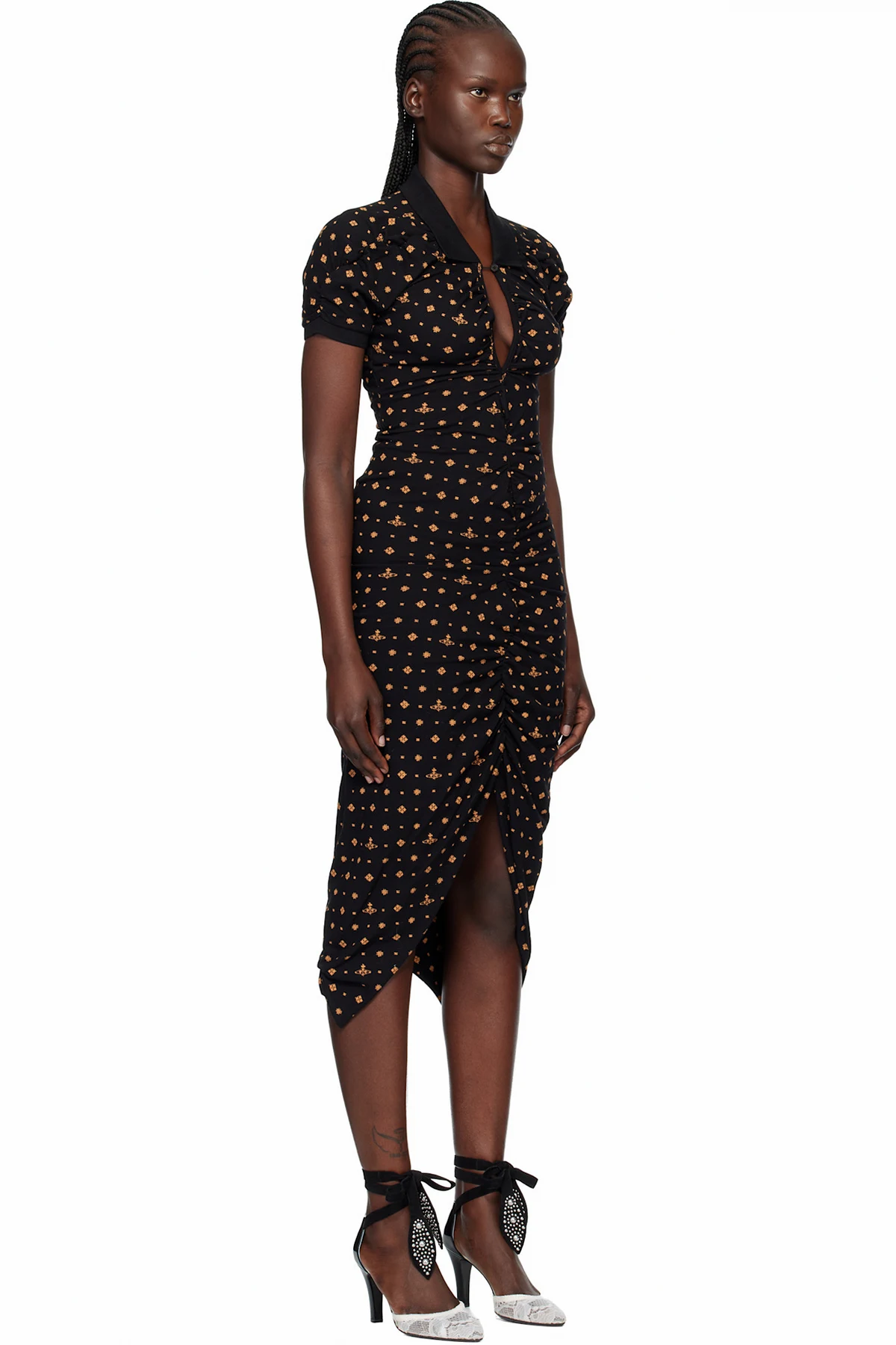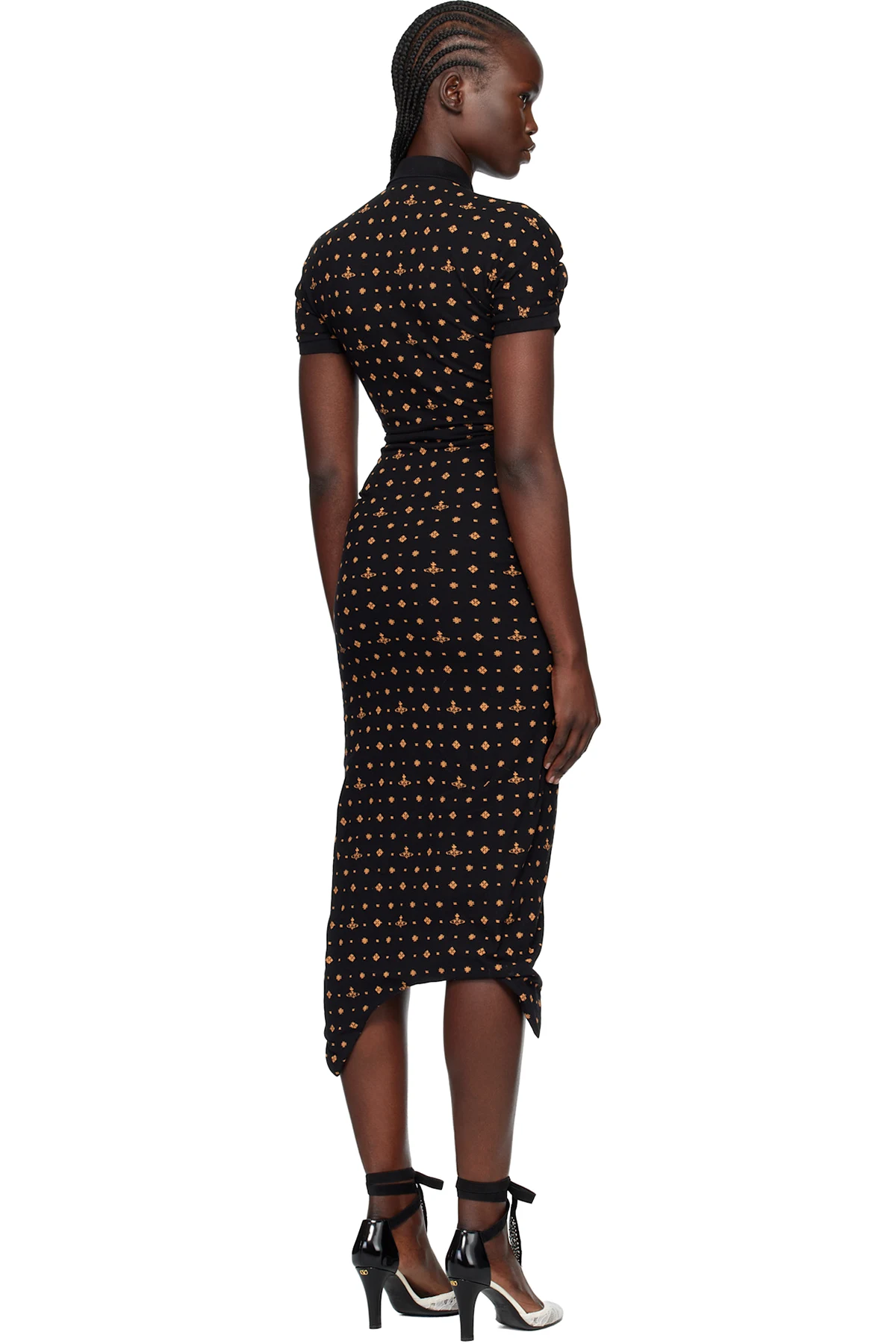 Vivienne Westwood Black Printed Piquet Pulling Midi Dress