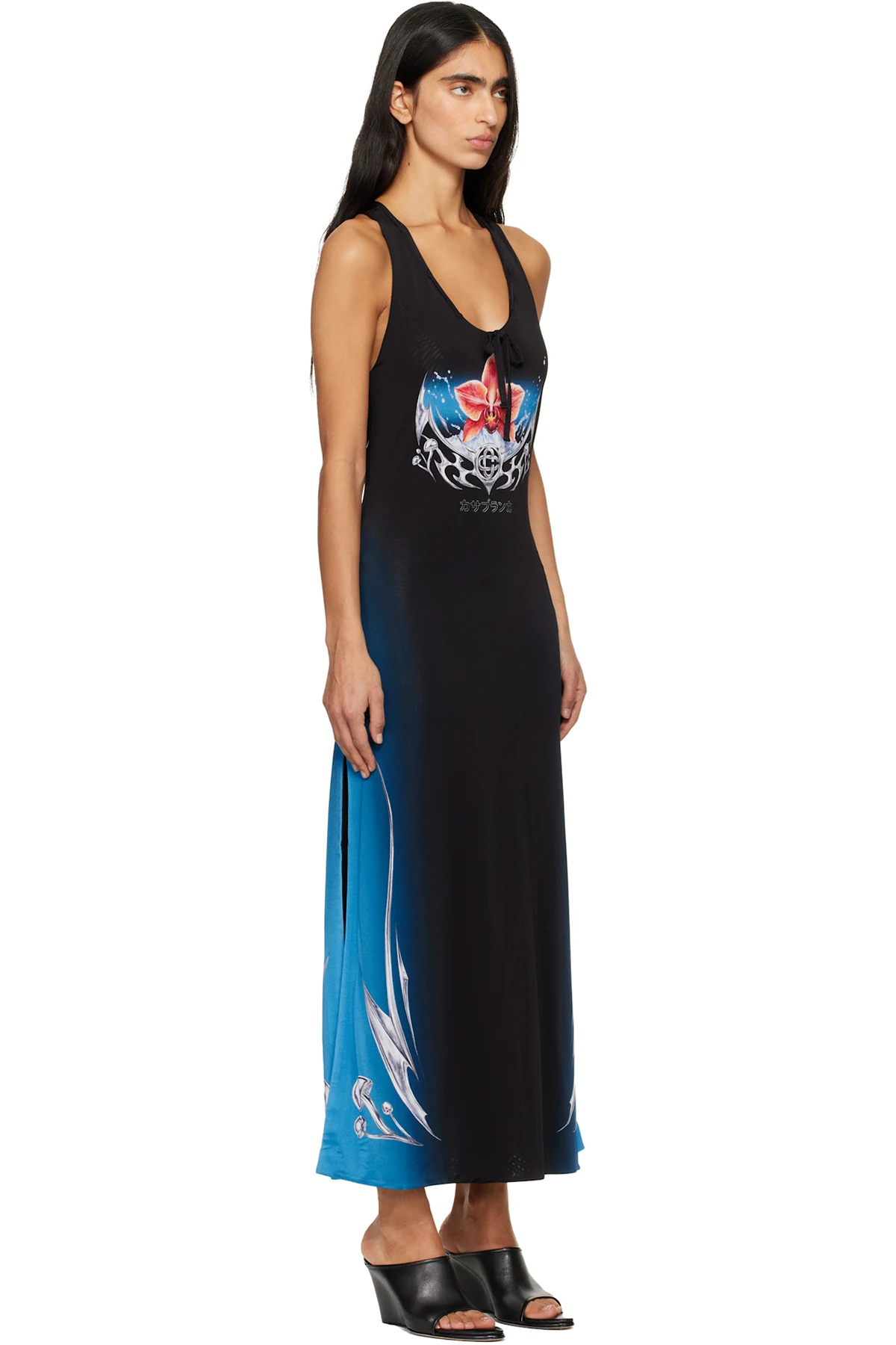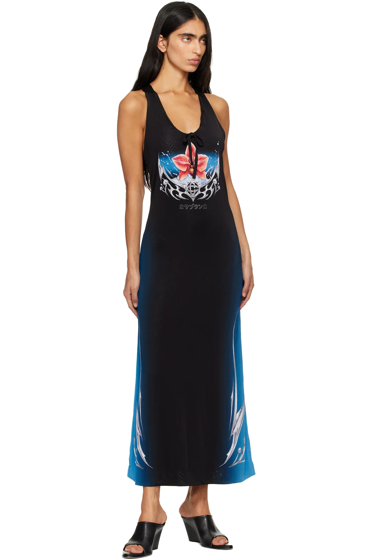 Casablanca Black Blades Slinky Jersey Midi Dress