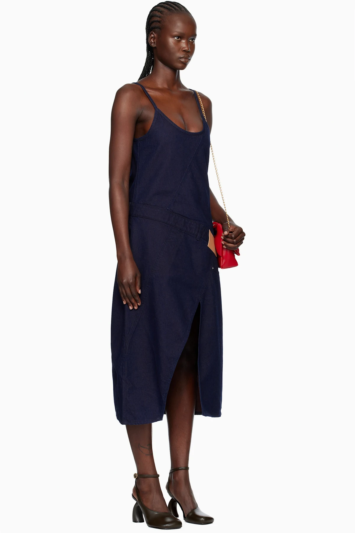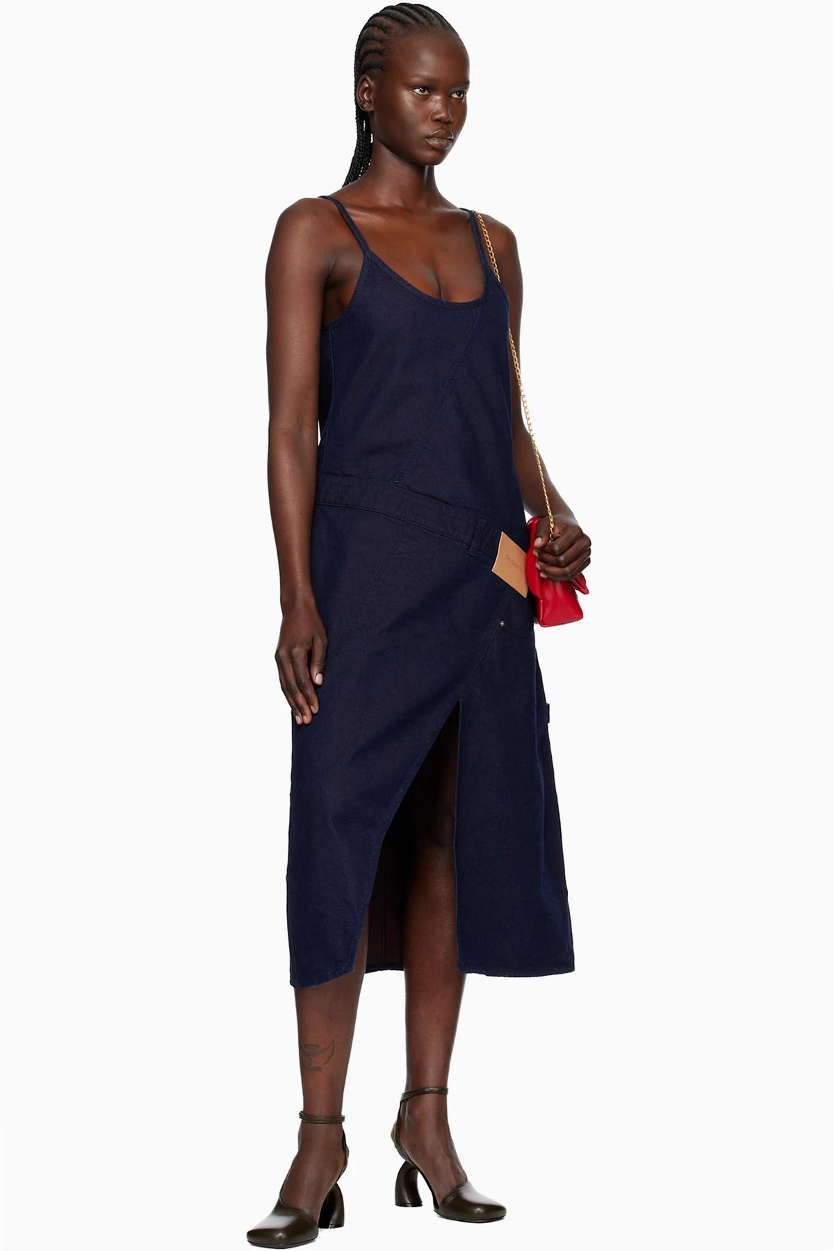 JW Anderson Navy Twisted Workwear Denim Midi Dress