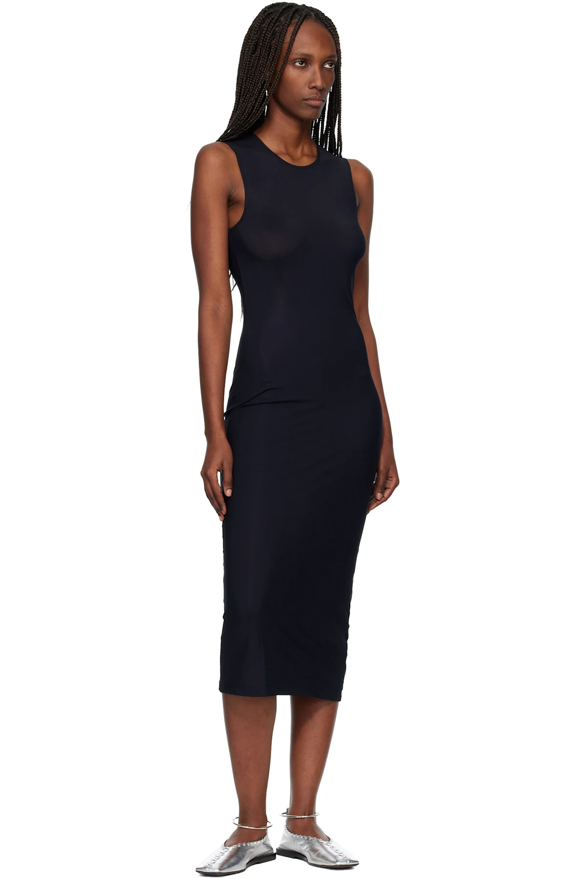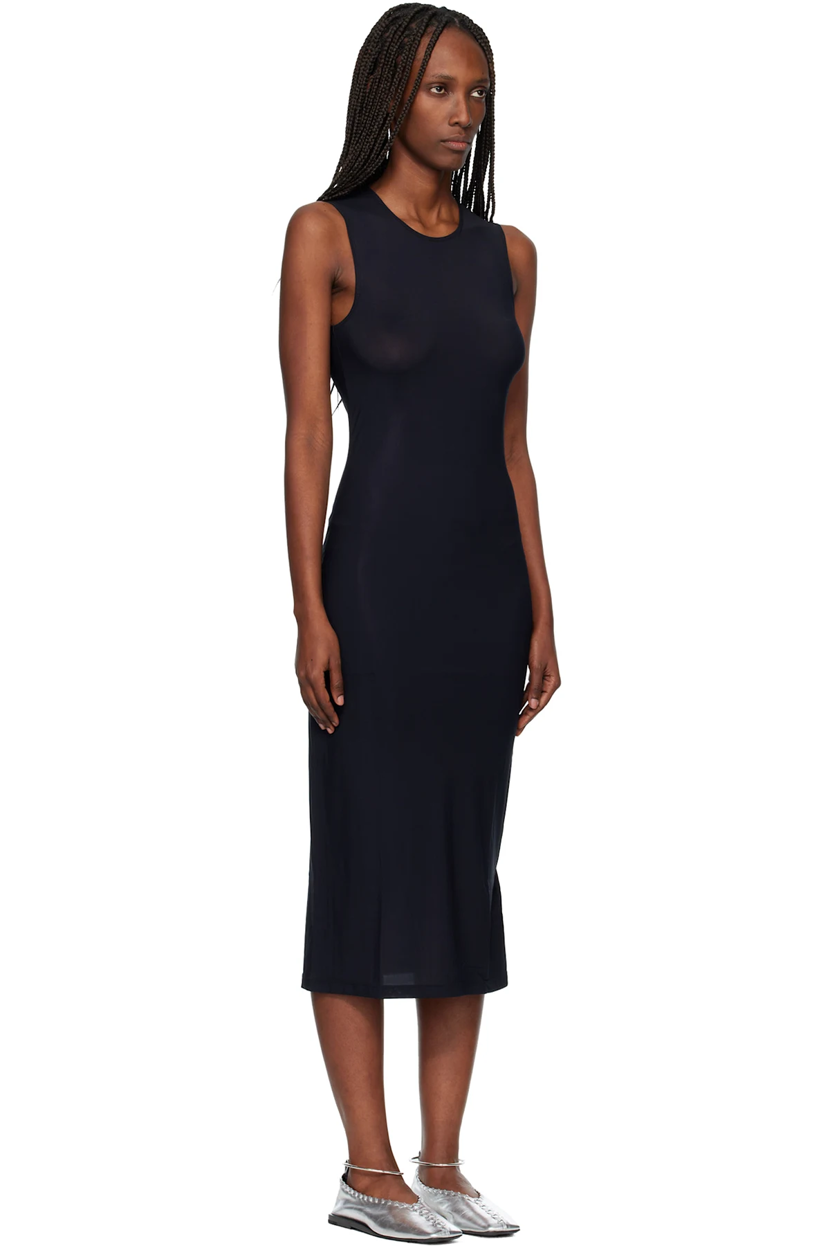 JIL SANDER Black Jersey Slip Midi Dress