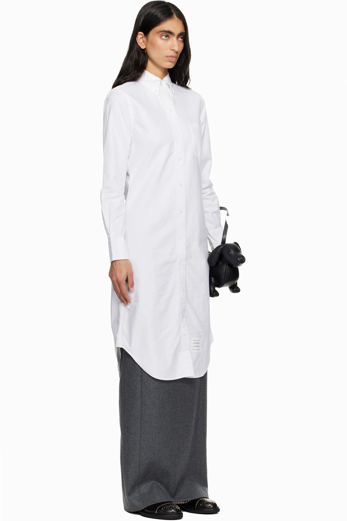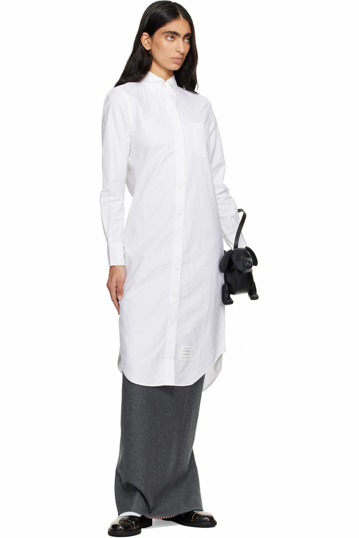 Thom Browne White Oxford Grosgrain Placket Shirtdress
