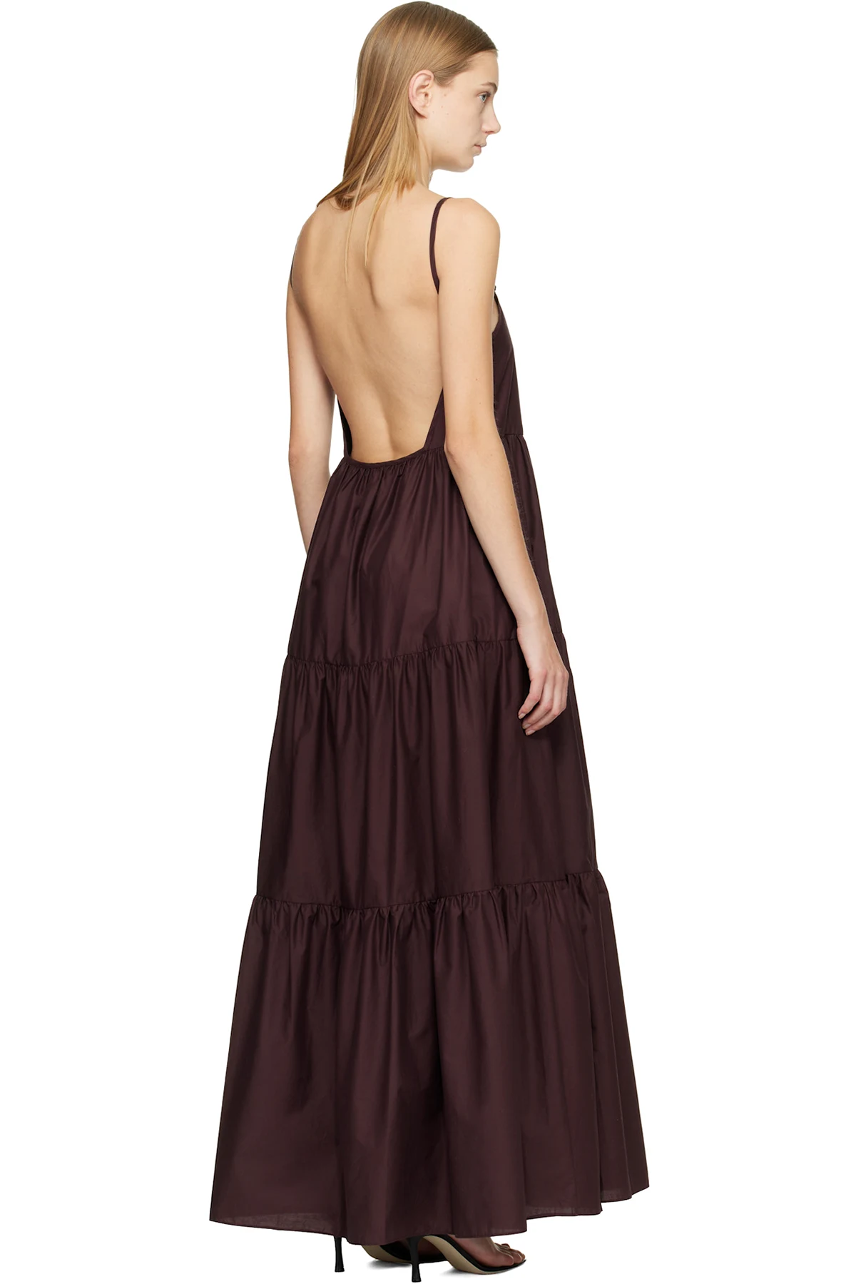 Matteau Burgundy Tiered Low Back Maxi Dress