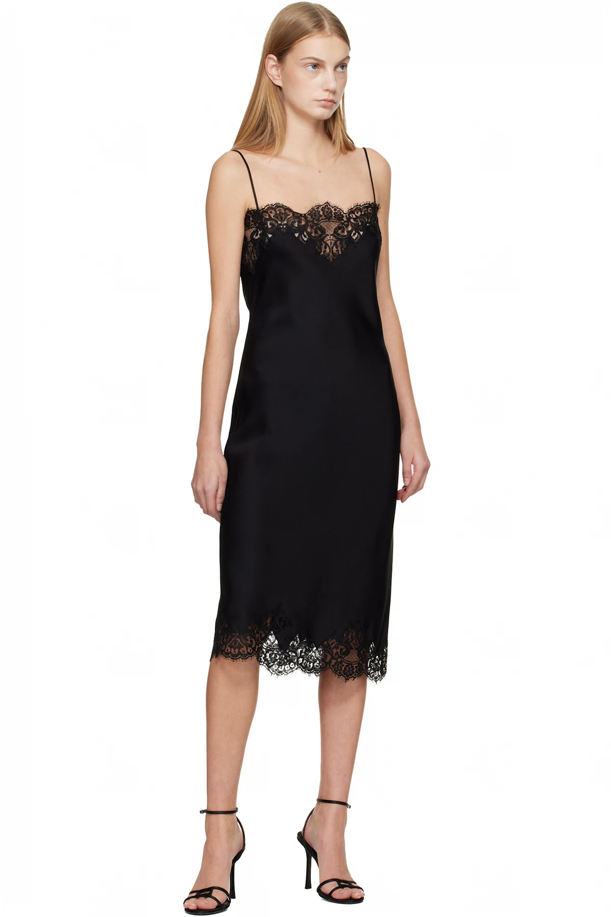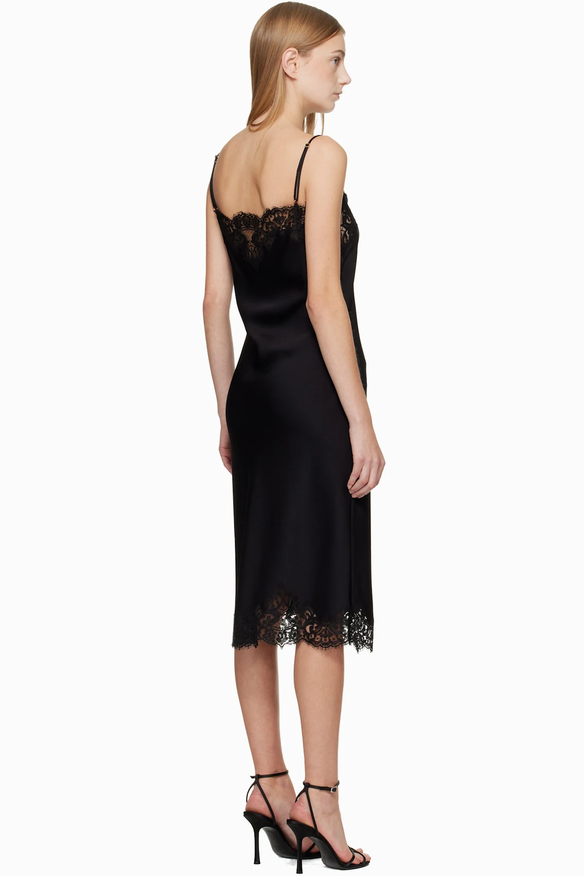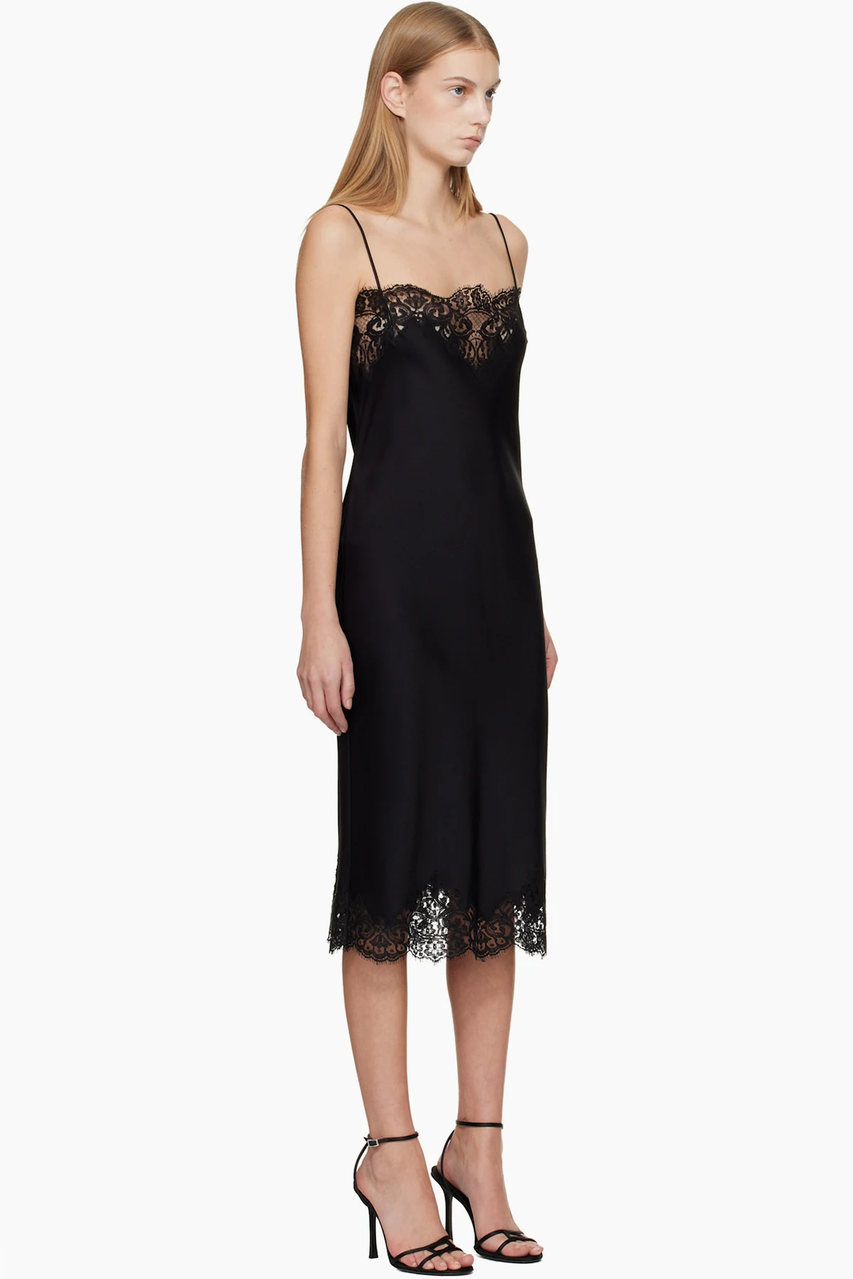 Stella McCartney Black Sleeveless Lace Satin Midi Dress