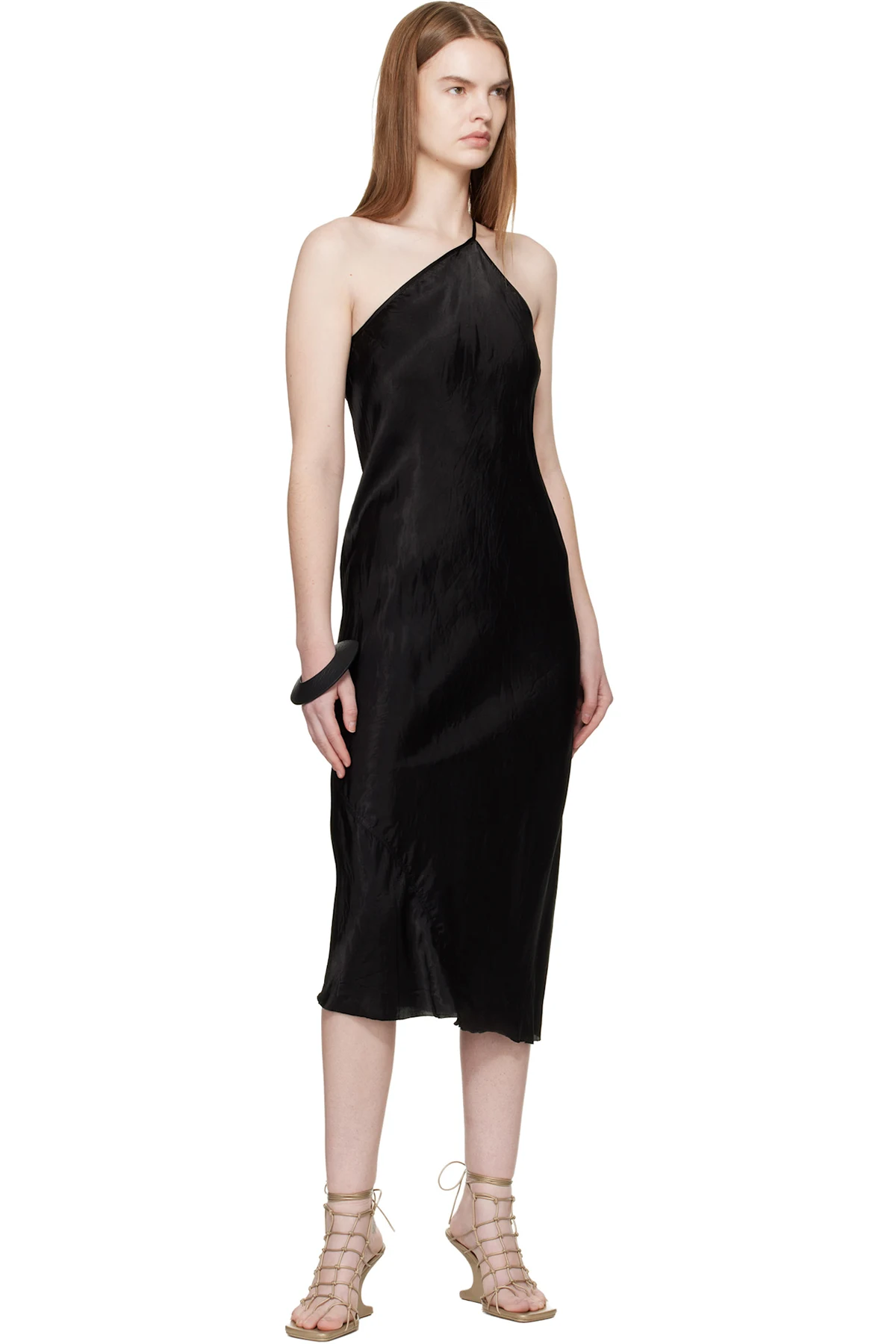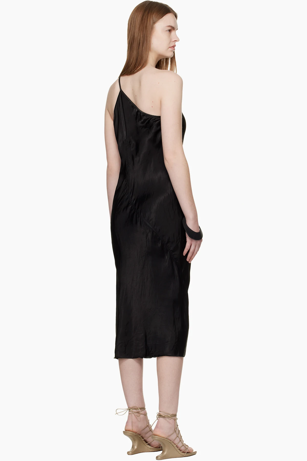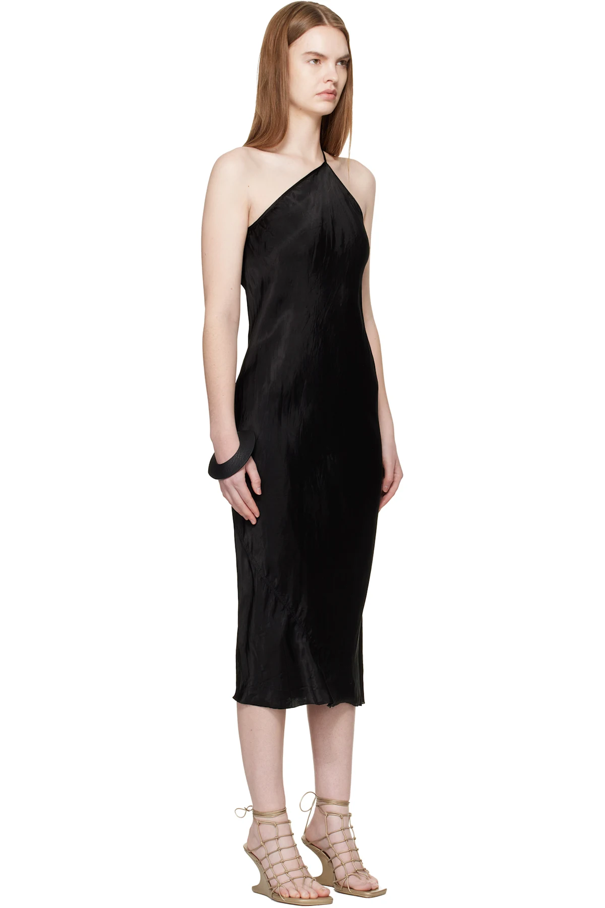 Rick Owens Black Temple One Shoulder Slip Midi Dress