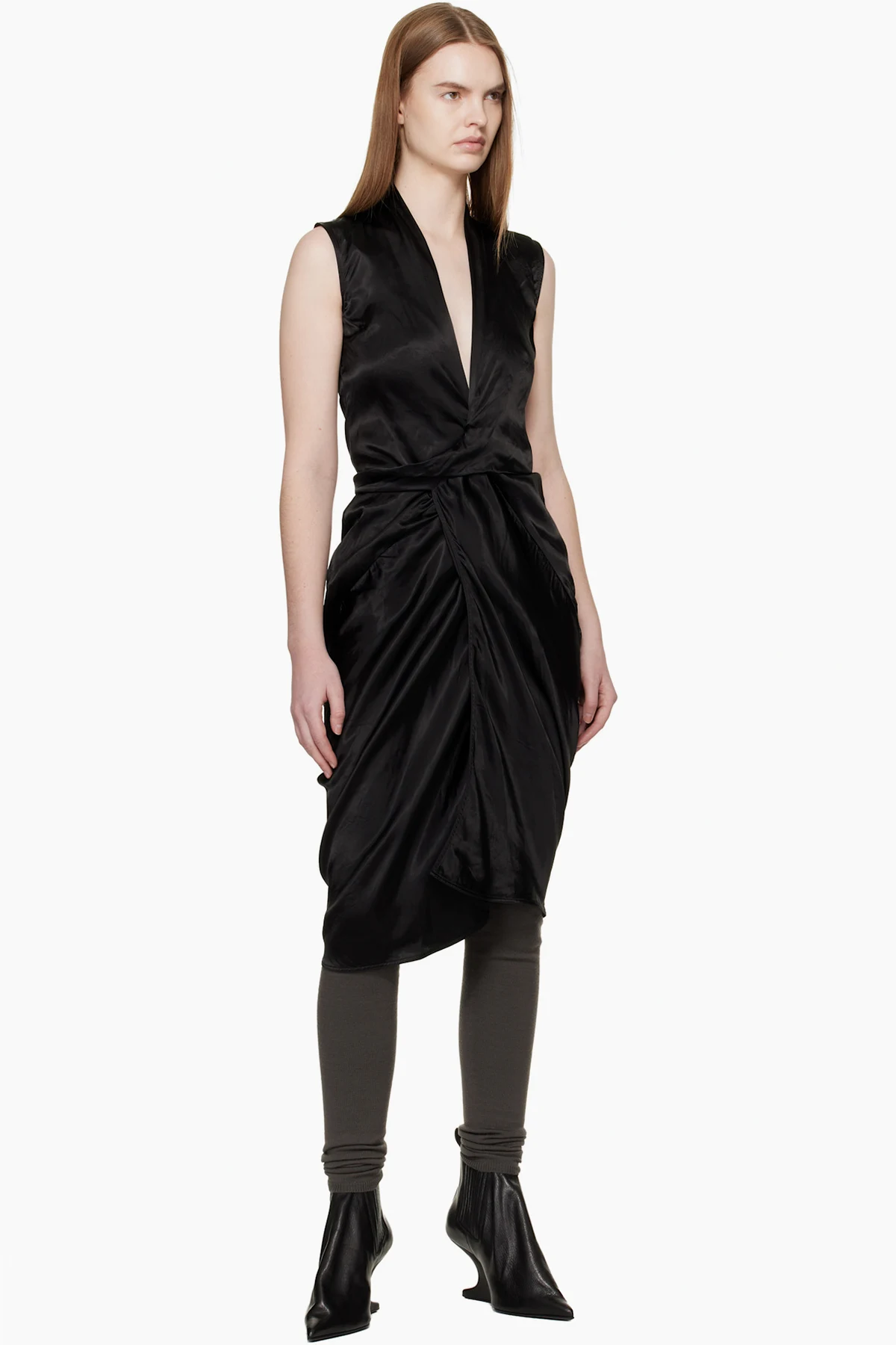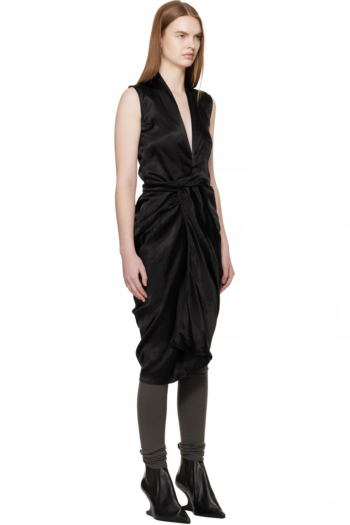 Rick Owens Black Temple Wrap SL Midi Dress