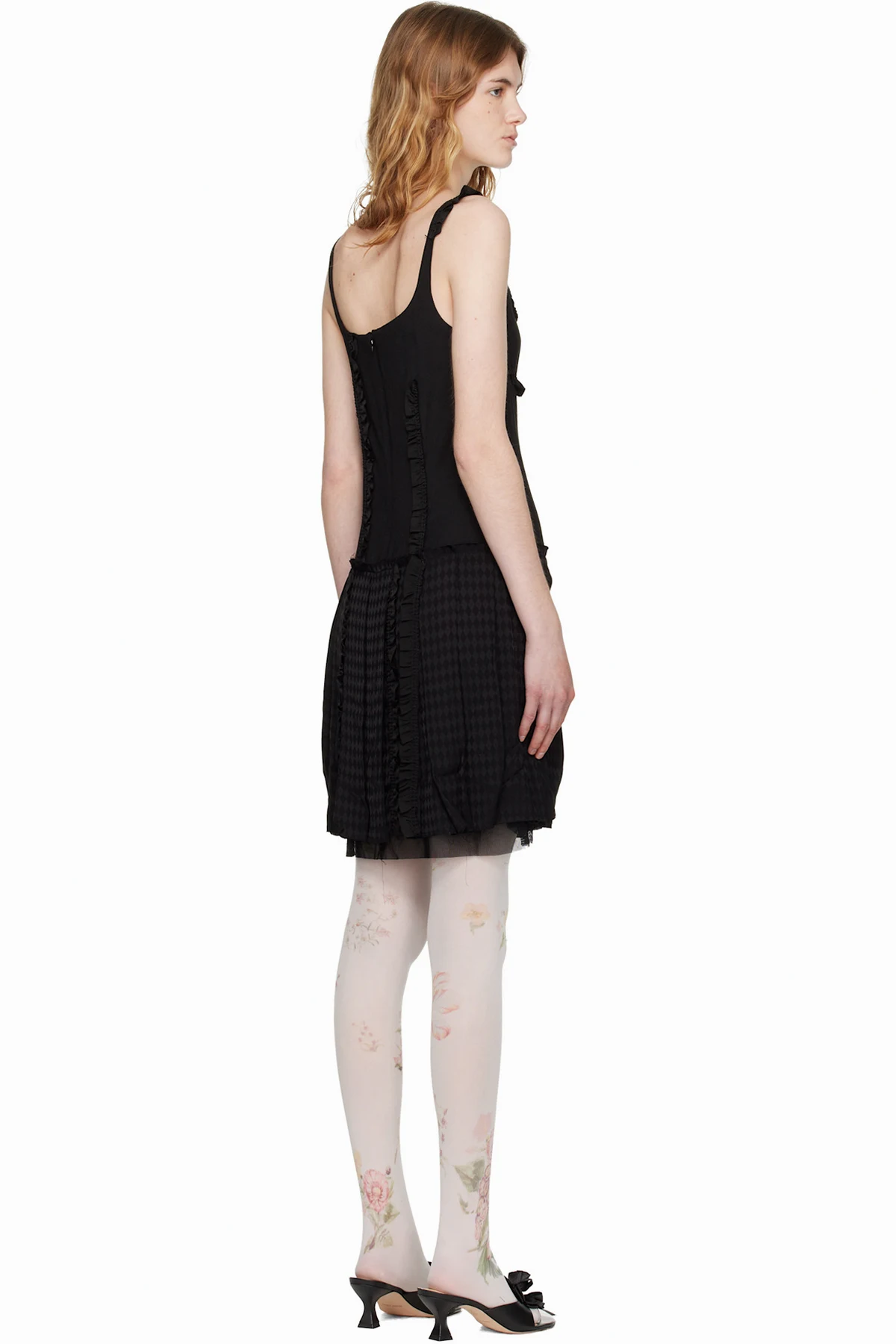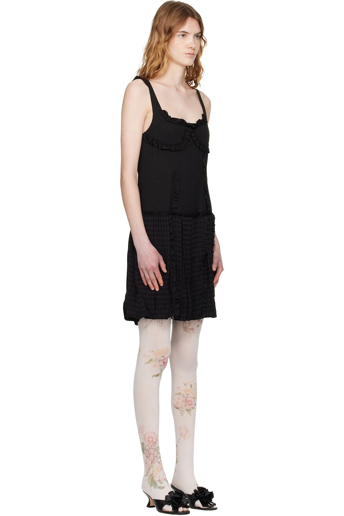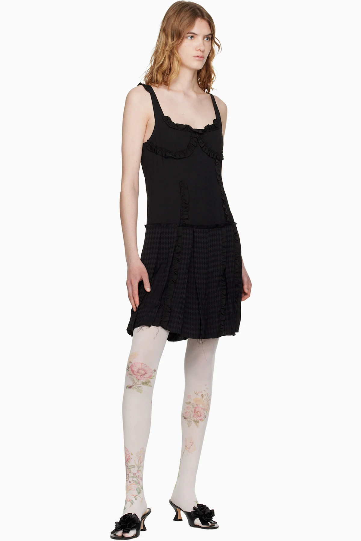 · Raw edge and check pattern at skirt hem
