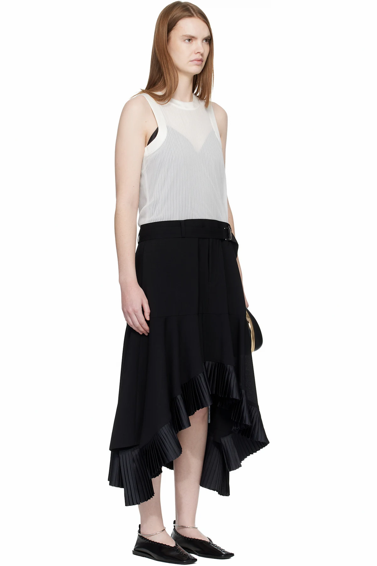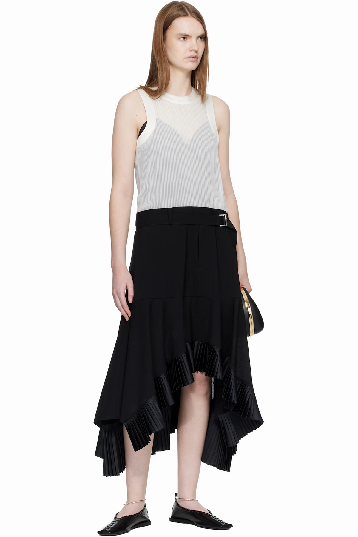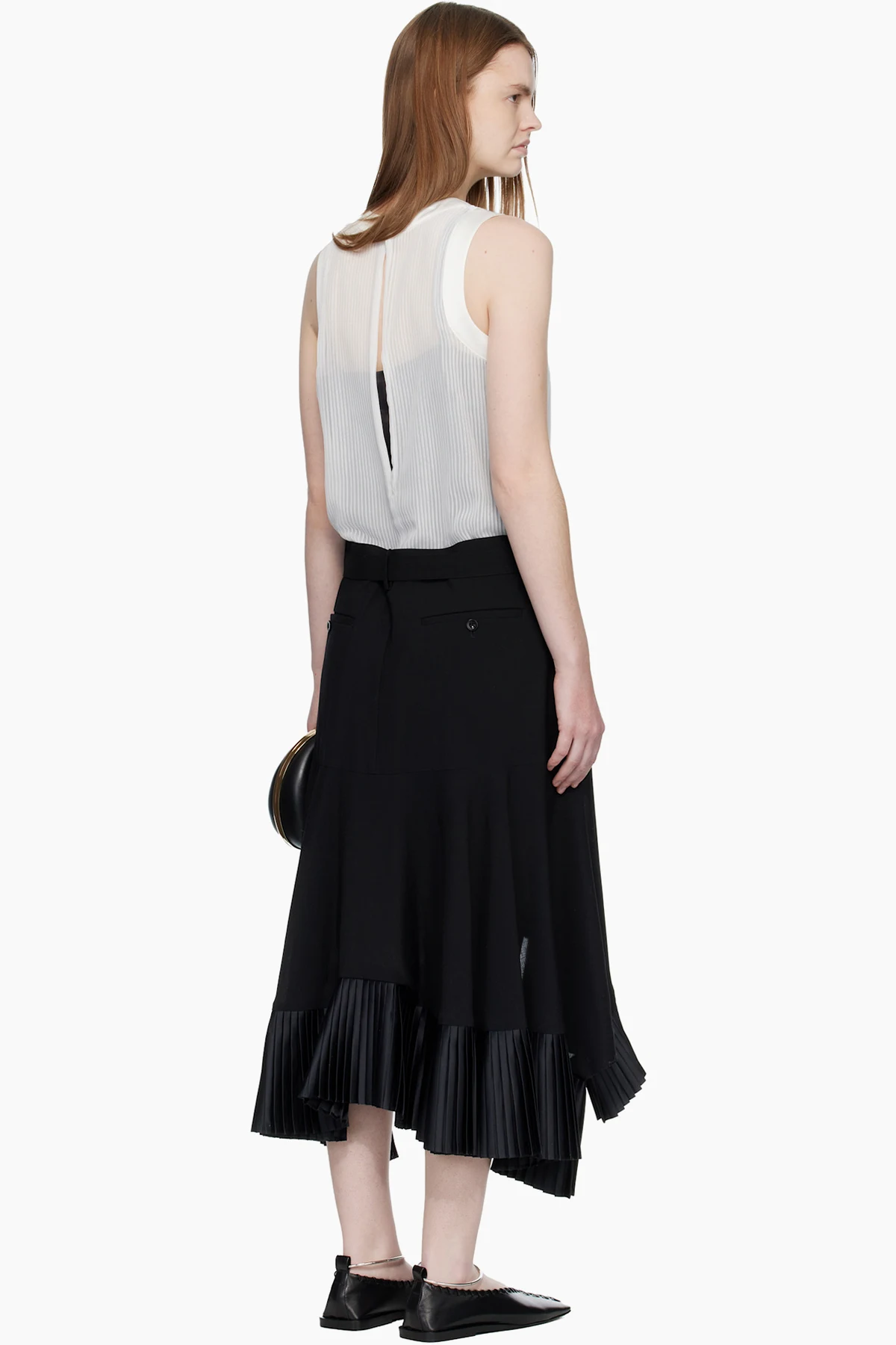 sacai Black & Off-White Suiting Satin Midi Dress
