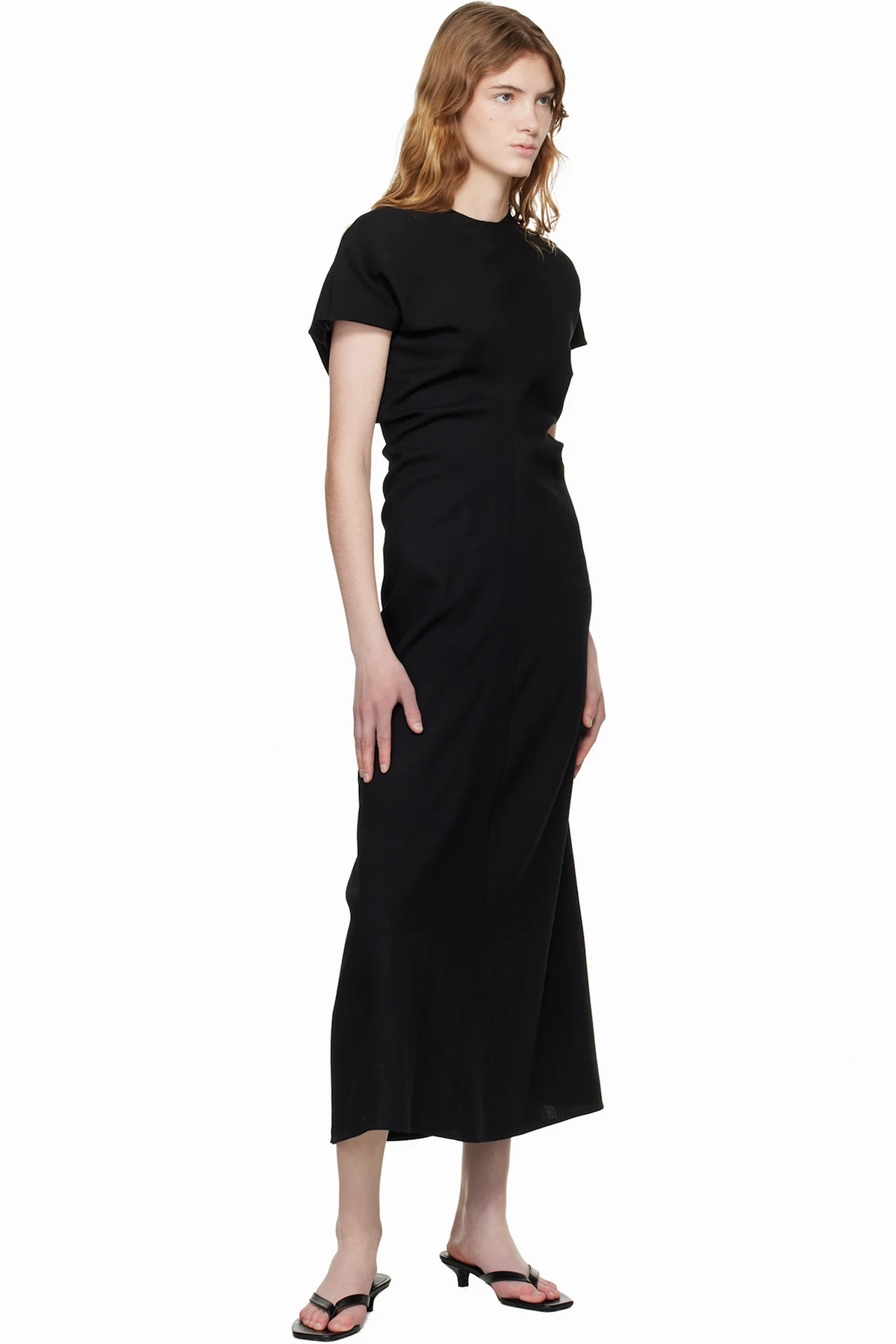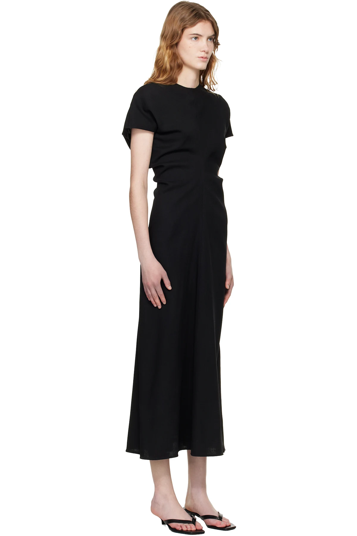 TOTEME Black Slouch Waist Wool Maxi Dress