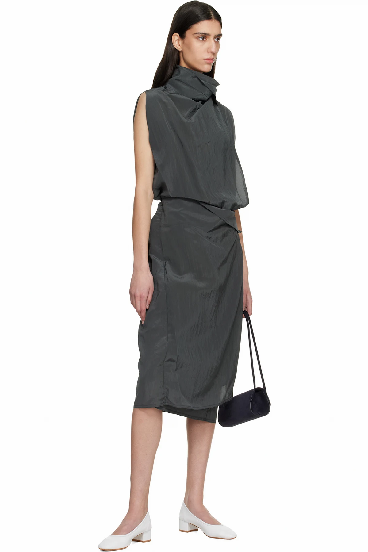 Crinkled nylon-blend taffeta midi dress.