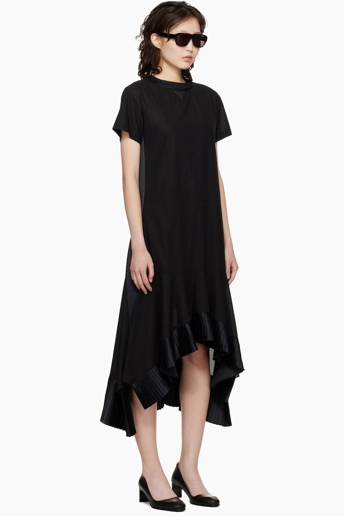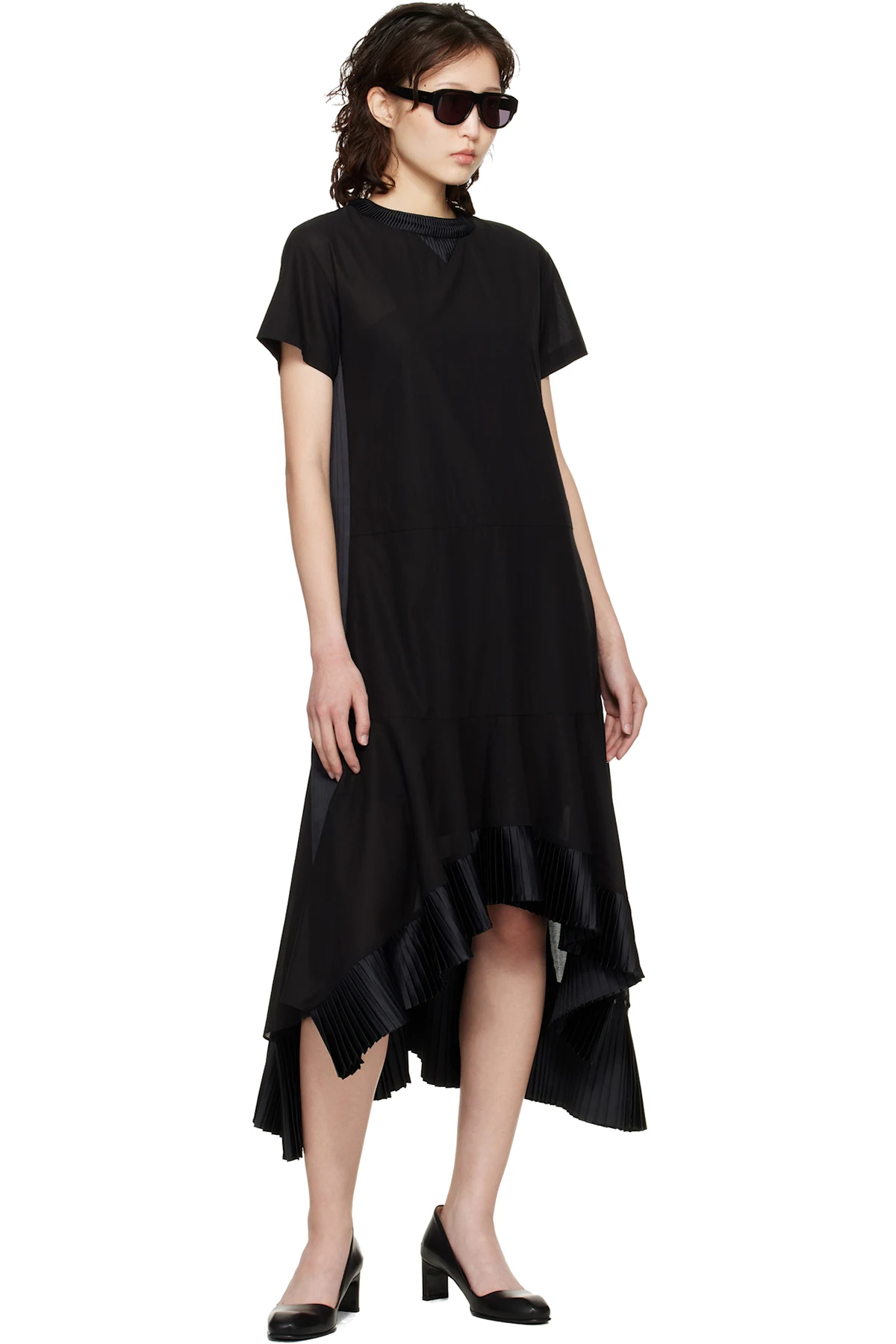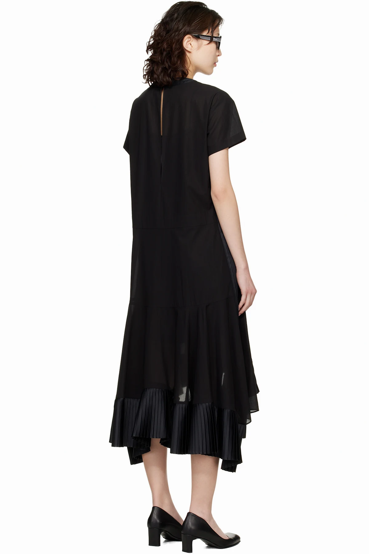 sacai Black Cotton Broadcloth Midi Dress