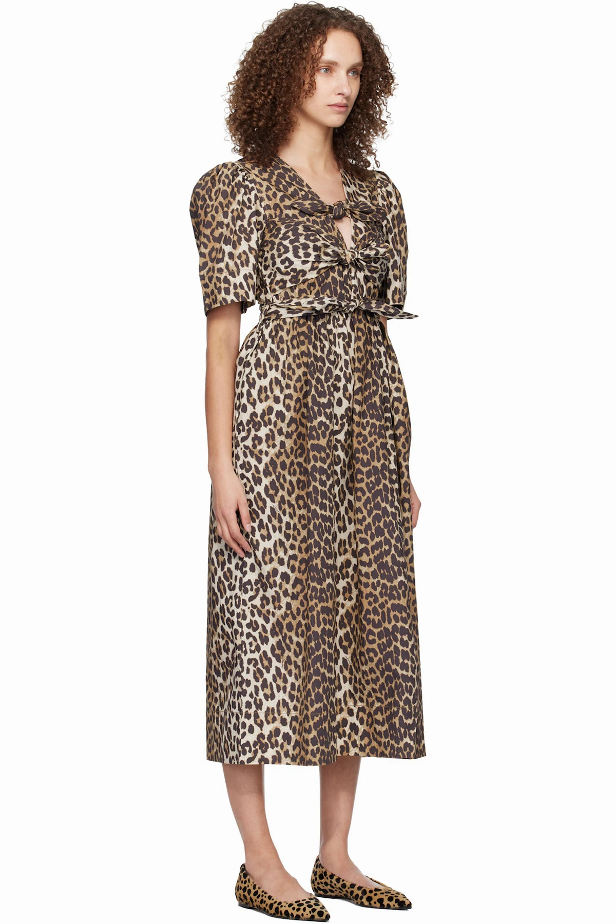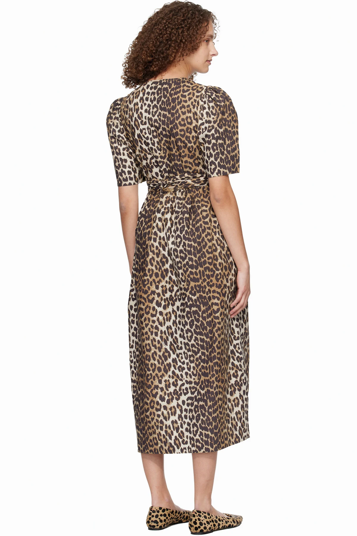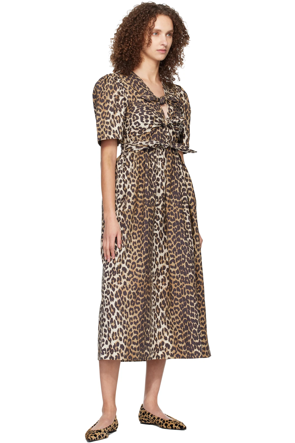 Ganni Brown & Black Leopard Printed Cotton Midi Dress