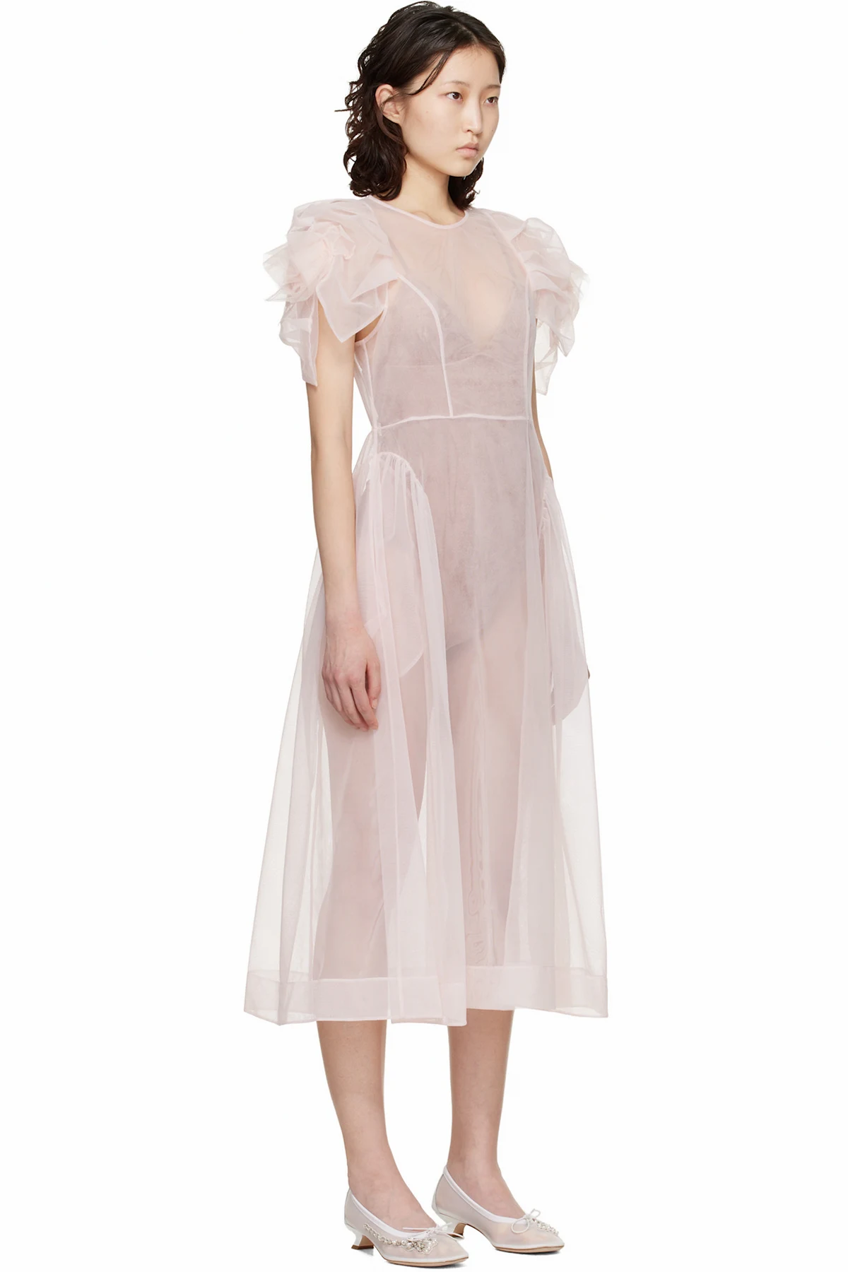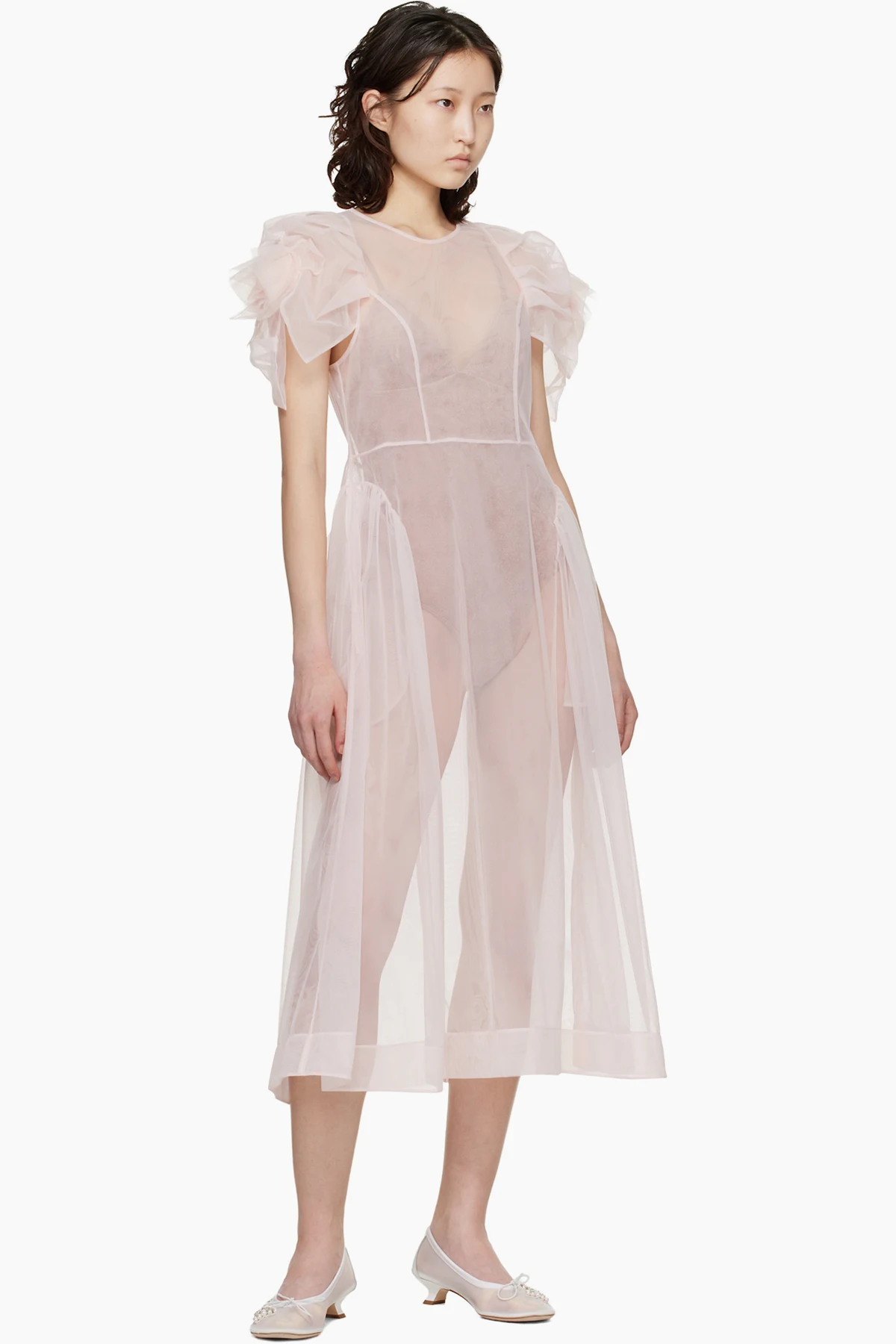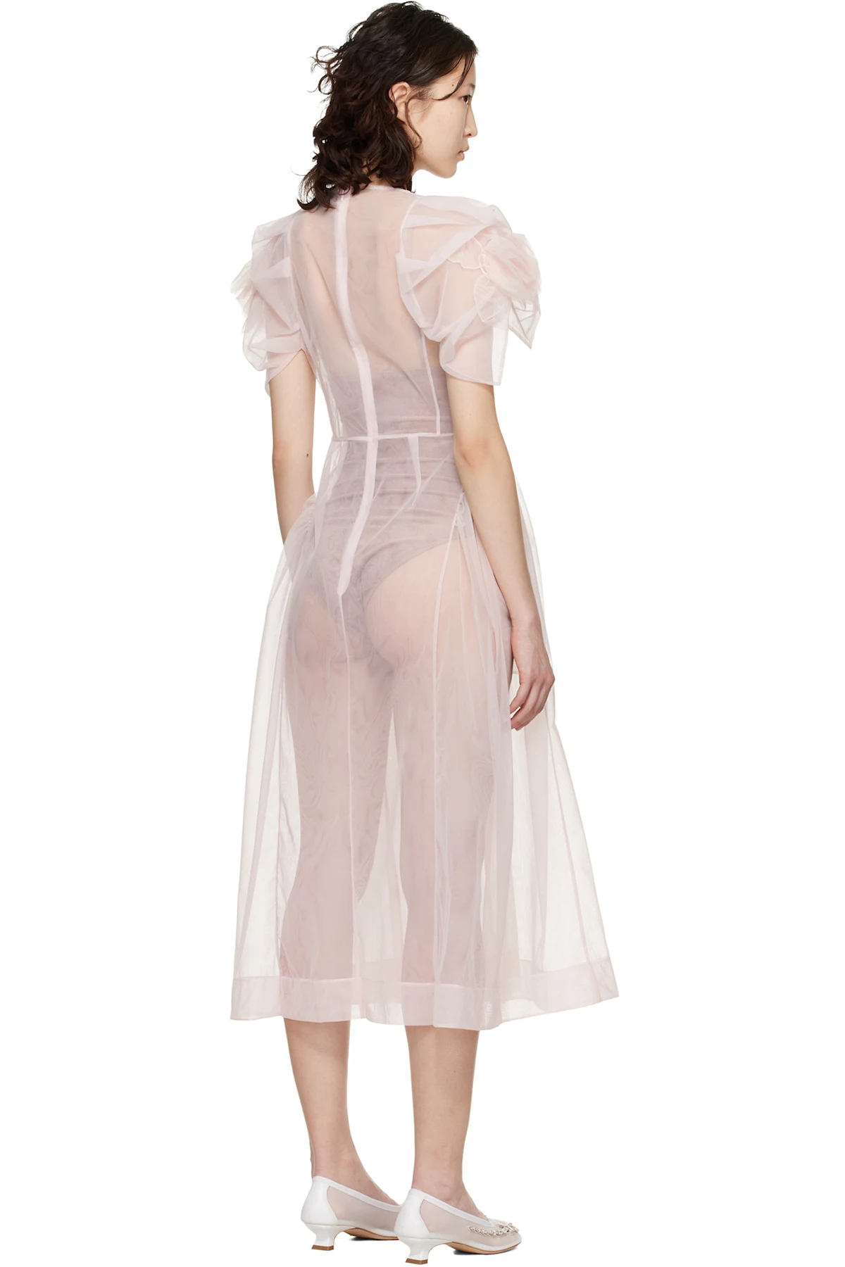 Sheer nylon tulle midi dress.