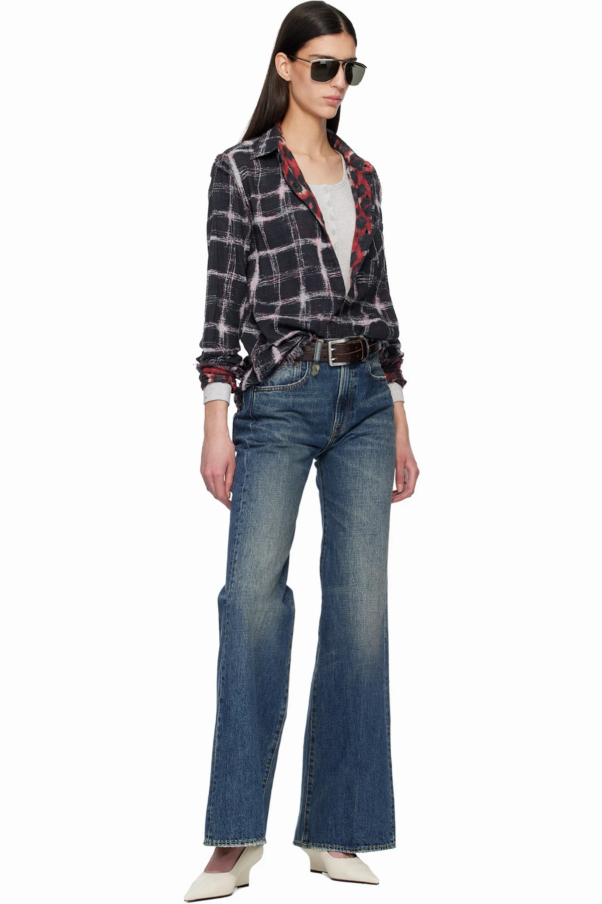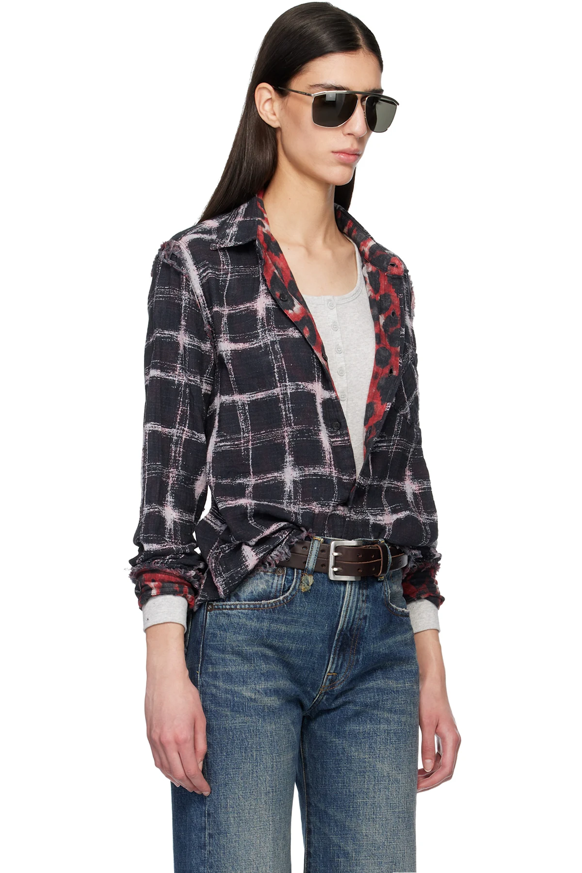 Reversible cotton gauze shirt. Check pattern printed throughout.