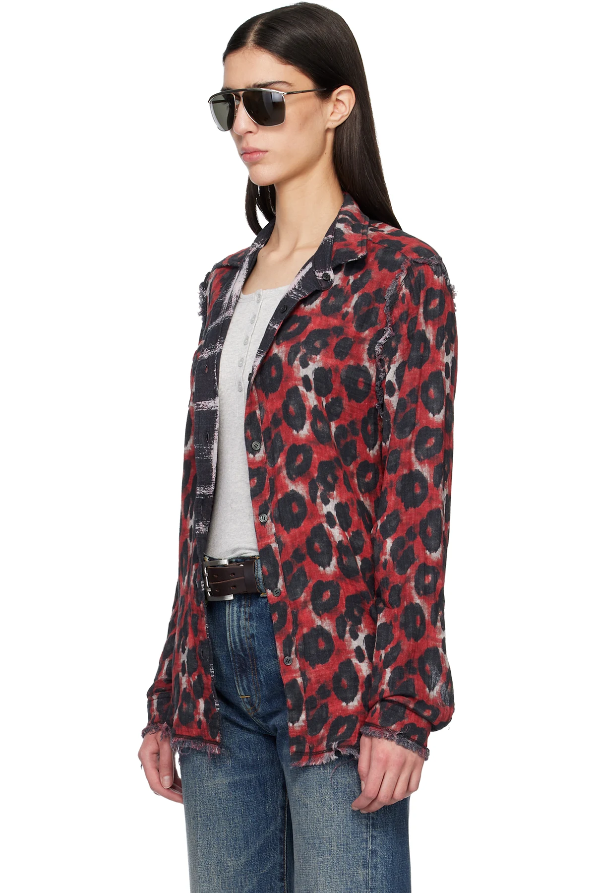 Reverse in red cotton gauze. Printed leopard pattern throughout.