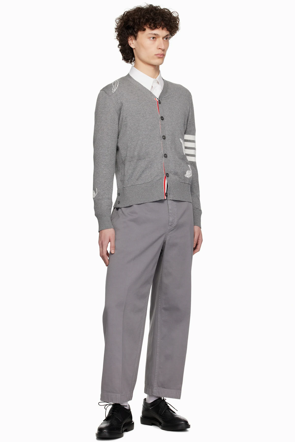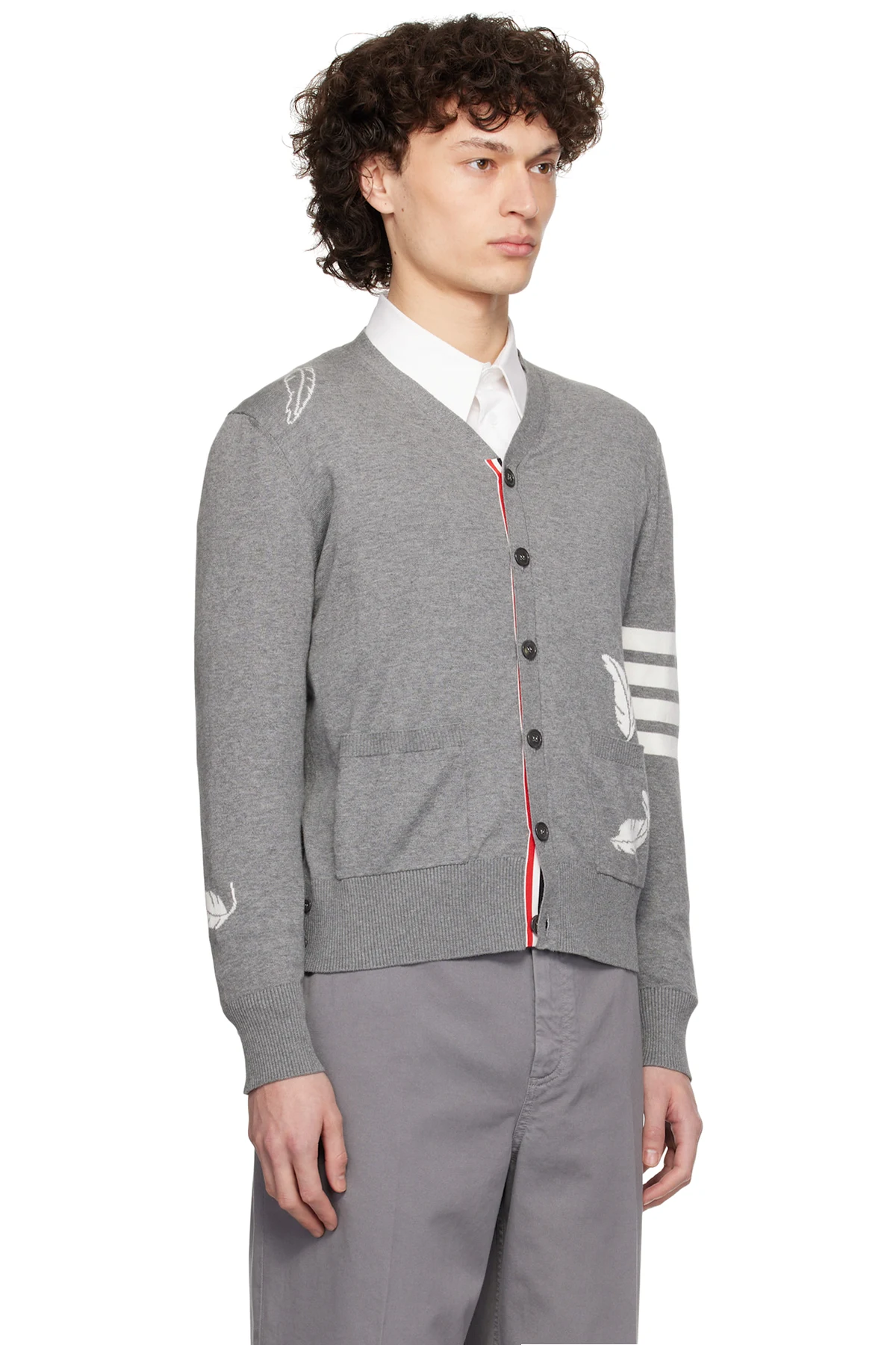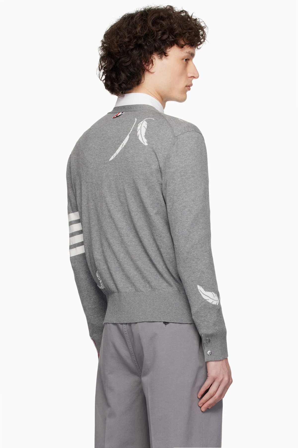 Thom Browne Gray Feather High V-Neck Cardigan