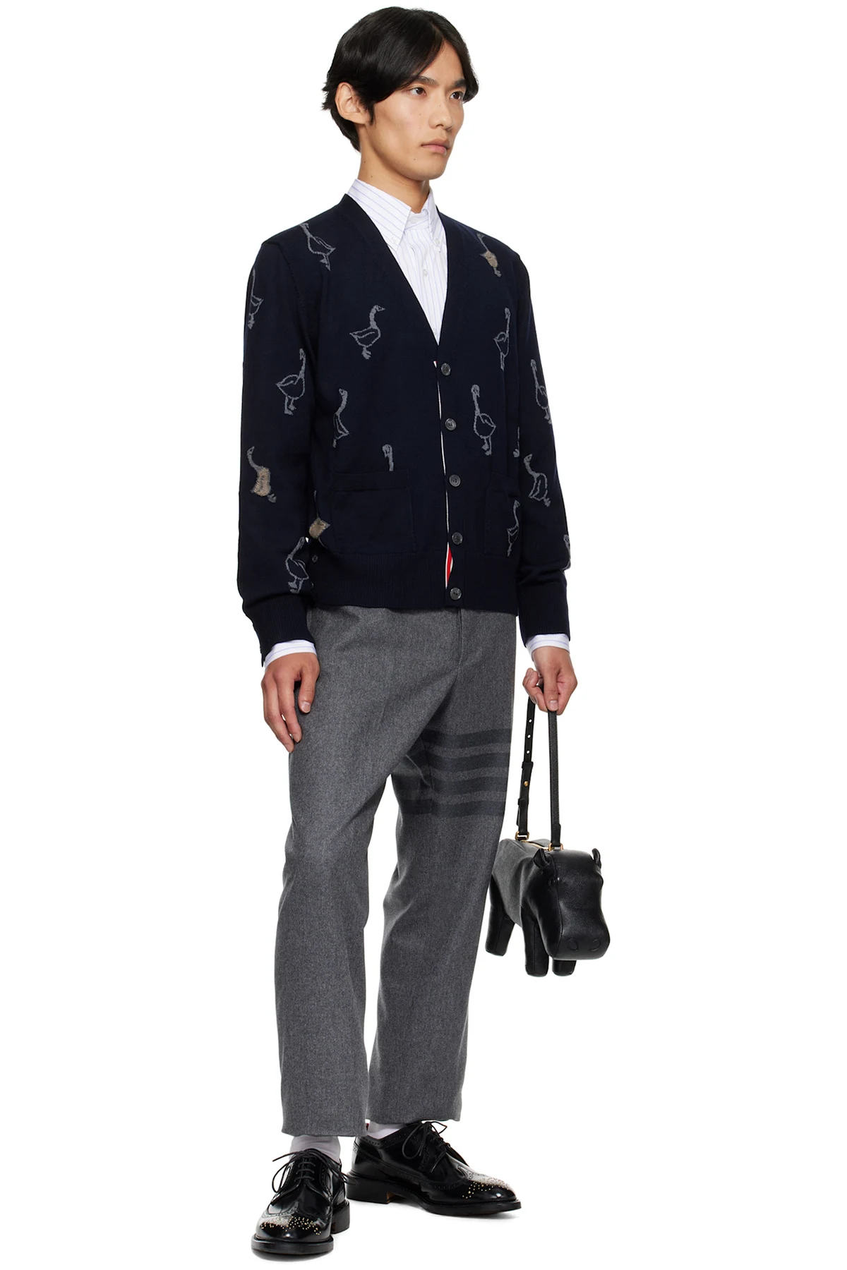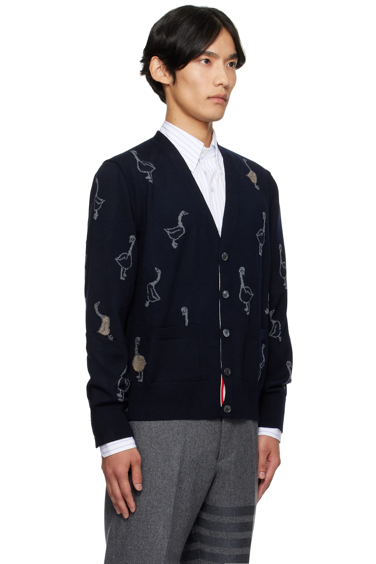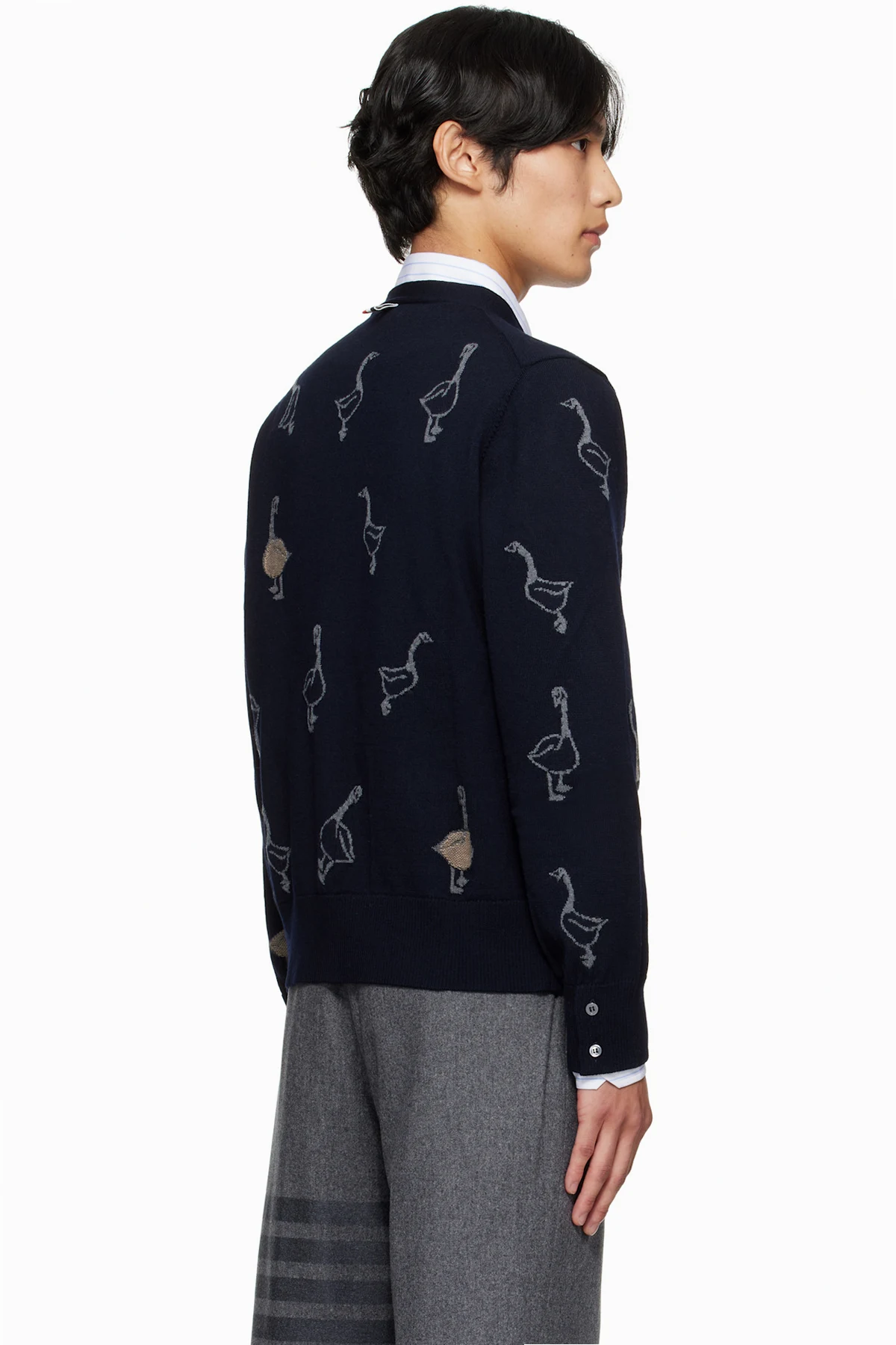 Thom Browne Navy Geese Intarsia Merino Relaxed Fit Cardigan