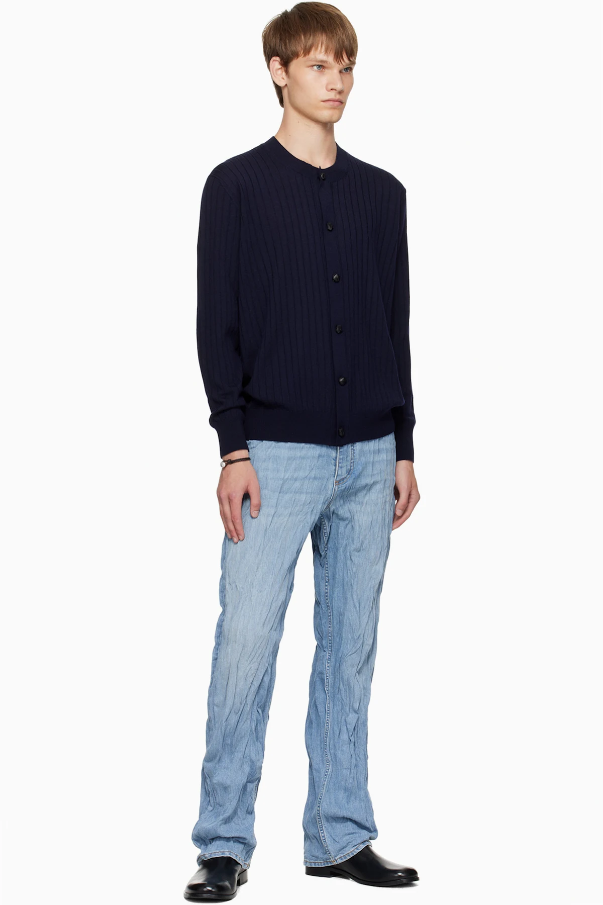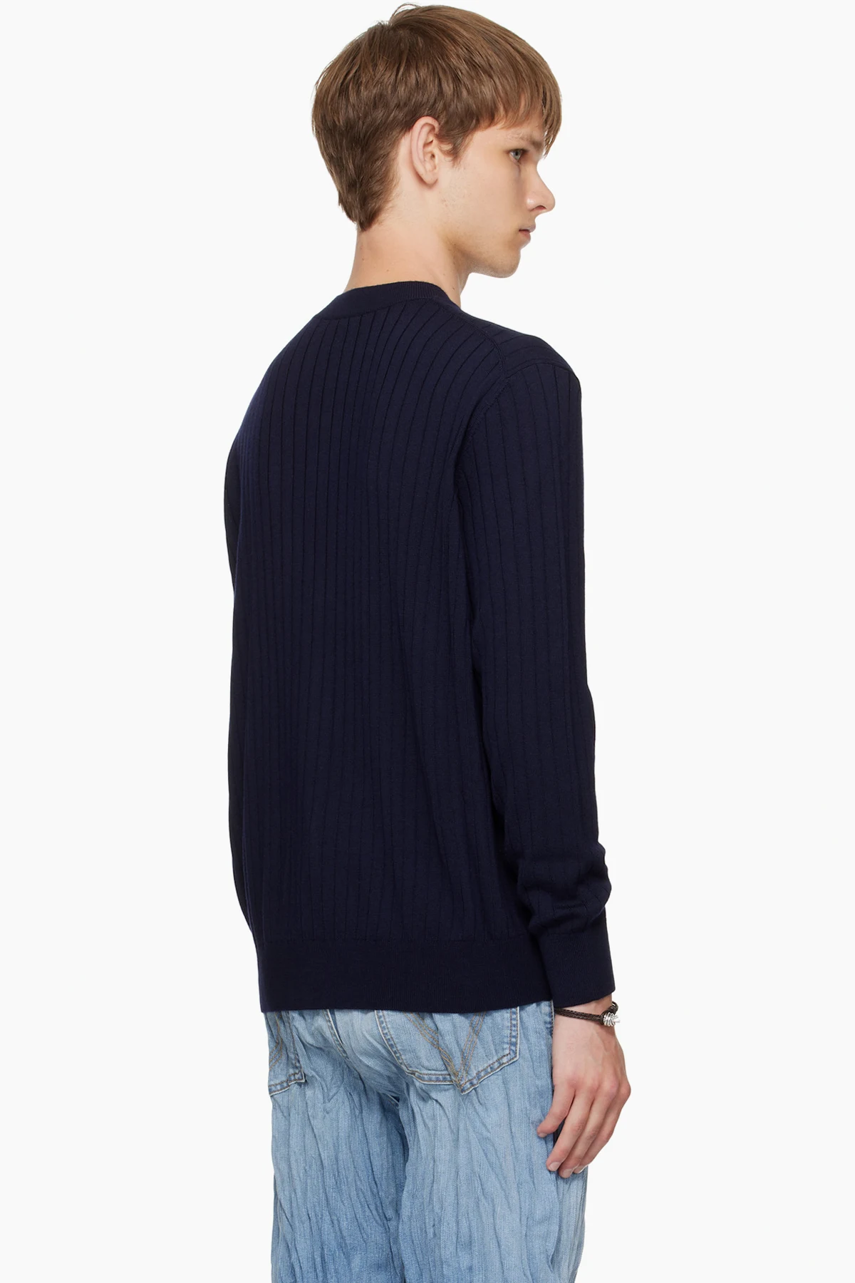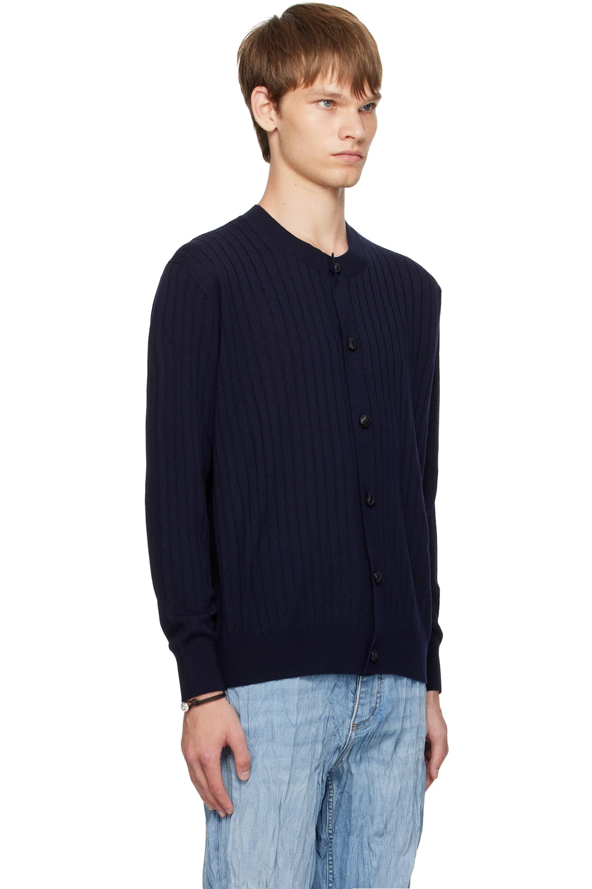Rib-knit wool cardigan.