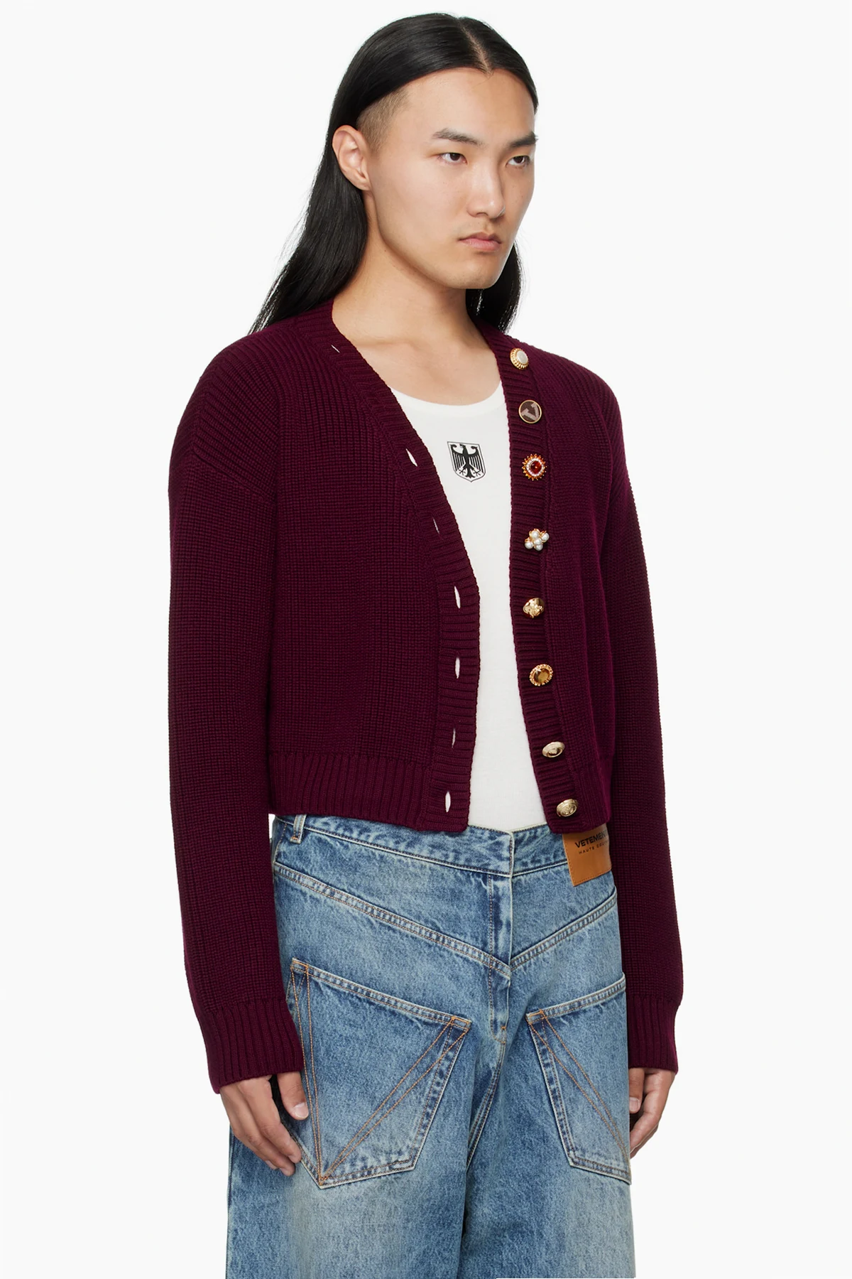 VETEMENTS Burgundy Fancy Button Mini Cardigan