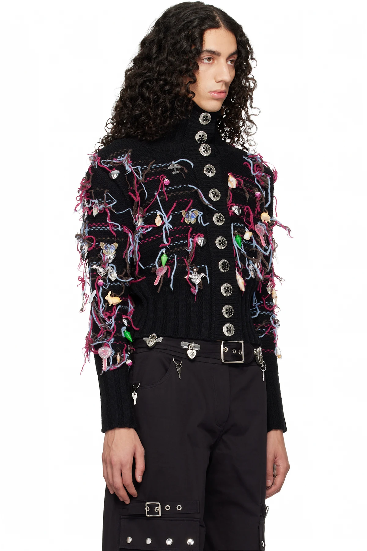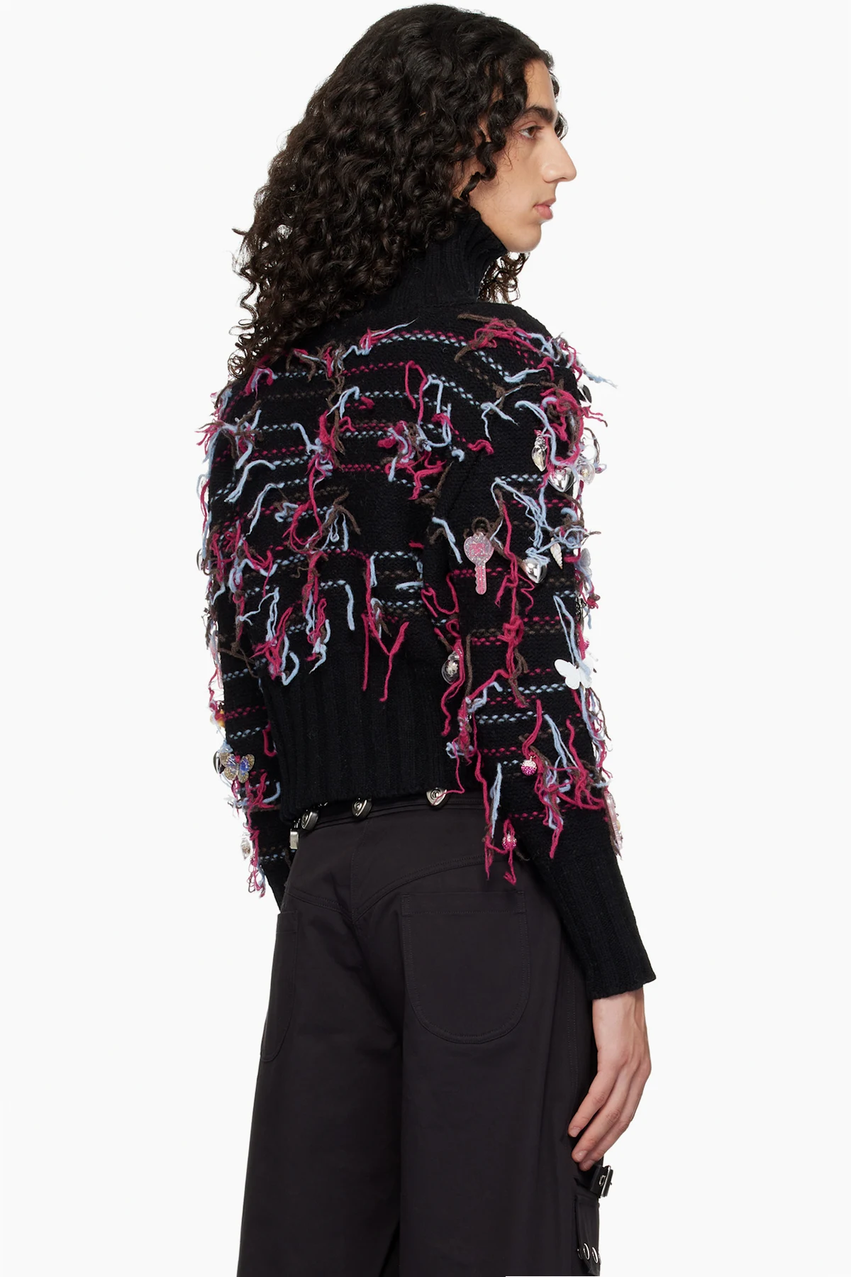 · Rib-knit fold-down stand collar, hem, and cuffs