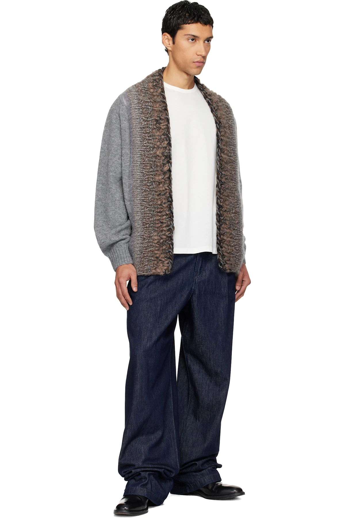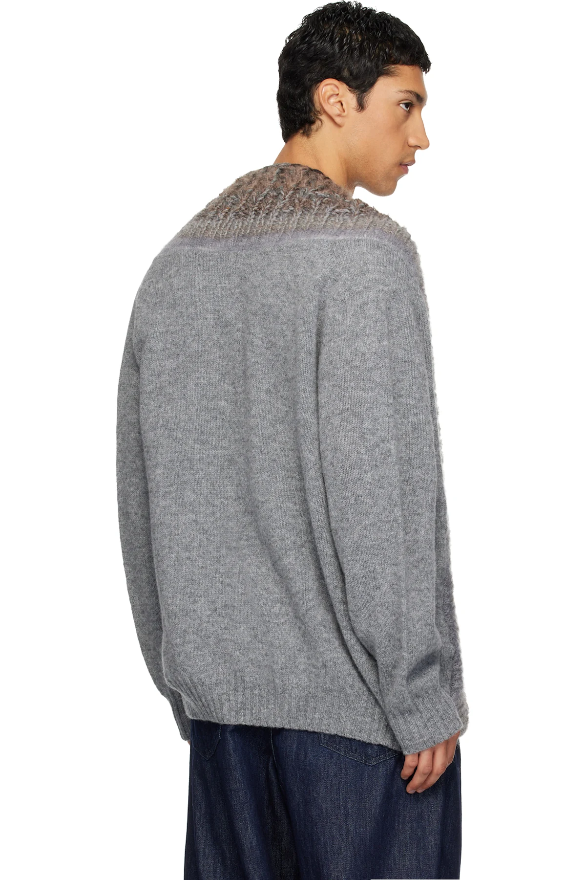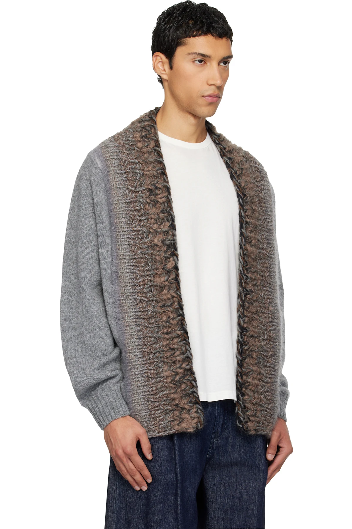 Knit wool- and mohair-blend cardigan.