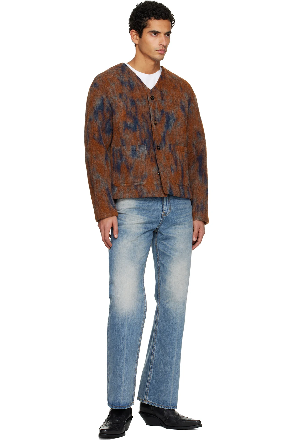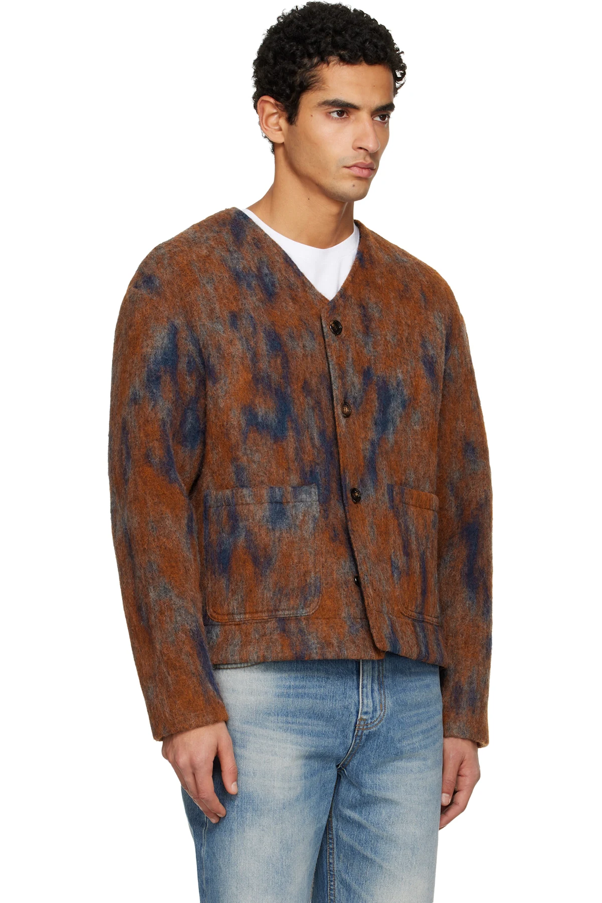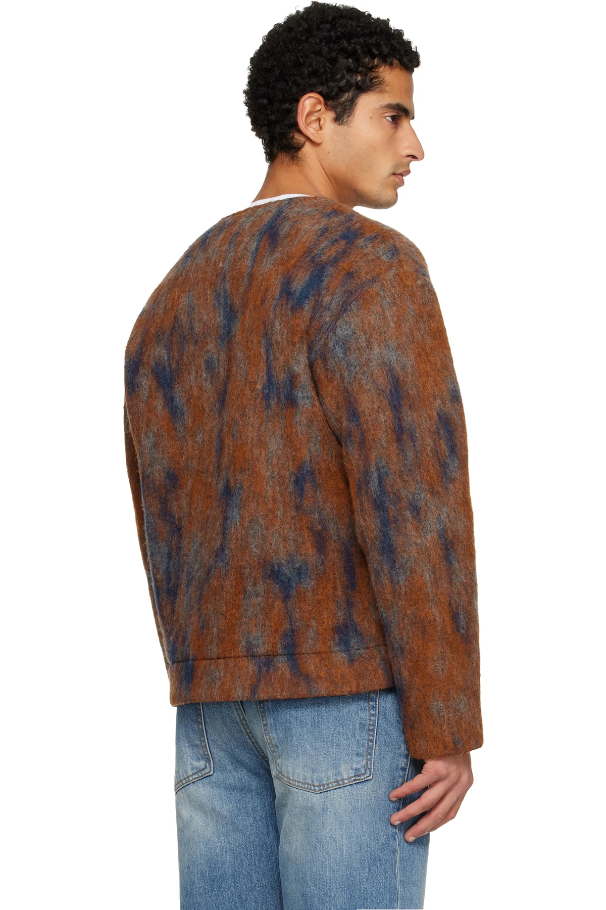 Brushed knit wool-blend cardigan.