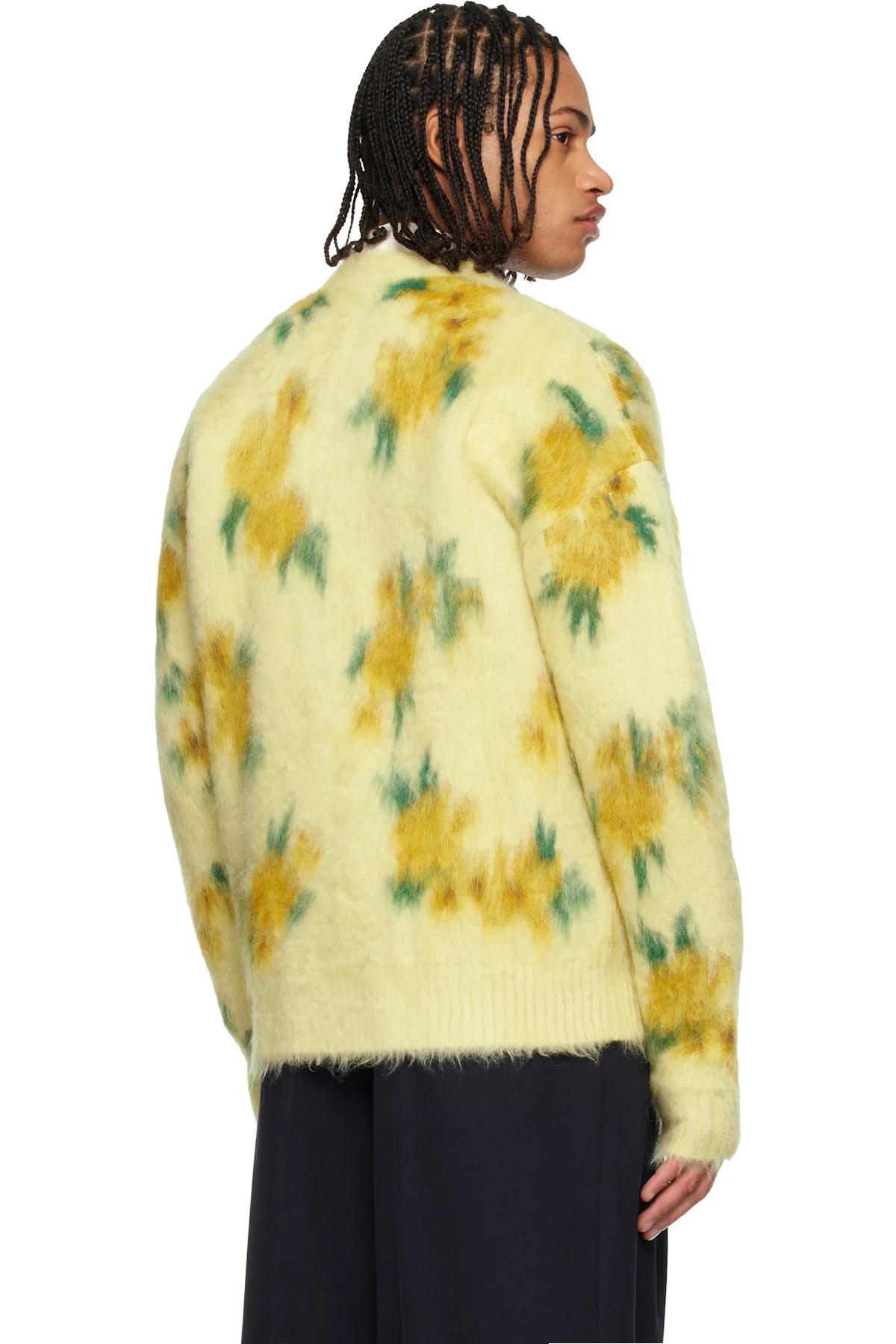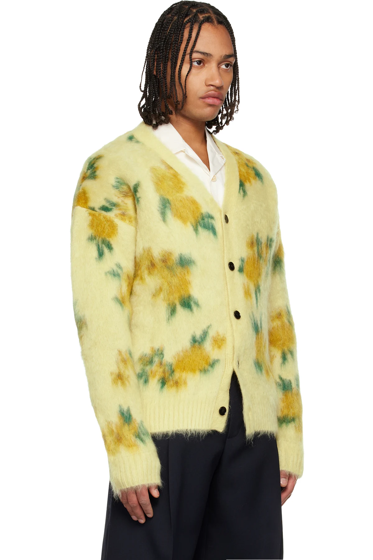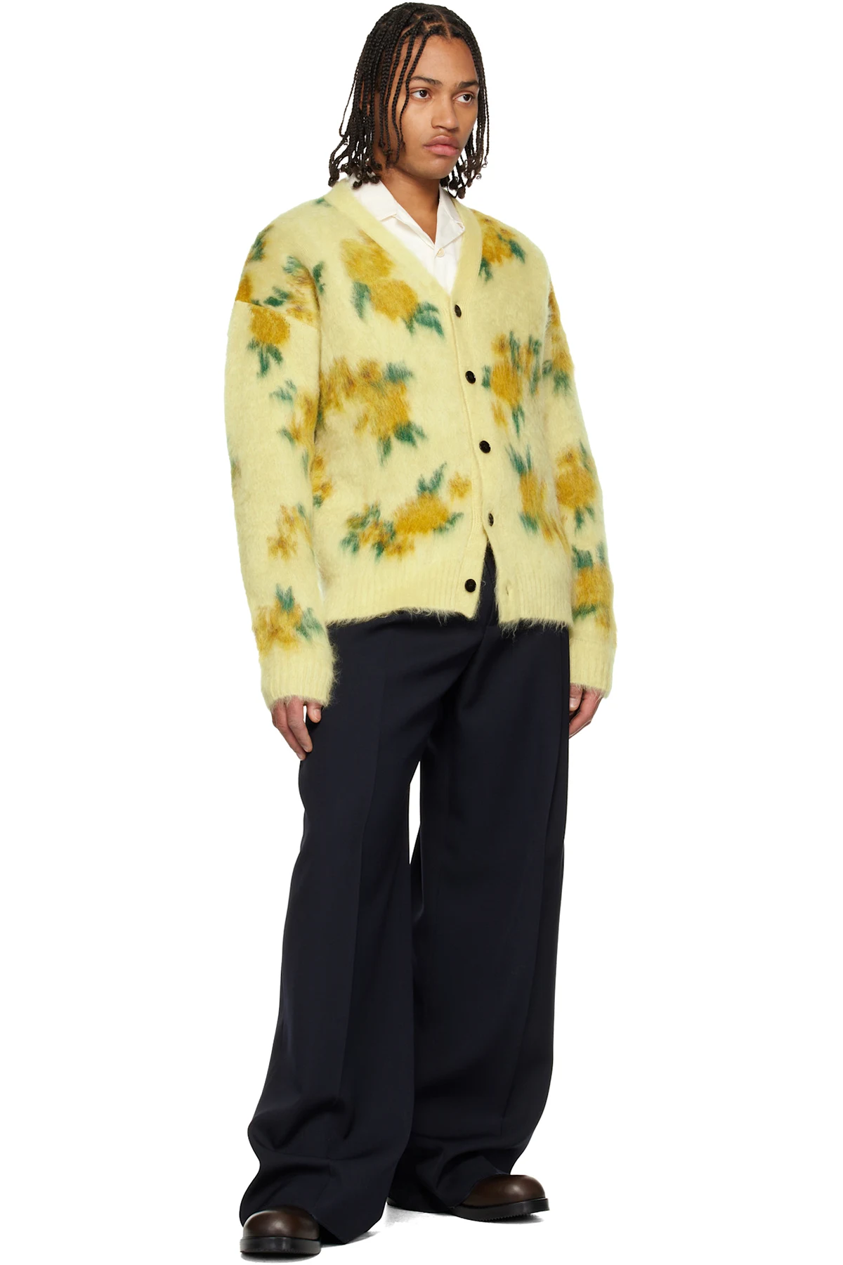 JIL SANDER Yellow Wool Blend V-Neck Cardigan