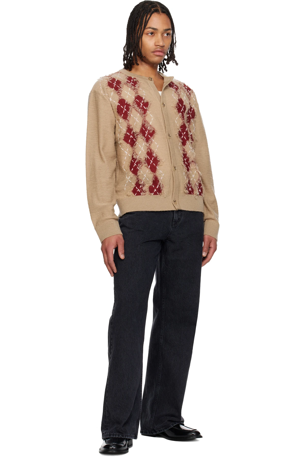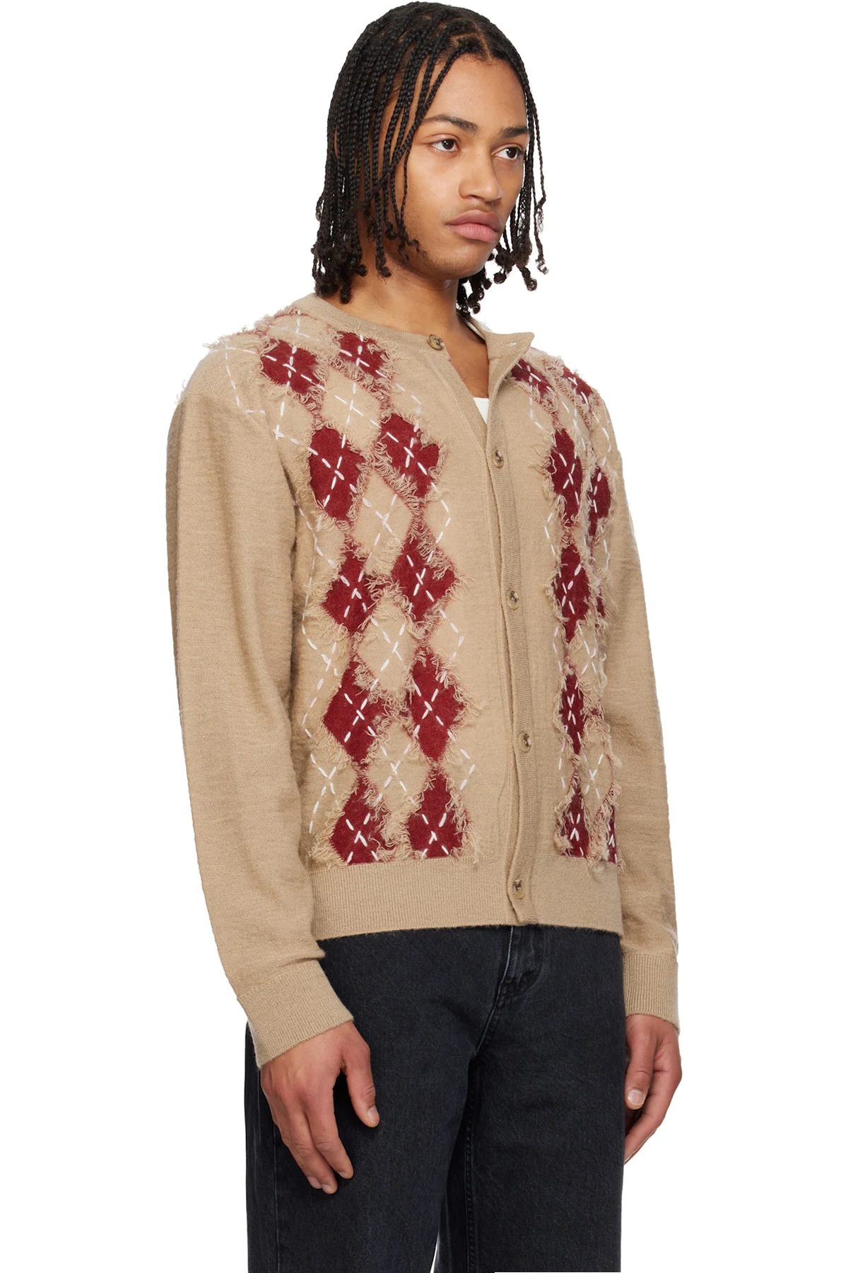 Solid Homme Beige Argyle Roundneck Cardigan