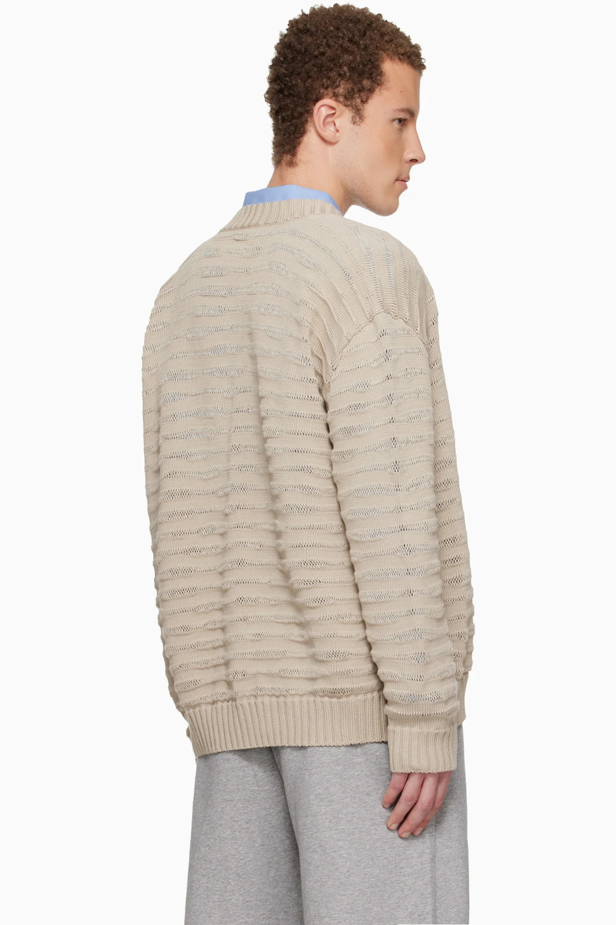 MM6 Maison Margiela Beige Open-Knit Stripe Cardigan