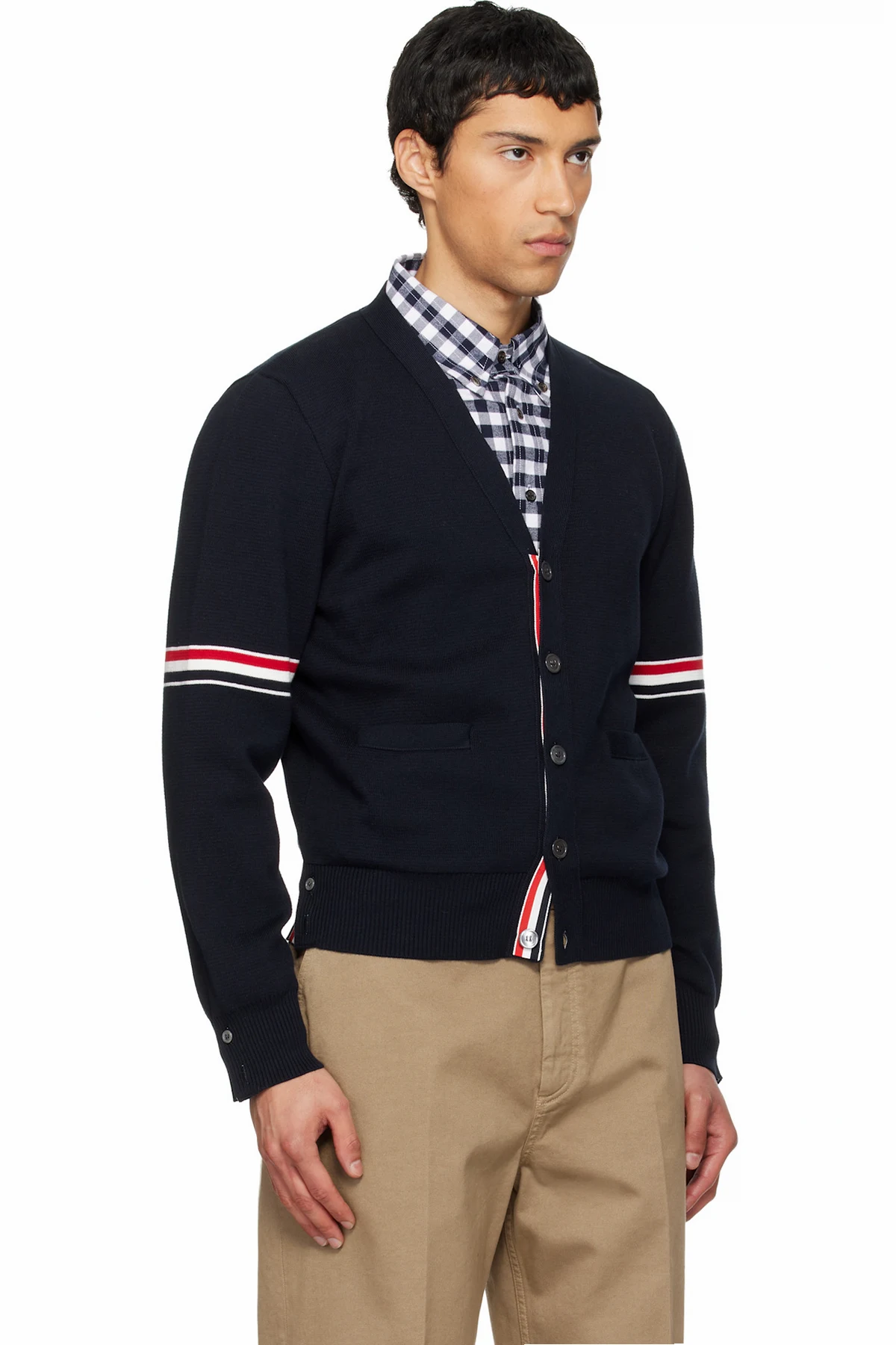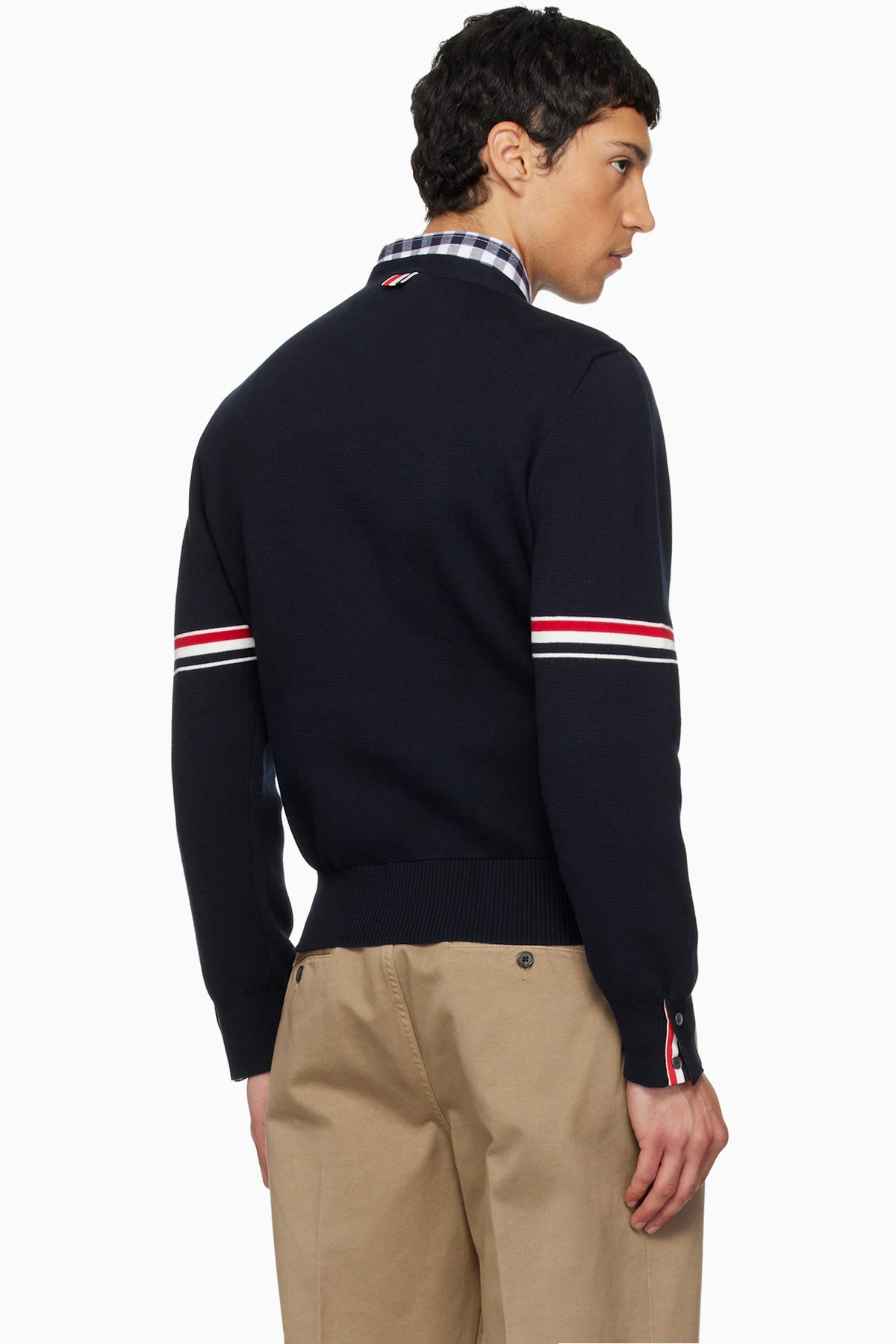 Thom Browne Navy Cotton Milano Stitch V-Neck Cardigan