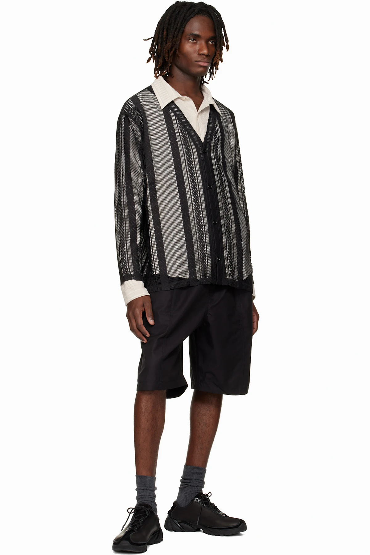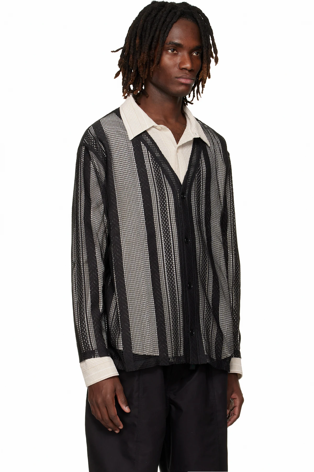 South2 West8 Black Poly Lace V-neck Cardigan