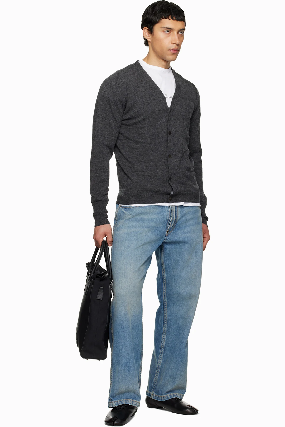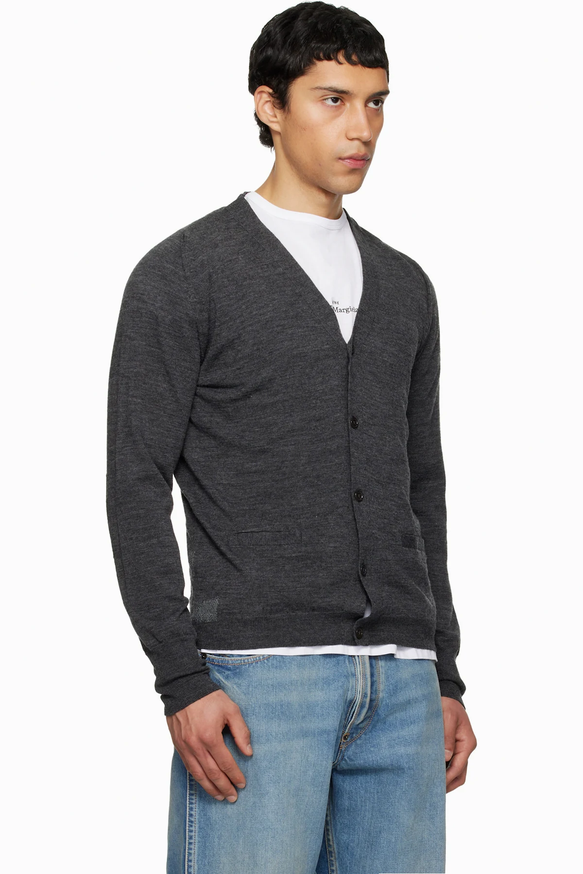 Maison Margiela Gray Wool-Blend V-Neck Cardigan