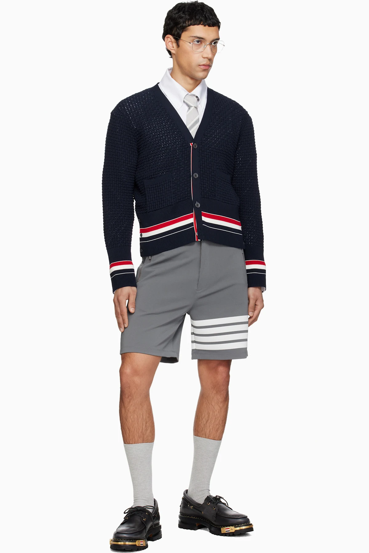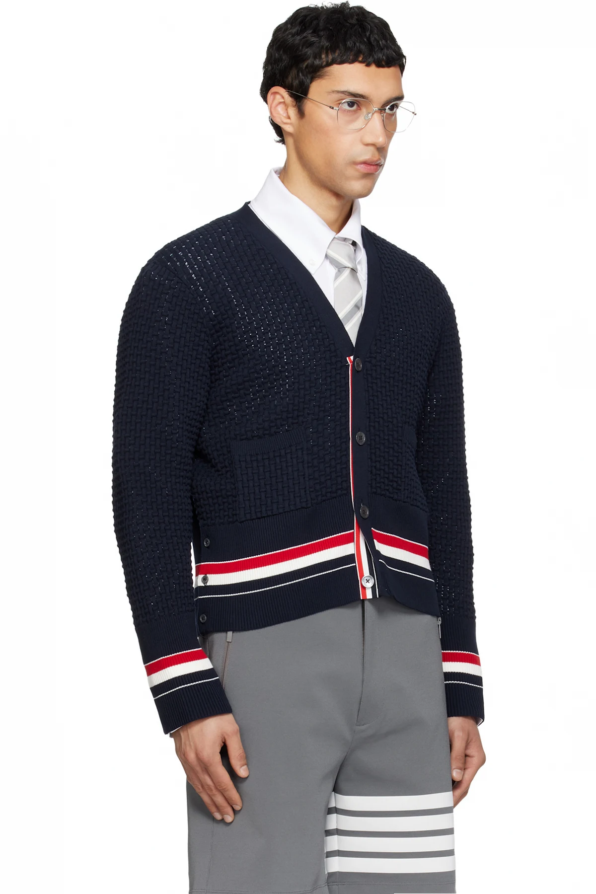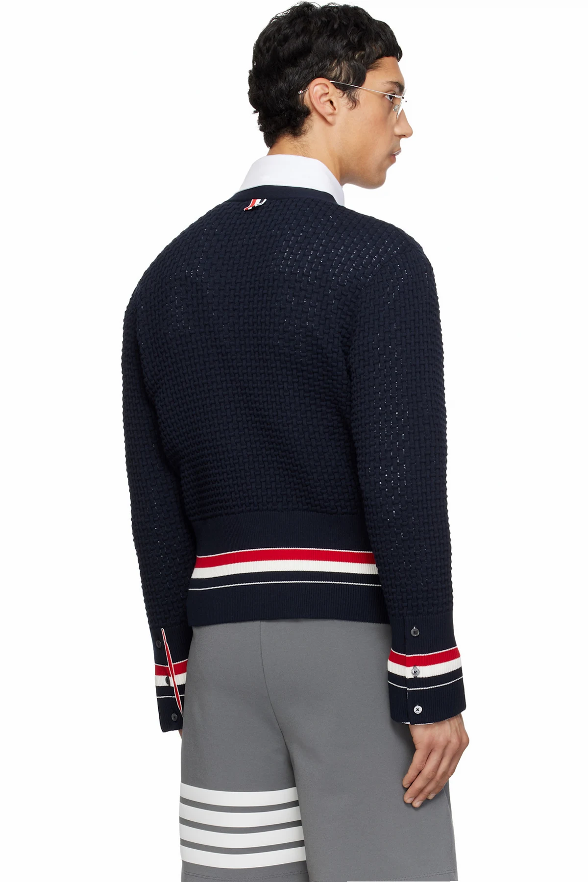 Thom Browne Navy Float Ripple Stitch RWB Cardigan
