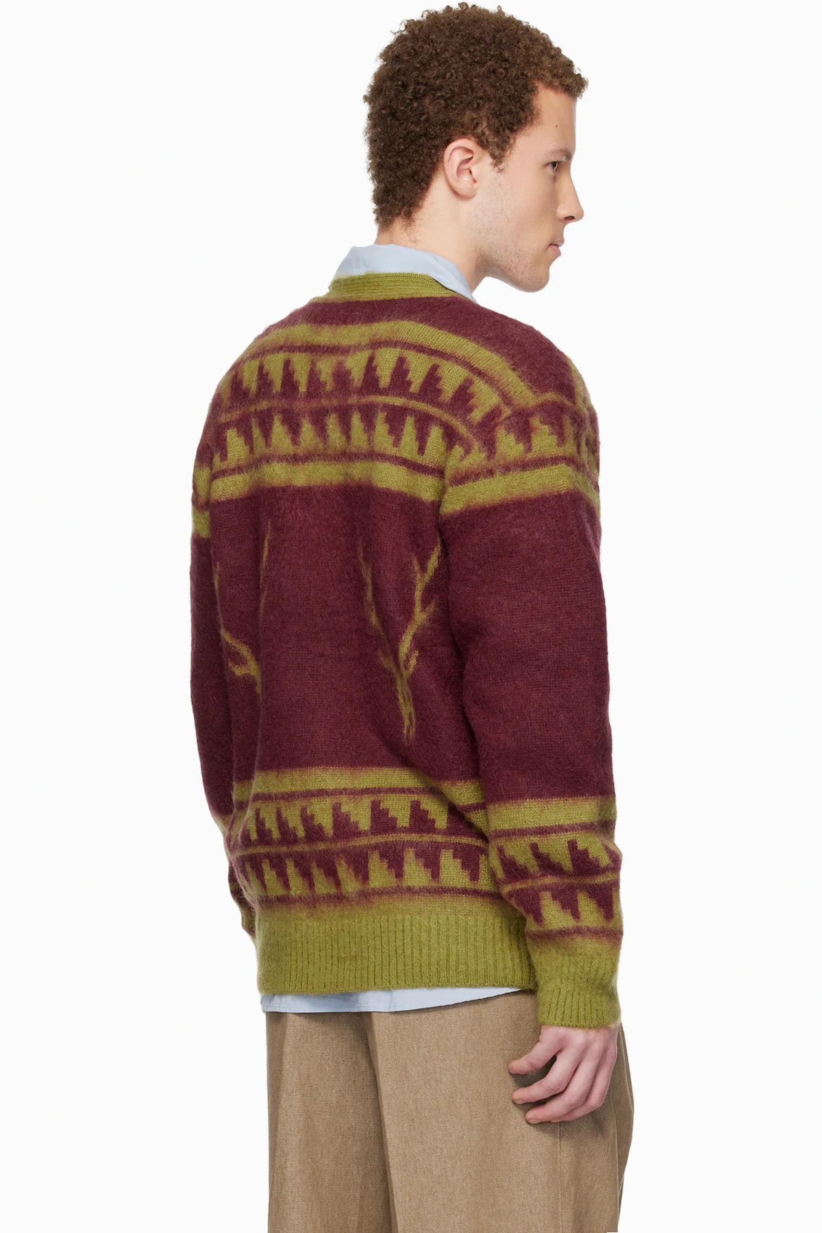 South2 West8 Red & Green Mohair V-Neck Cardigan