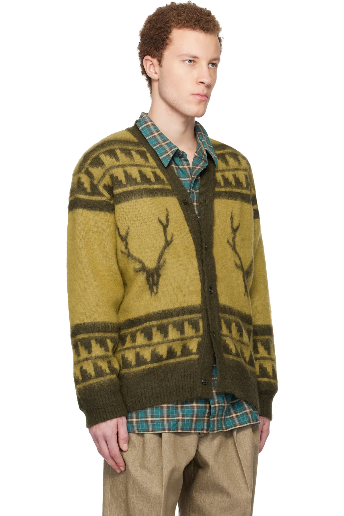 South2 West8 Yellow Mohair V-Neck Cardigan