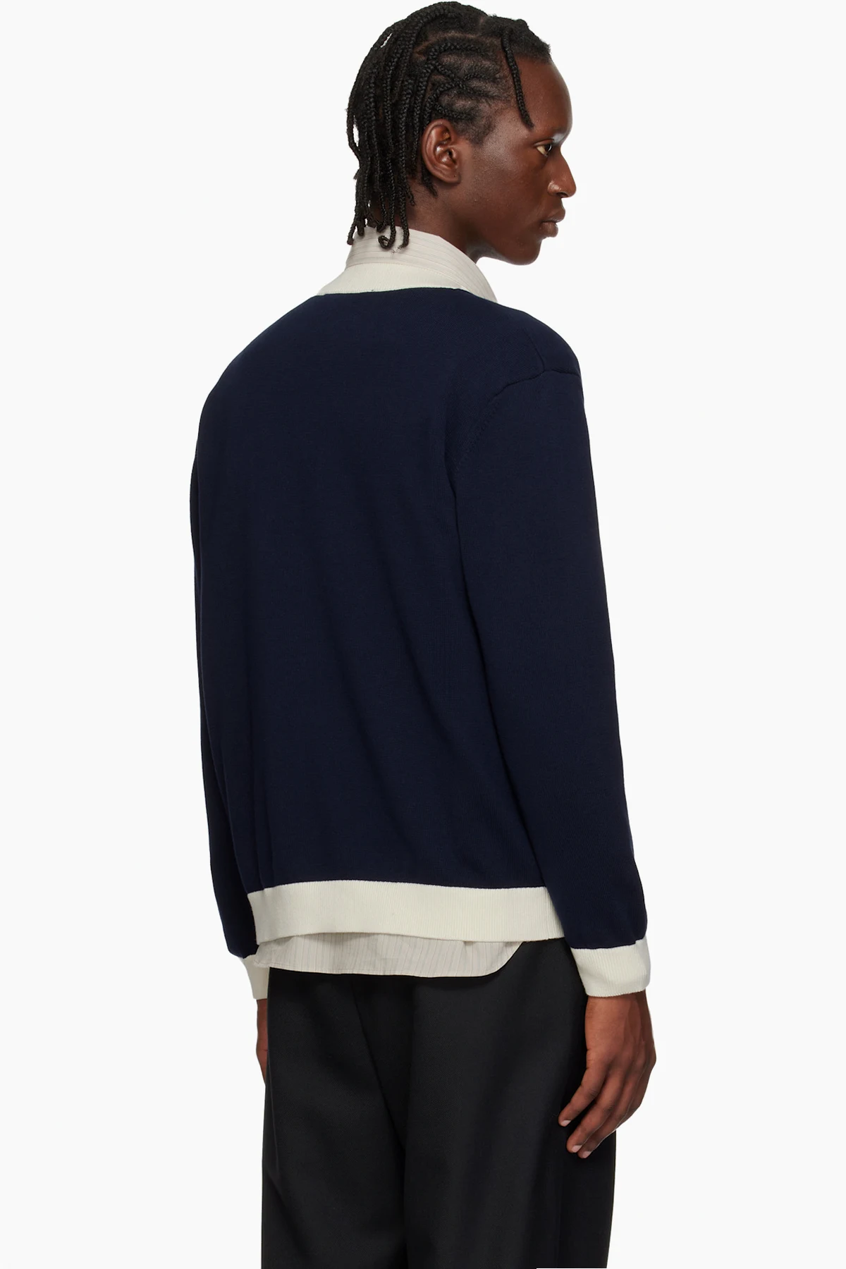 Maison Kitsuné Navy Contrasted Cotton Comfort Cardigan