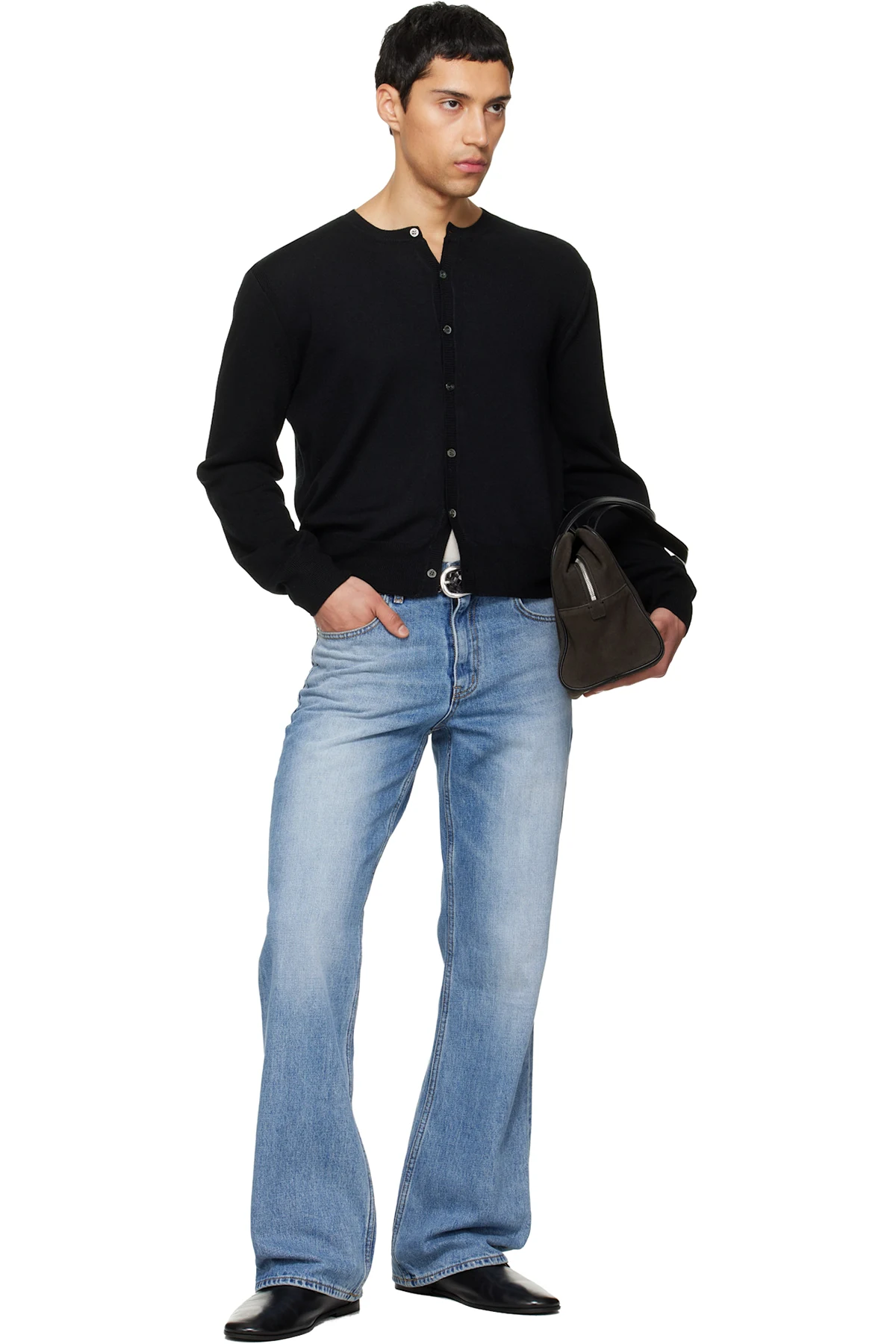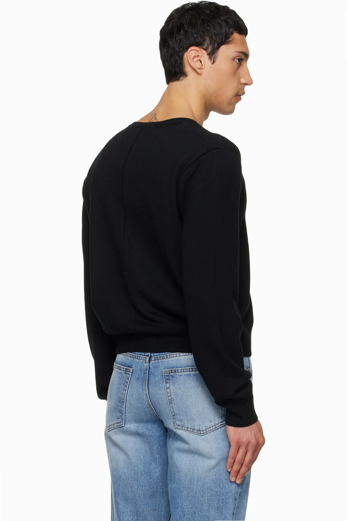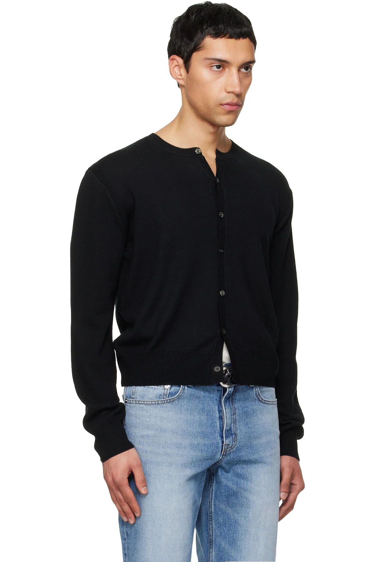 TONYWACK Black Super Fine Wool Crew-Neck Cardigan