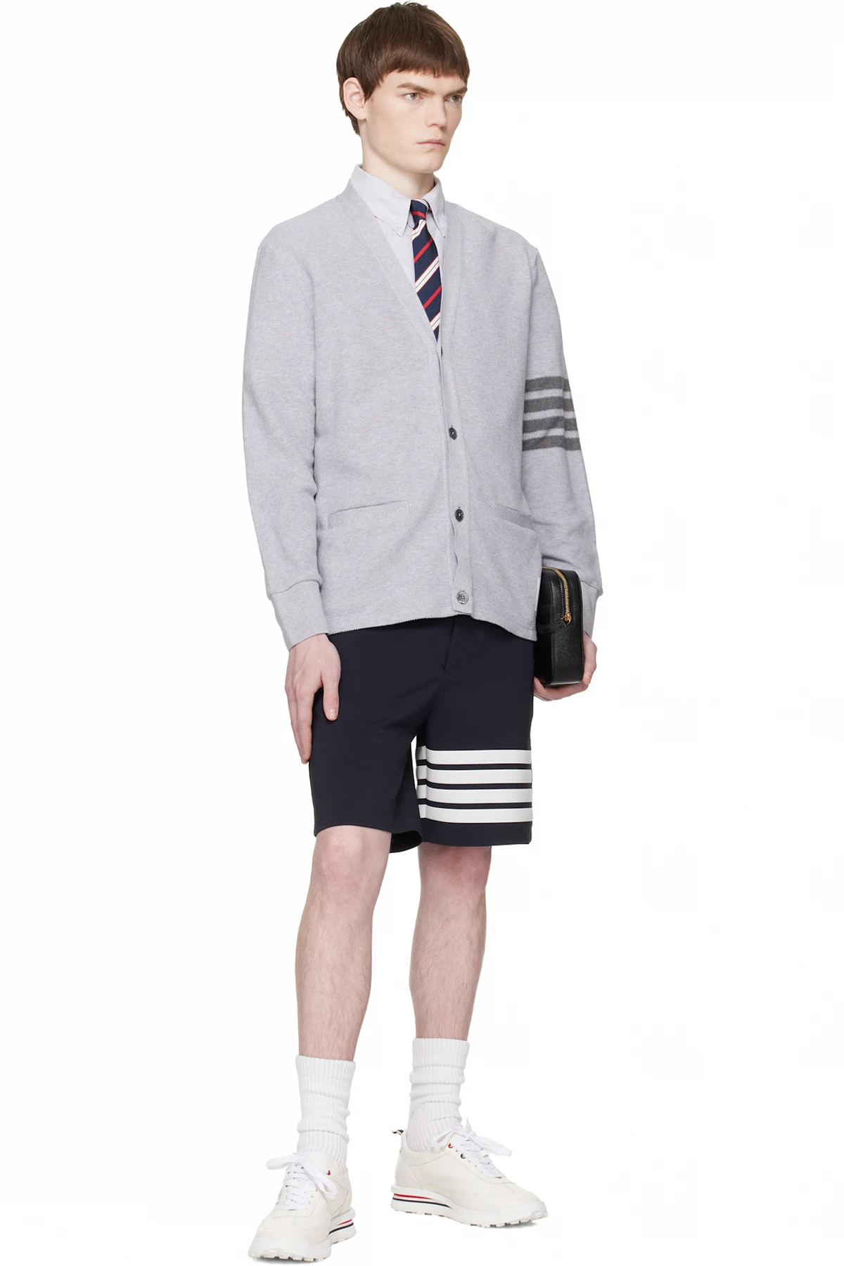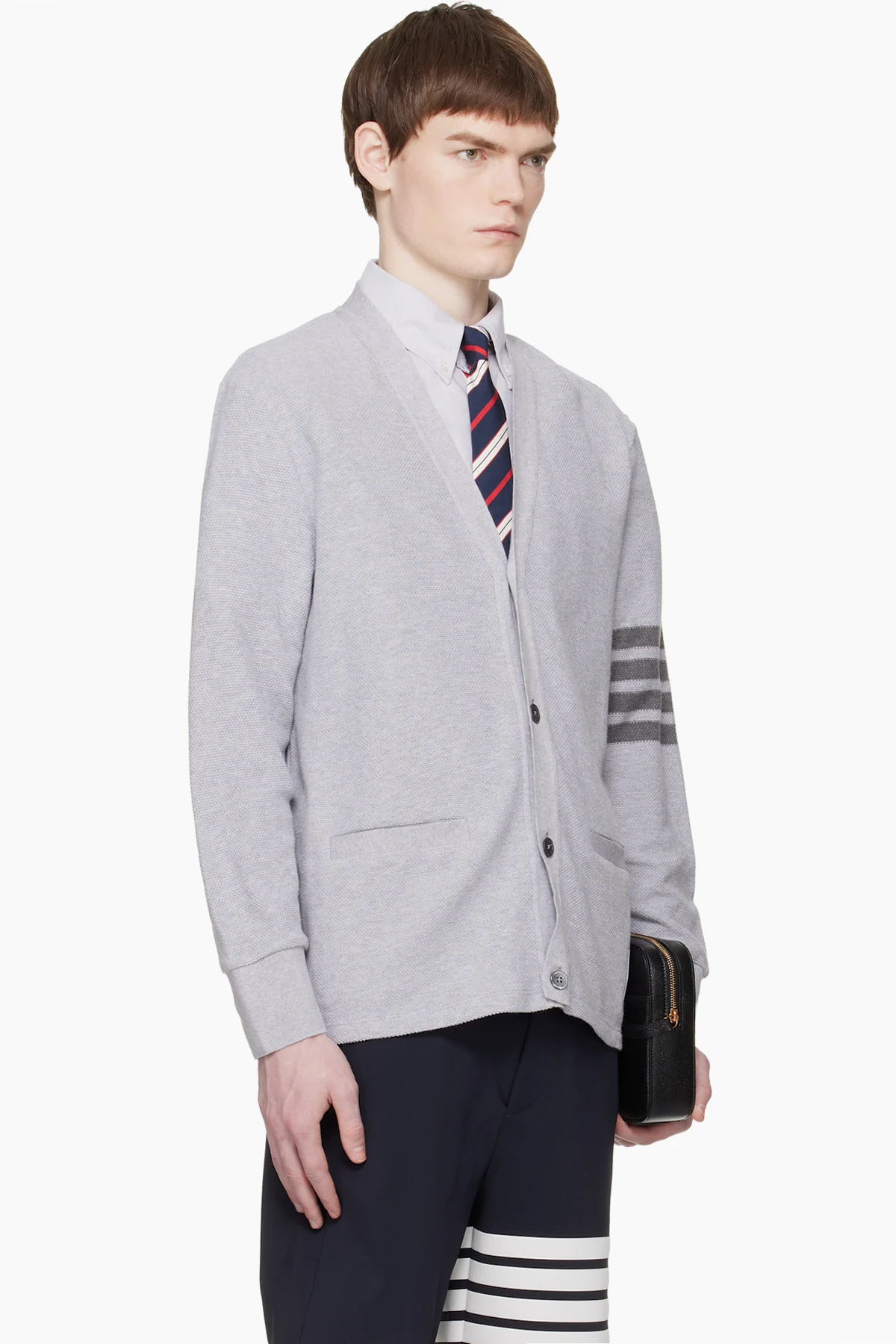 Thom Browne Gray Textured Pique 4-Bar Cardigan