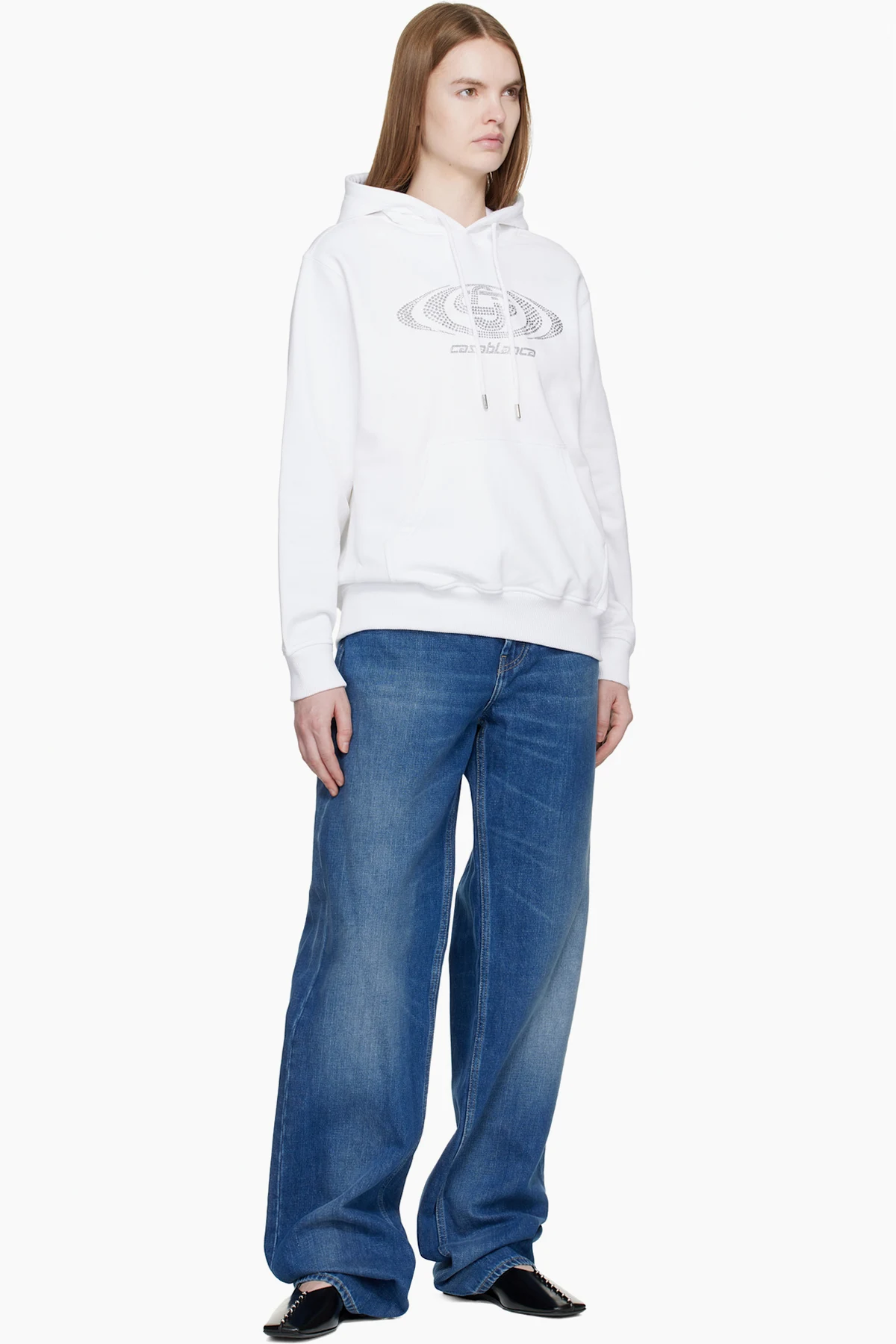 Casablanca Off-White Crystal Warped Logo Hoodie