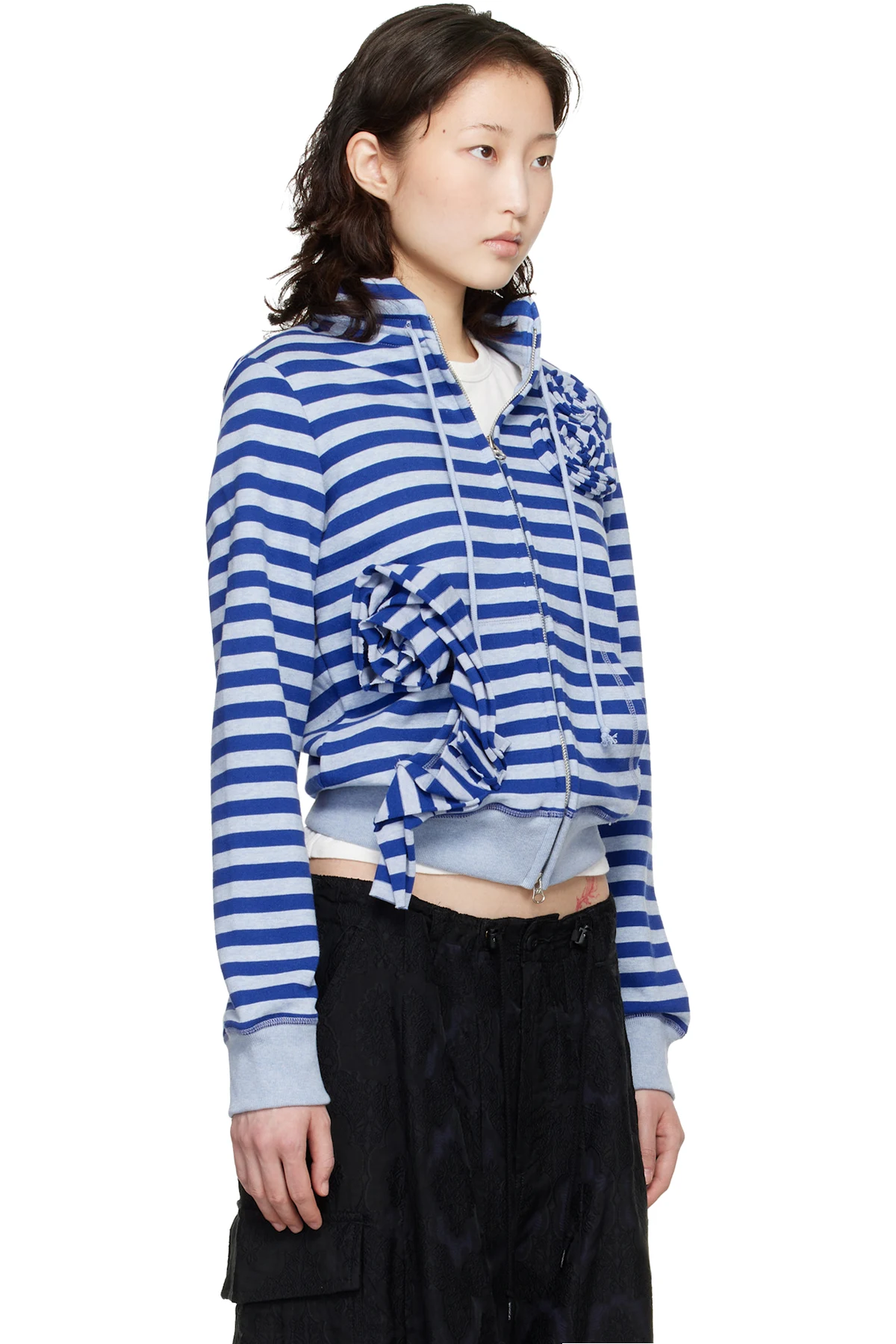 OPEN YY SSENSE Exclusive Navy Applique Knit Zipup Sweatshirt