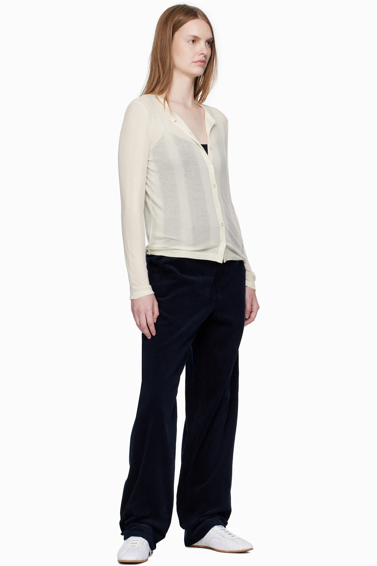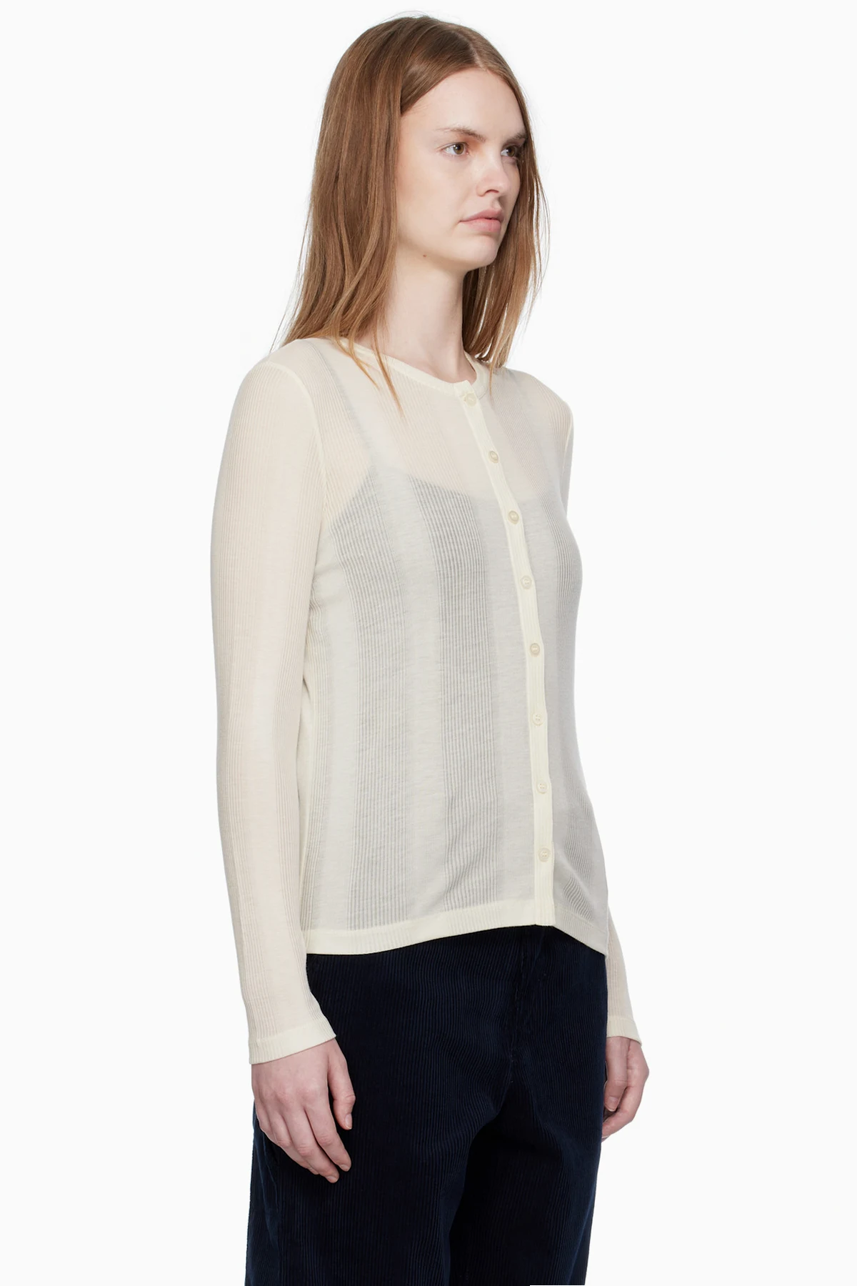 Lightweight rib-knit lyocell cardigan.