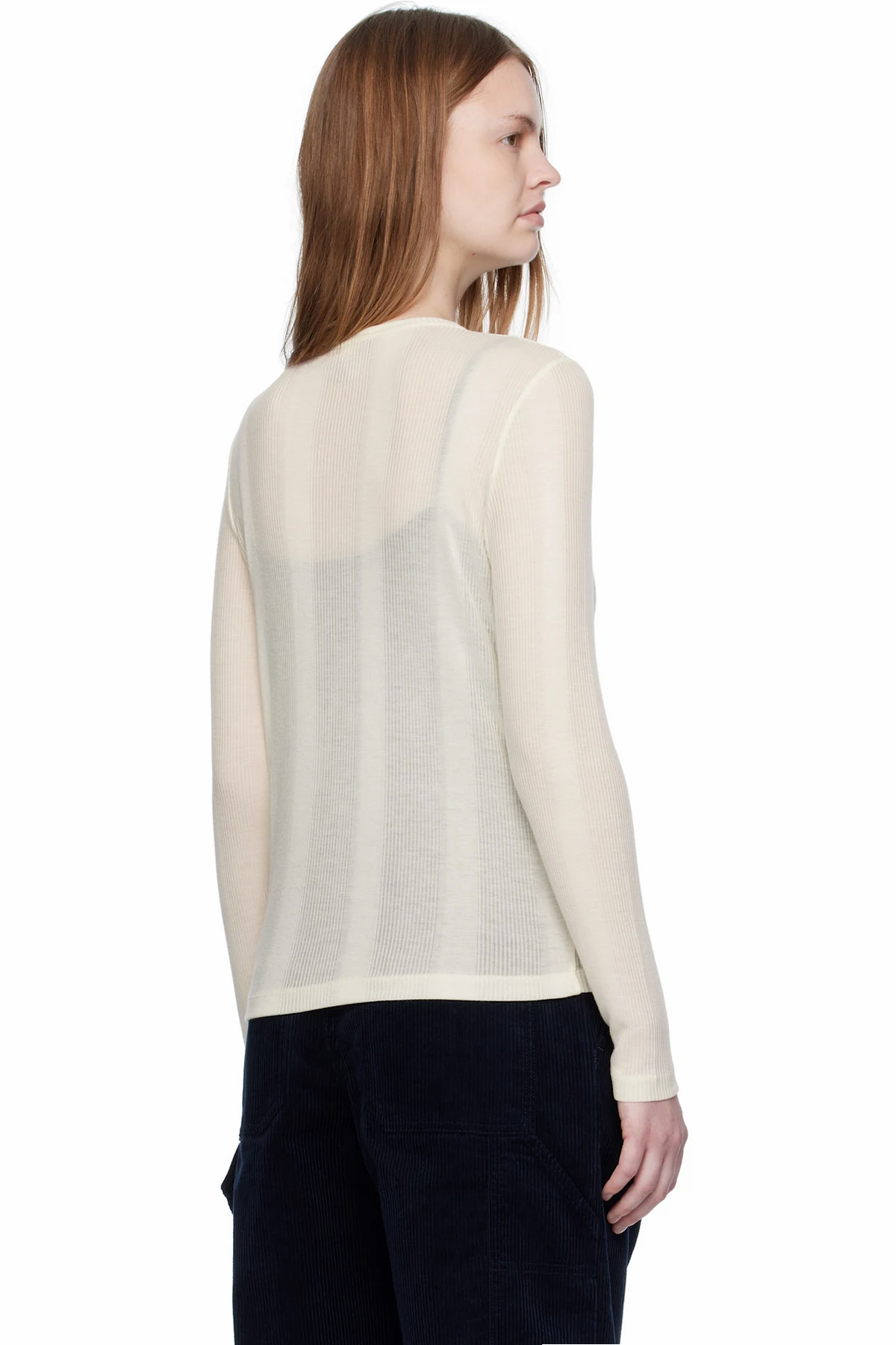 · Semi-sheer stripes throughout