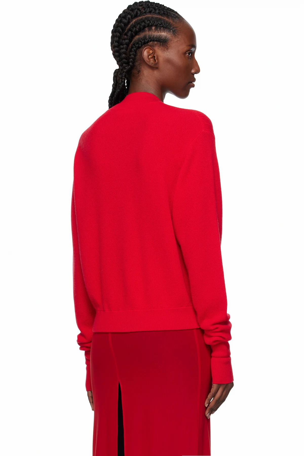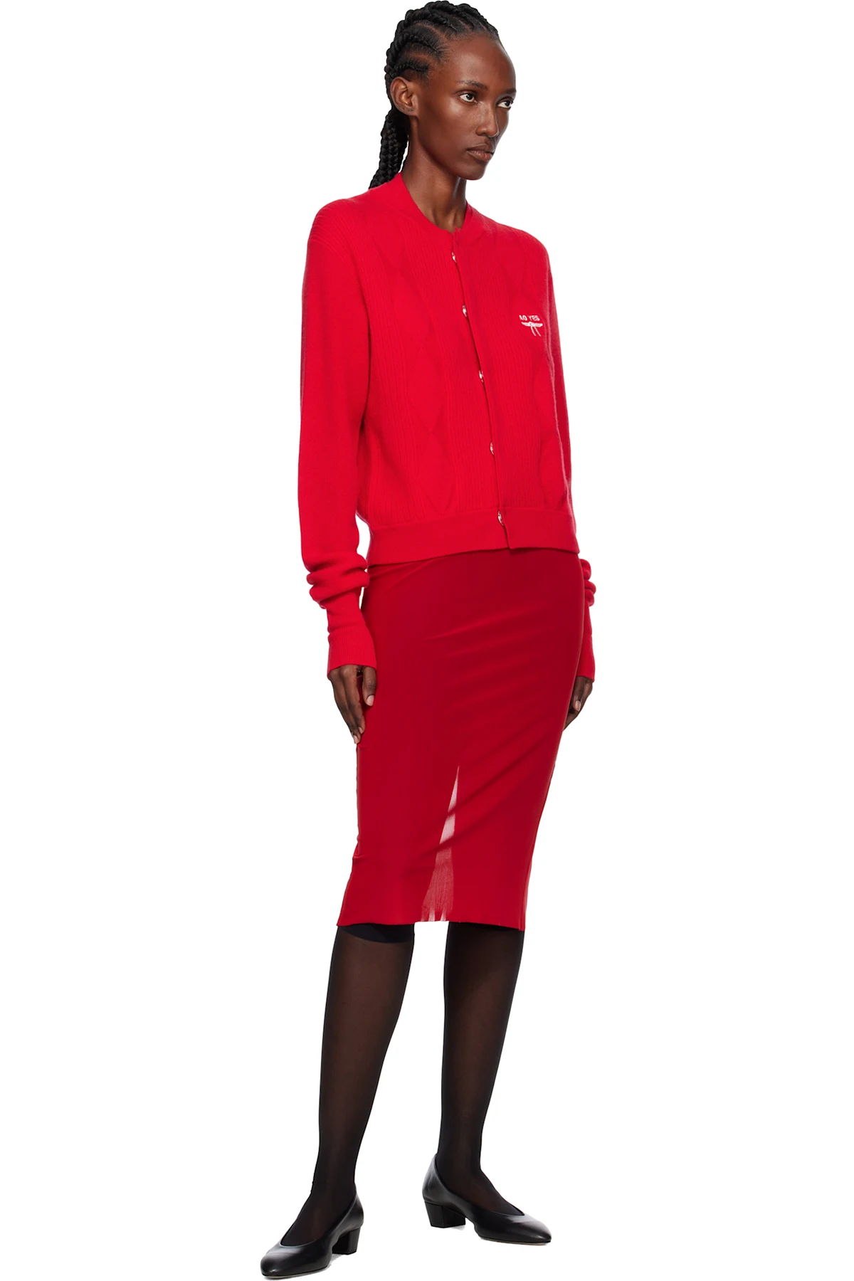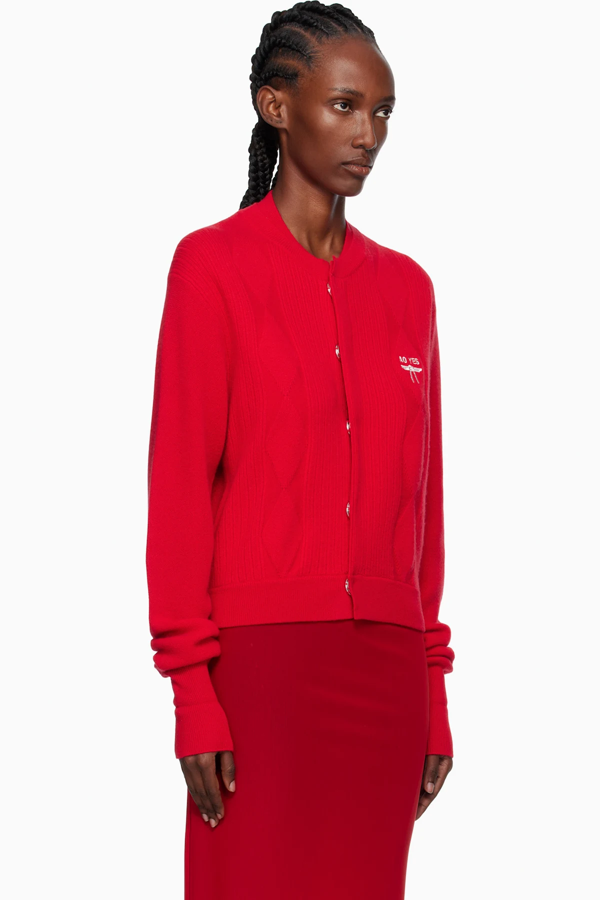 AO YES Red Double Collar Logo Embroidery Cardigan